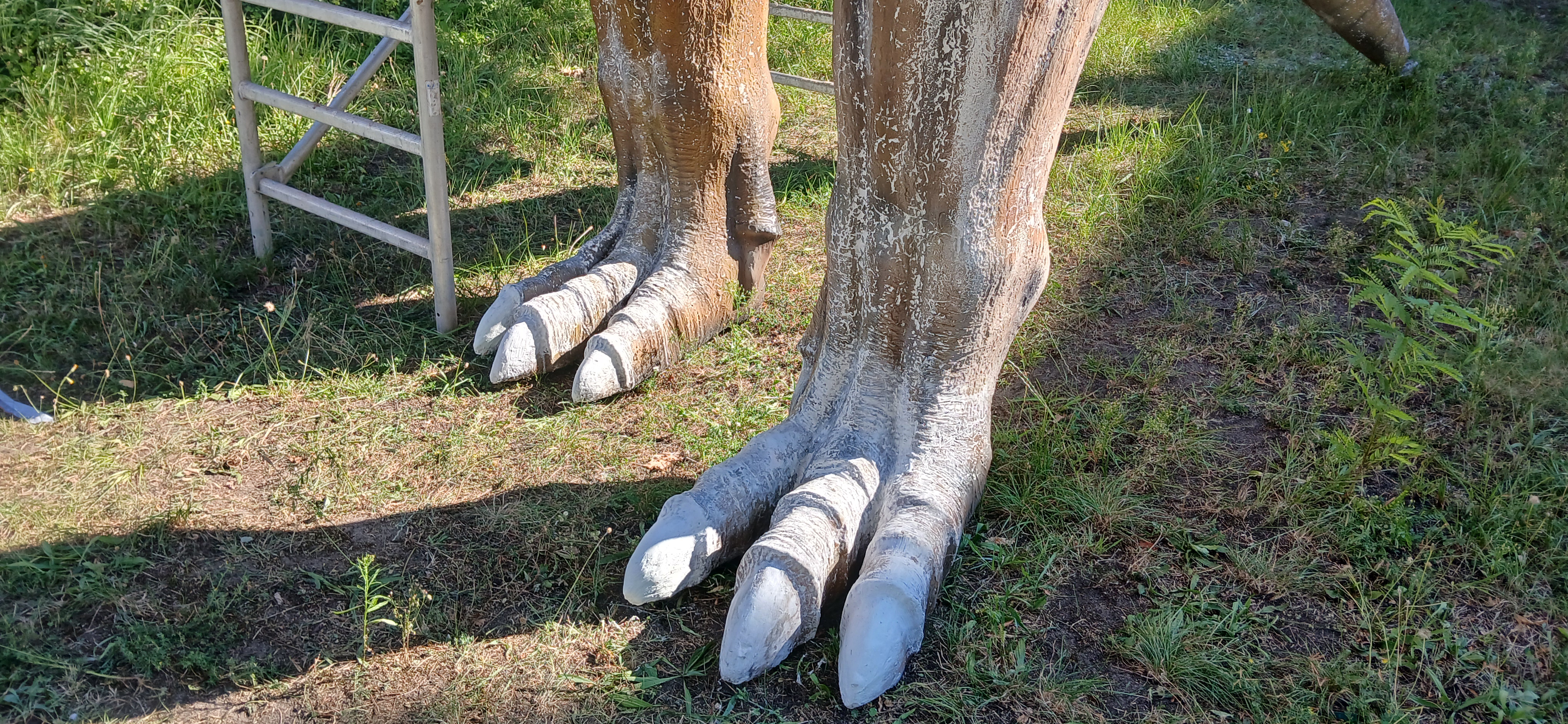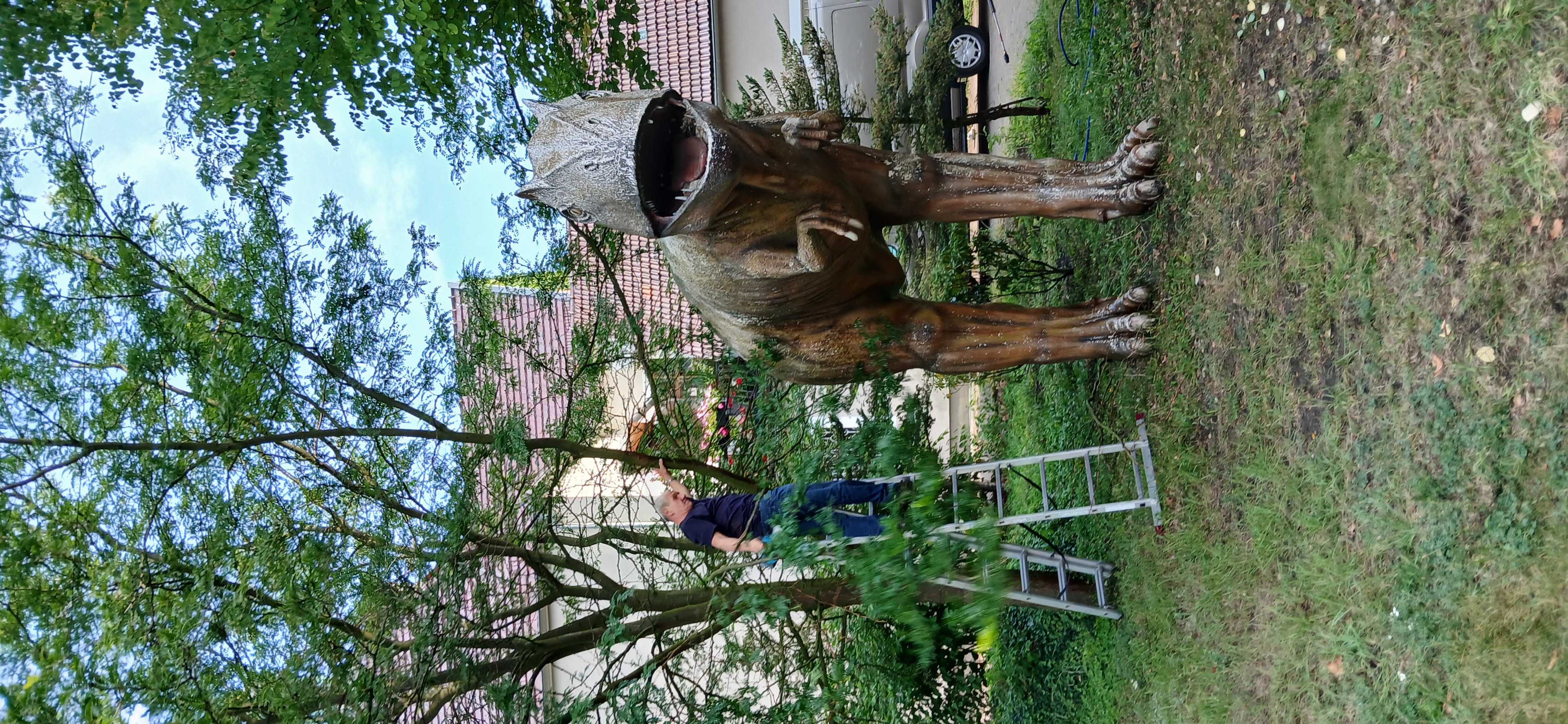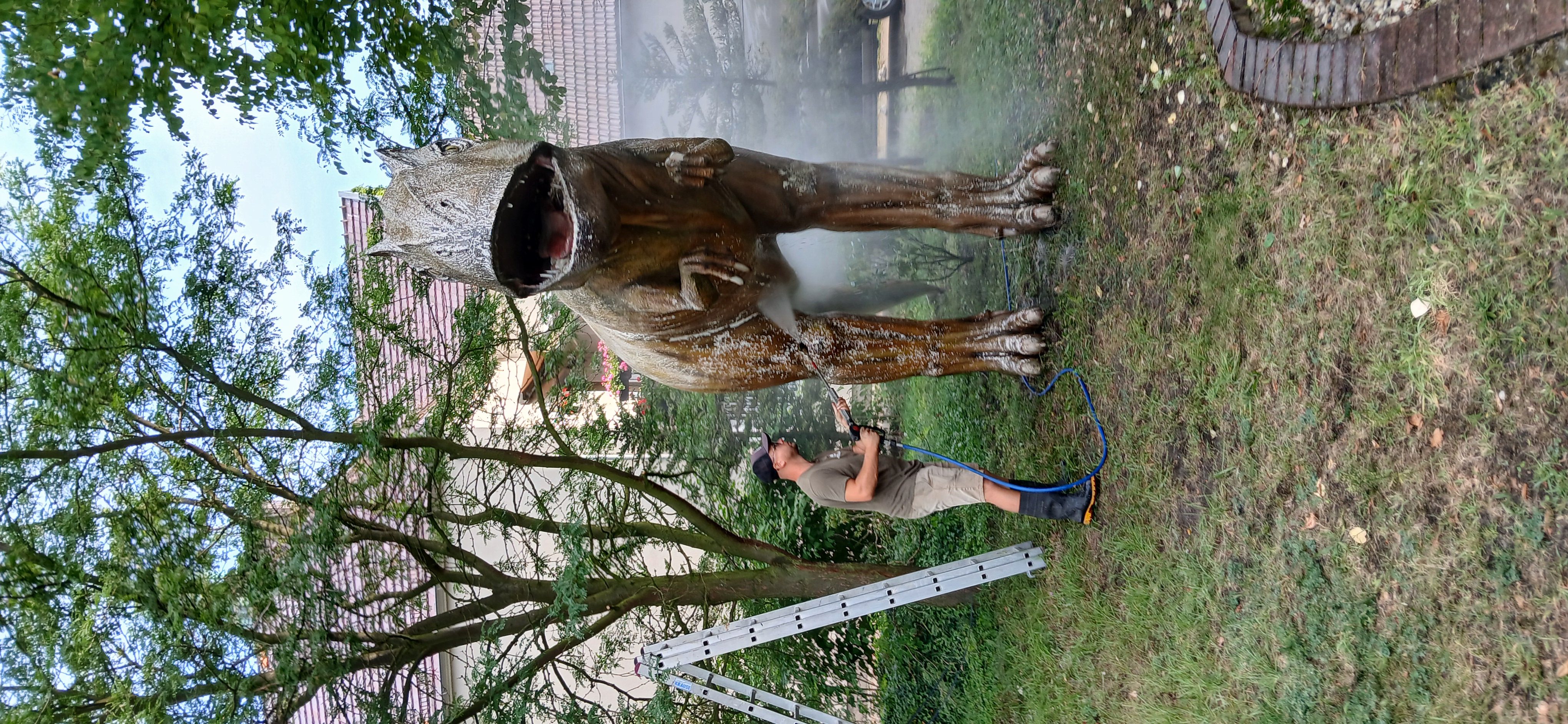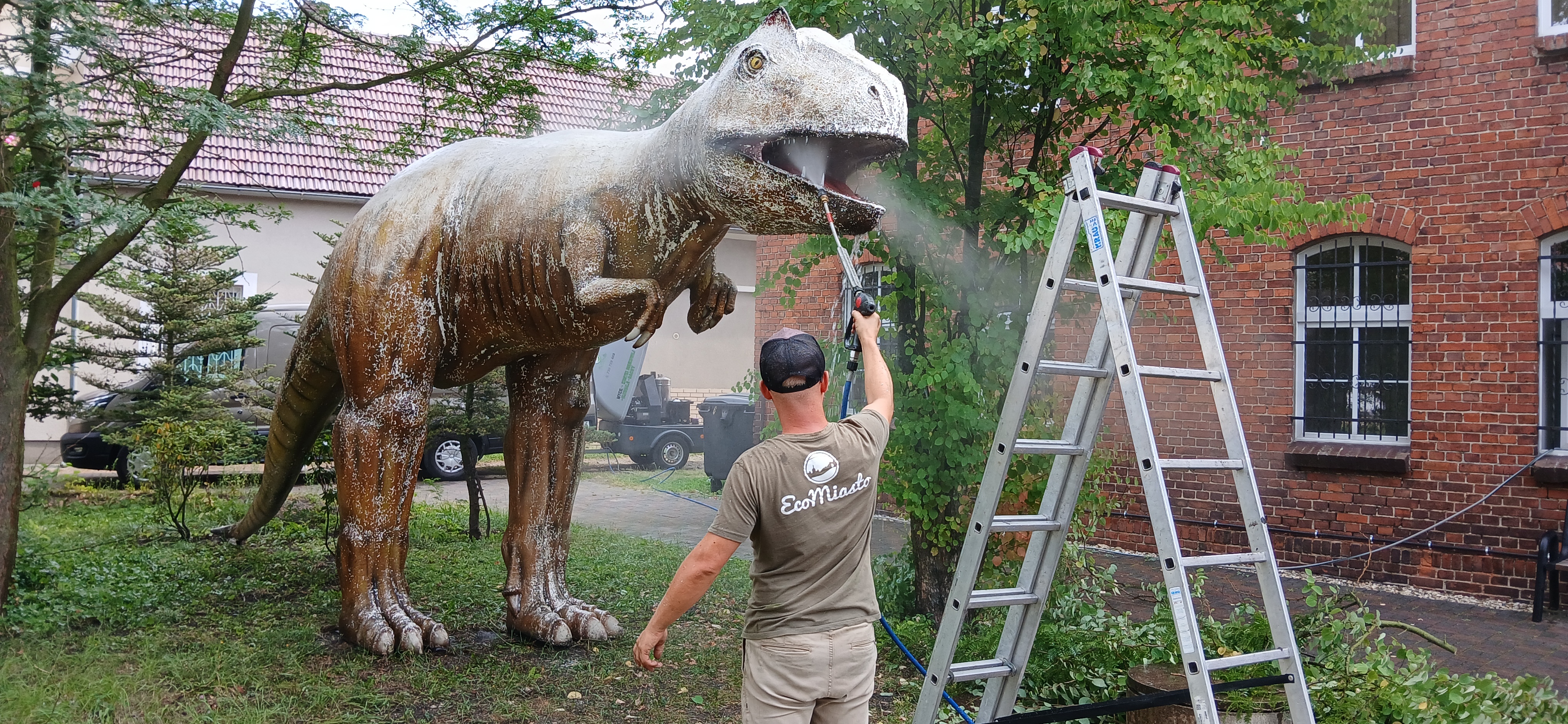 Na placu przed Starą Szkołą trwają prace renowacyjne allozaura. W zeszłym tygodniu został gruntownie umyty, a w tym tygodniu uzupełniano ubytki paznokci u kończyn i uzębienia. Panie formują z masy epoksydowej nowe zęby, szlifują je i mocują w szczęce zwierzęcia. W następnym tygodniu prehistoryczny dinozaur będzie malowany. Prace zostaną sfinansowane z budżetu gminy Ozimek.
