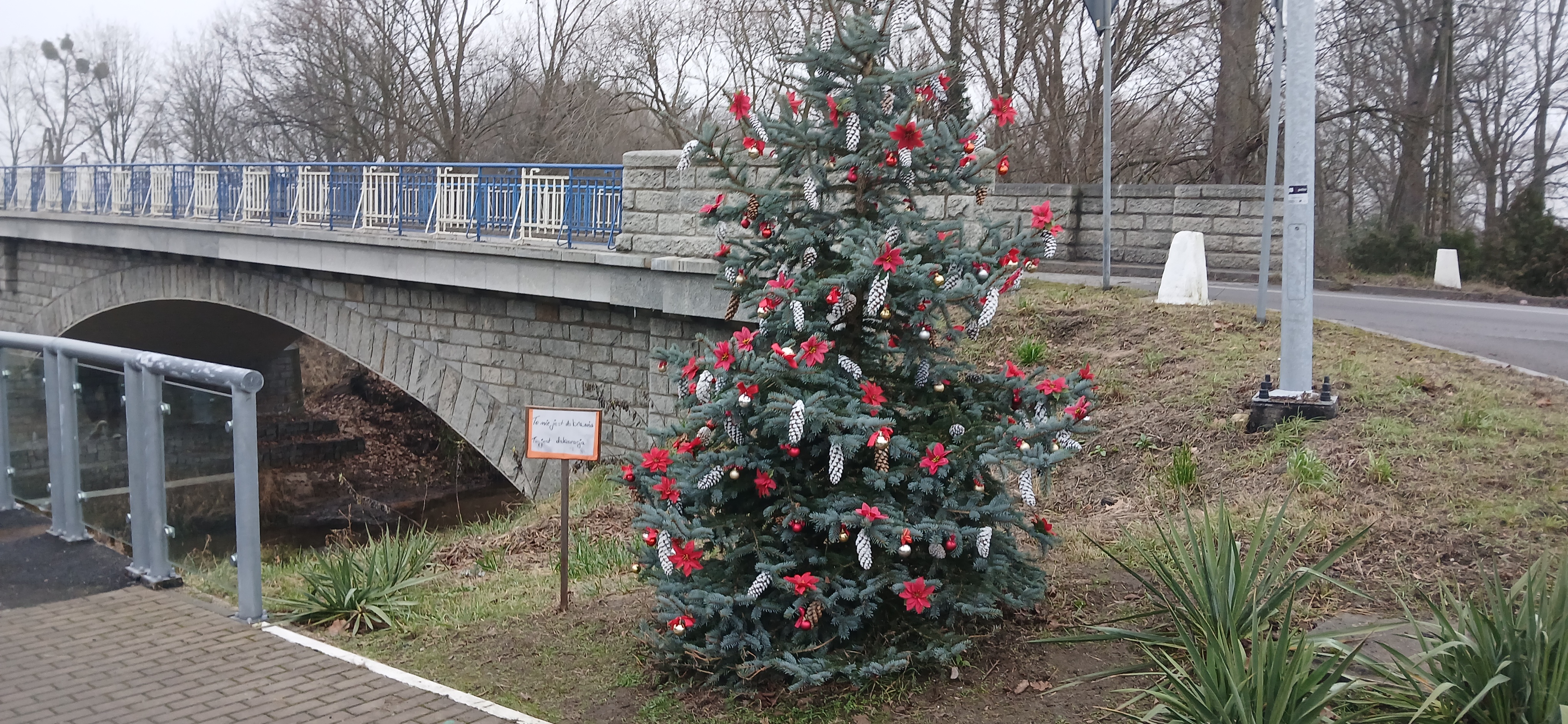 Krasiejów jest przygotowany już do Świąt. Aż trzy choinki przyozdabiają naszą wieś. Podczas Jarmarku rozświetlono choinkę przy Starej Szkole ustawioną przez Radę Sołecką, pojawiła się choinka przy skrzyżowaniu ulicy Spórackiej z ul. Brzeziny oraz tradycyjnie na Zamościu przy kładce pieszo - rowerowej. Tą ostatnią od lat ubiera Pan Eugeniusz Quaschniok-Quade, za co serdecznie dziękujemy. Tym razem przygotował też 150 pomalowanych na biało szyszek do zawieszenia na choince ustawionej przez Firmę Halex w centrum wsi (więcej...)