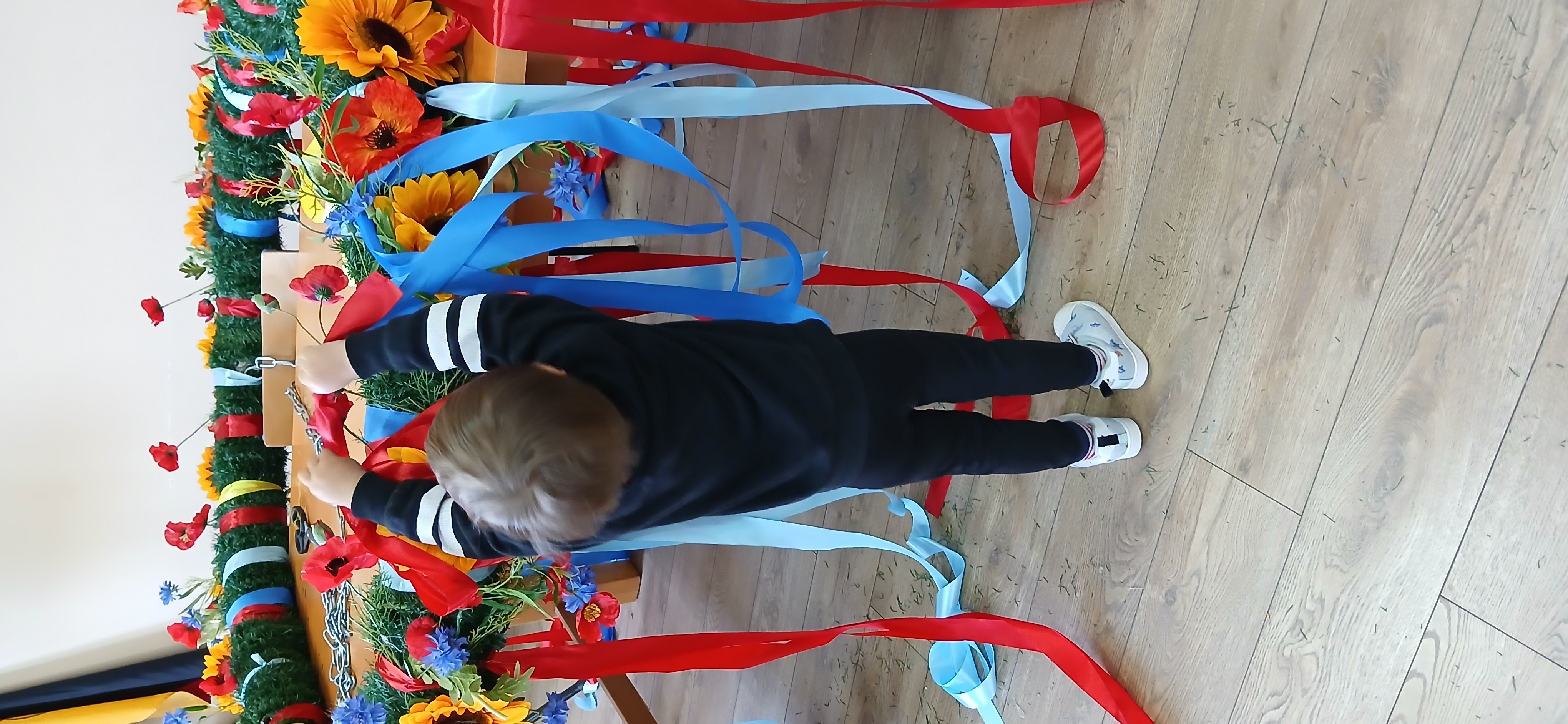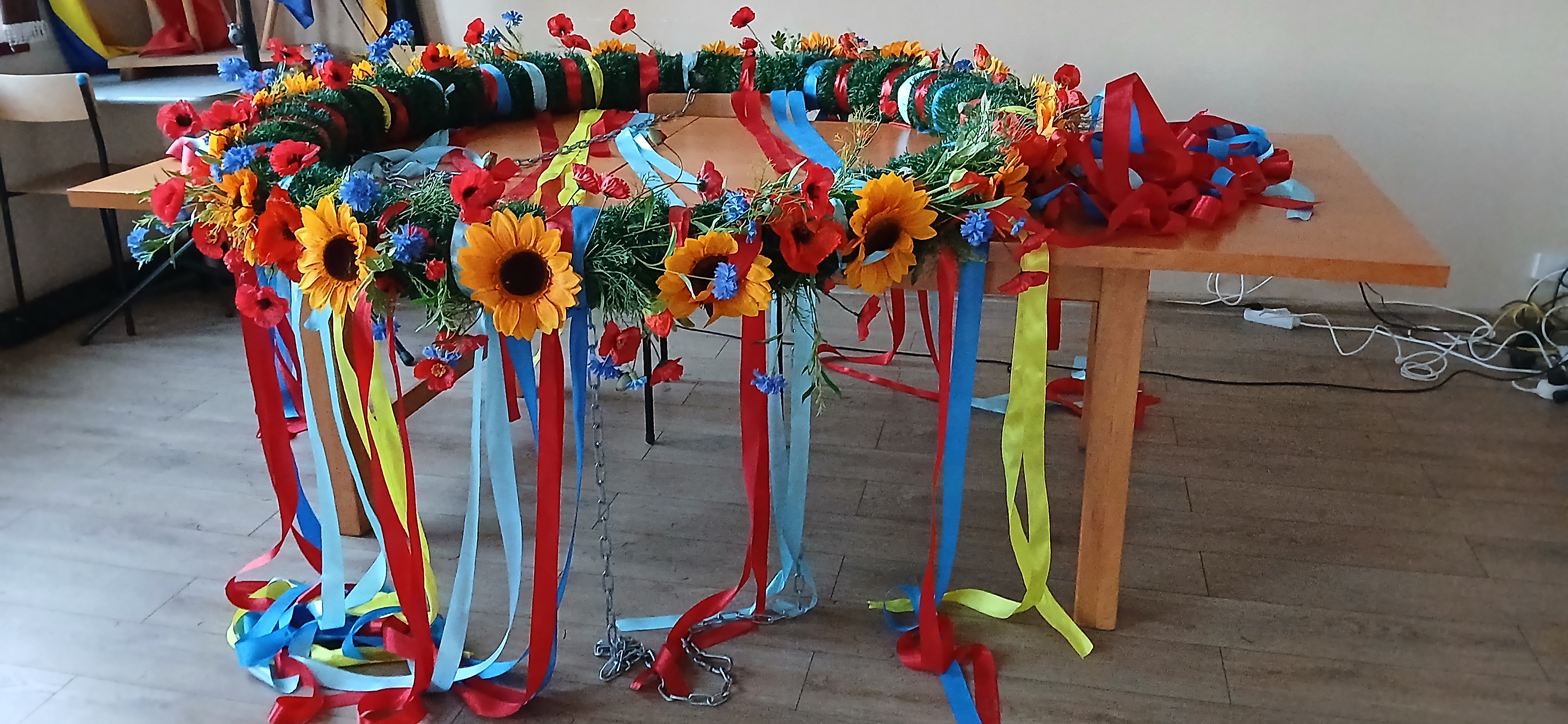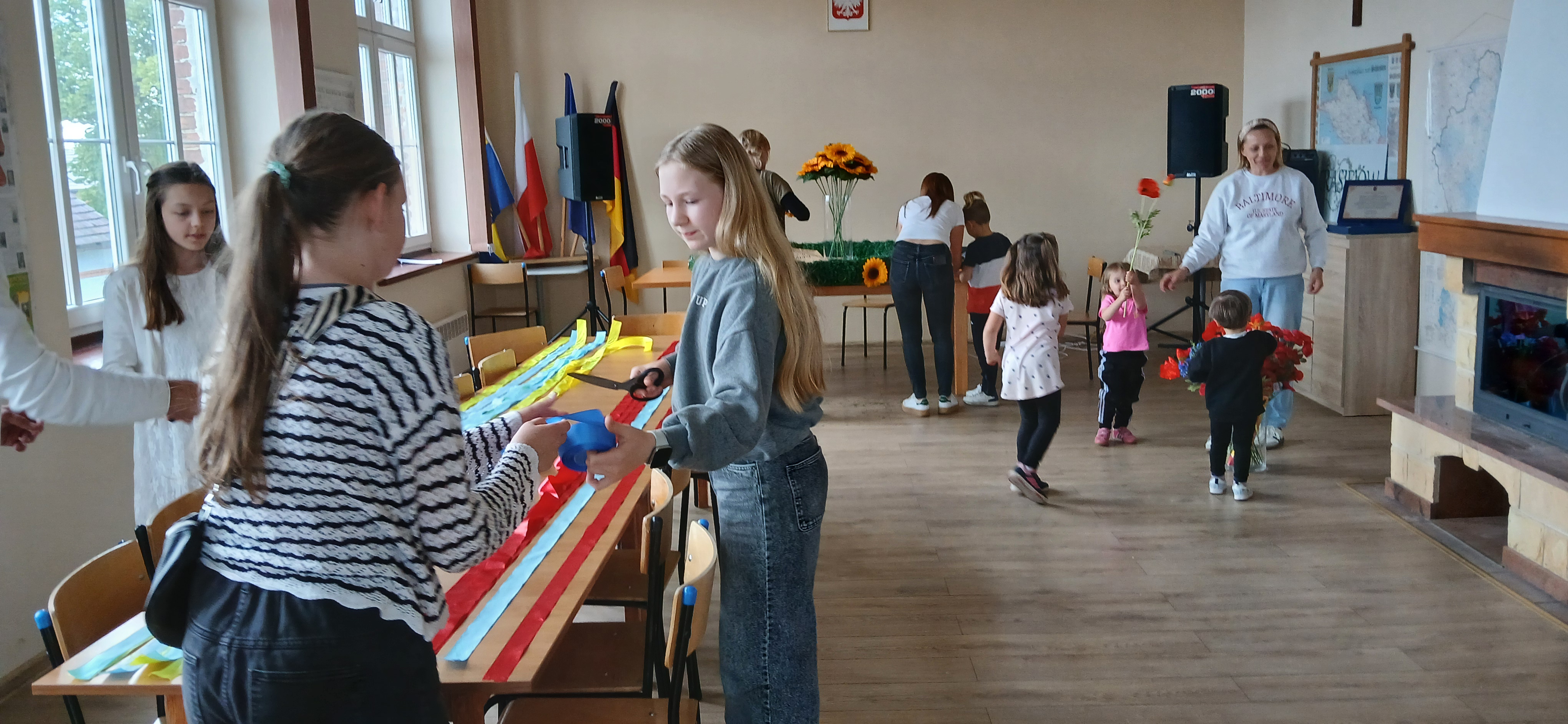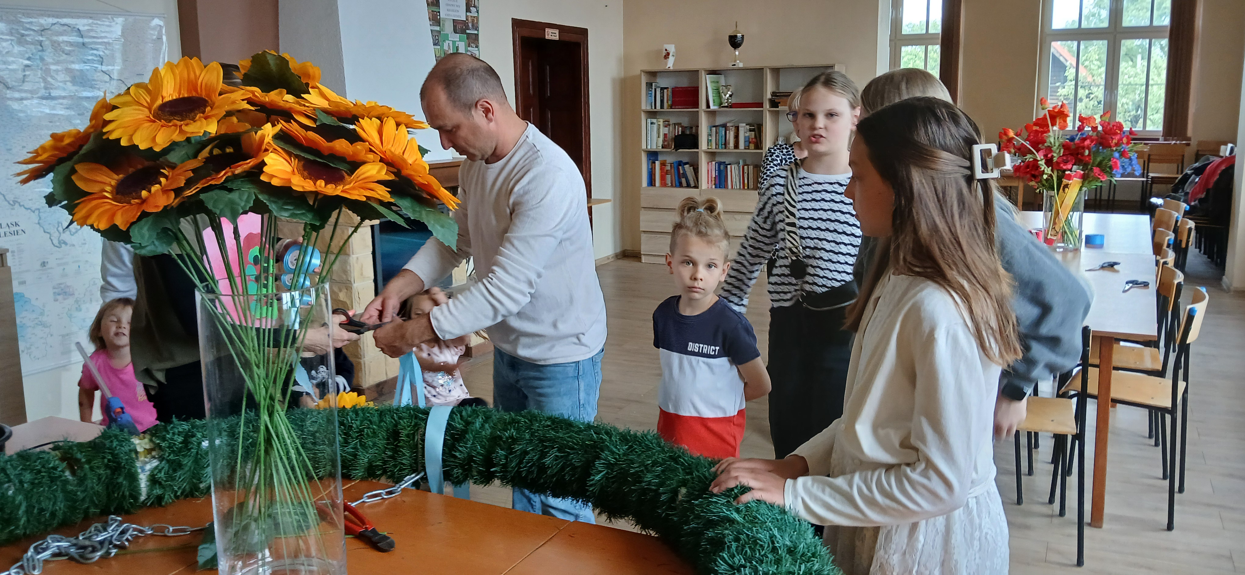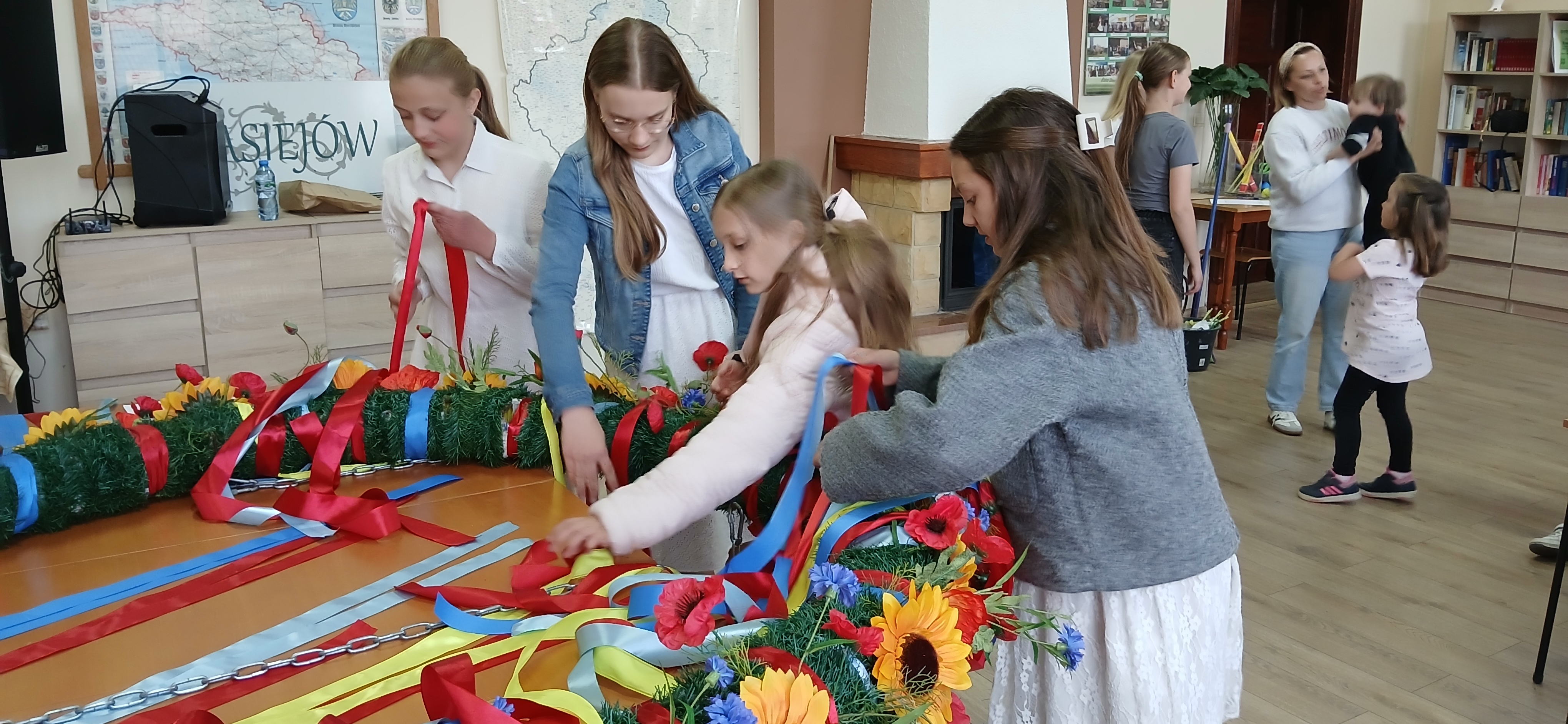 W poniedziałkowy wieczór dn.12 maja grupa dzieci wraz z rodzicami przyszła do świetlicy Starej Szkoły na warsztaty florystyczne zorganizowane przez koło DFK , które miały na celu odnowienie wieńca drzewka majowego. Florystka Katarzyna Sklorz przygotowała materiały, a dzieci z zapałem zabrały się do pracy. Pod okiem instruktorki cięły wstążki, kleiły kwiatki na wieniec, wyginały gałązki, wiązały kolorowe wstęgi i były bardzo zaangażowane w jego upiększanie. Przed zajęciami praktycznymi omówiły w języku polskim i niemieckim genezę drzewka majowego, poznały słownictwo z tym zwyczajem związane, a materiały edukacyjne mogły zabrać do domu. W trakcie zajęć dzieciaki posilały się kanapkami przygotowanymi przez panie Ilonę Feliks, Katarzynę Szubert i Sylwię Widawską. Na zakończenie uczestnicy warsztatów otrzymali słodkie upominki. Efekt prac był wspaniały, wieniec wygląda naprawdę imponująco. Dziękujemy dzieciom i rodzicom za zaangażowanie, Panu Marcinowi Konietzko za napisanie projektu z ramienia DFK, organizatorom warsztatów za wysprzątanie sali, zakupy i wykonanie paczek oraz Pani Katarzynie Sklorz za inspirowanie dzieci do działania. Członkowie Rady Sołeckiej i Sołtys byli zachwyceni wyglądem wieńca majowego. Warsztaty były dofinansowane ze środków Ministerstwa Spraw Wewnętrznych  i Ojczyzny Republiki Federalnej Niemiec za pośrednictwem Związku Niemieckich Stowarzyszeń Społeczno-Kulturalnych w Polsce.