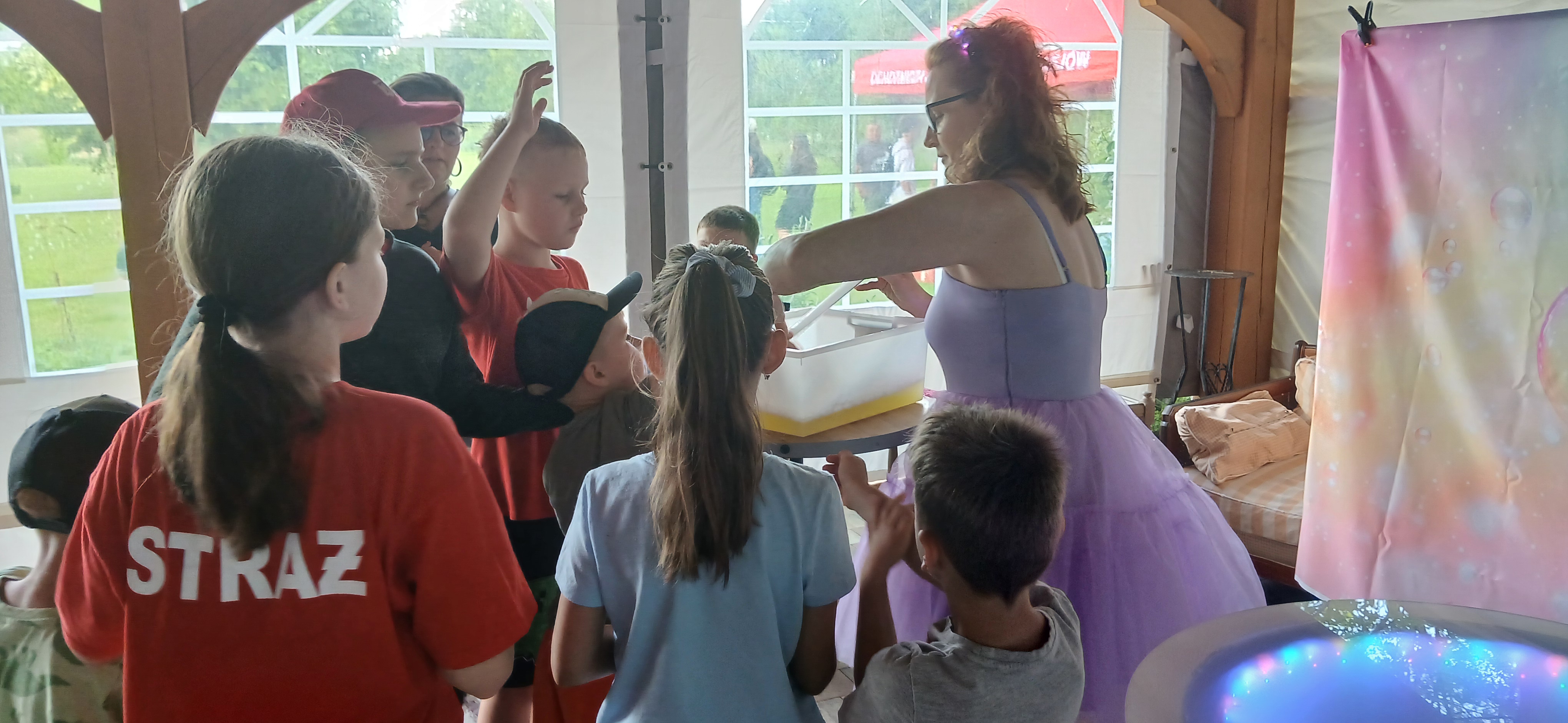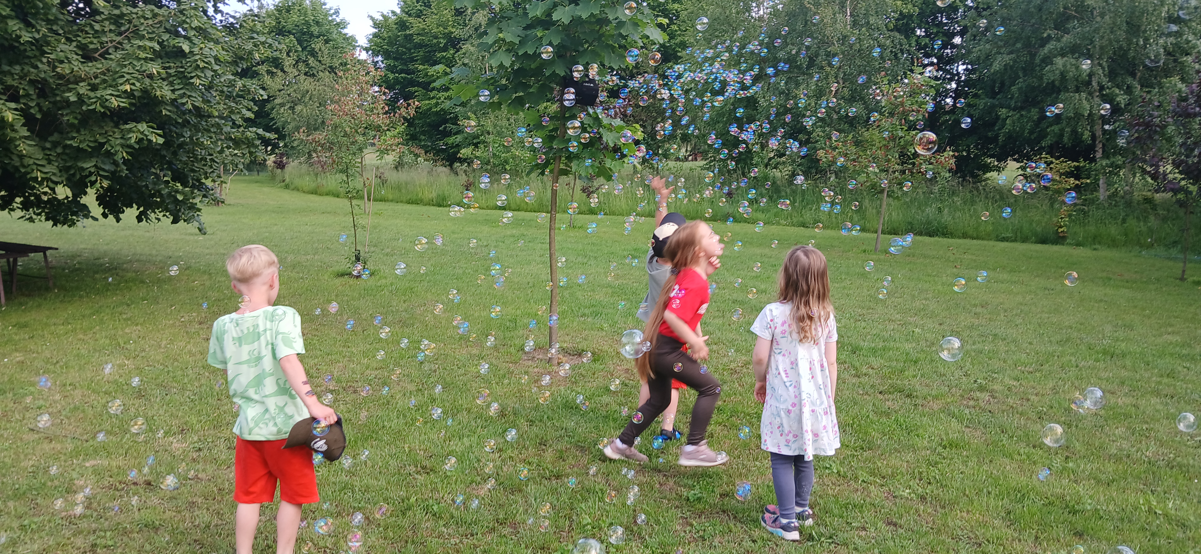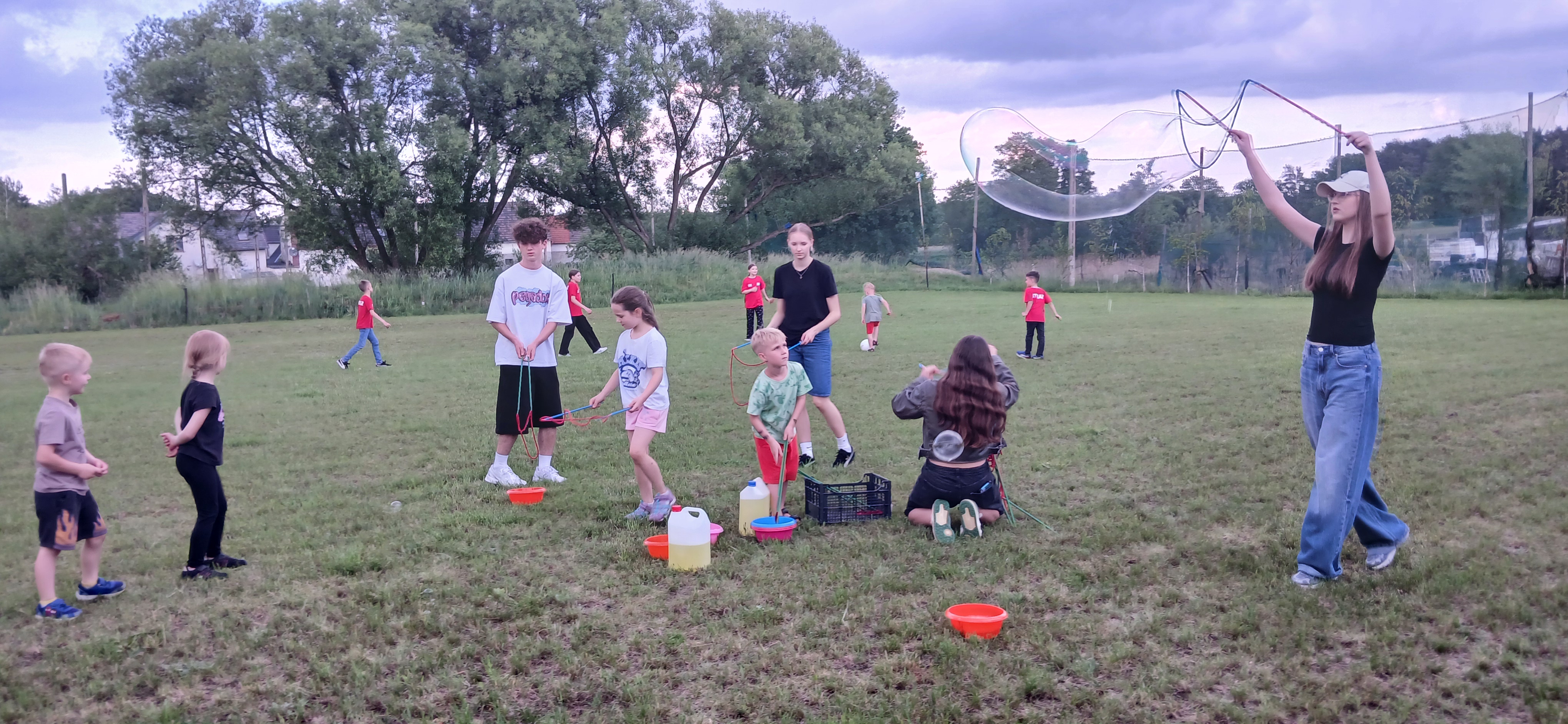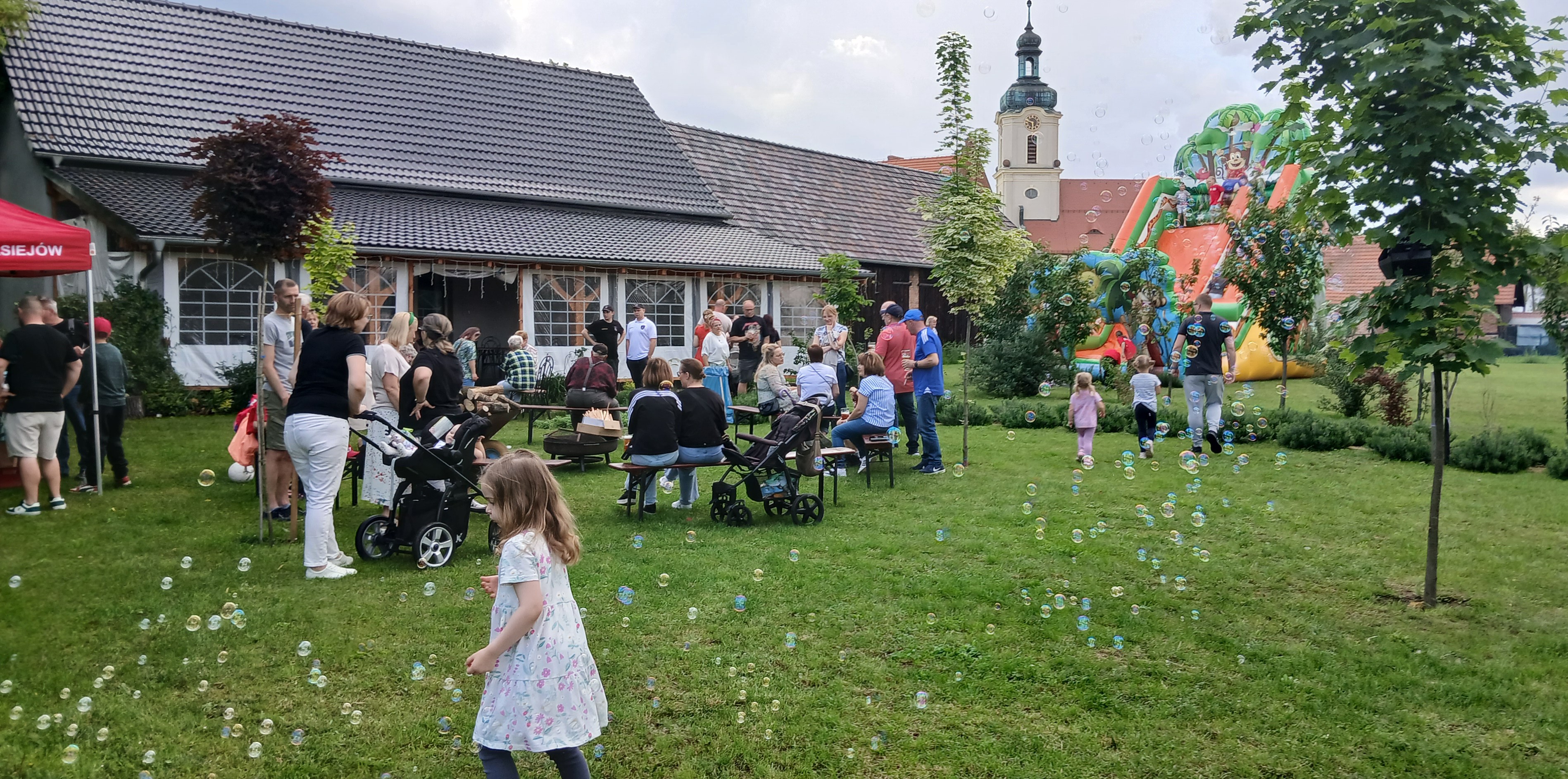 Ponieważ dnia 18 maja ze względu na deszczową pogodę nie udało się zrealizować wszystkich planów Rada Sołecka, Sołtys do których dołączyło SMK postanowili zorganizować ciąg dalszy „Święta Drzewka Majowego” pod nazwą „Majówkowy zawrót głowy”. O godz. 17.00 do ogrodu restauracyjnego zawitała animatorka, która zapewniła dzieciom, w tym uczestnikom szkółki strażackiej pod opieką Henryka Libery, atrakcje z bańkami. Razem wydmuchiwały przeróżne kształty i uzyskiwały ciekawe efekty wizualne. Obok na trawniku ustawiono zjeżdżalnię dla dzieci, która cieszyła się dużym powodzeniem. Panowie z Rady Sołeckiej Grzegorz Pasoń, Krzysztof Koźlik, Tomasz Chudala Adrian Mróz i Marcin Konietzko przygotowali grilla dla uczestników. Na podwórko Restauracji u Pani Lidii Schroll zajechali również strażacy z OSP, aby zaprezentować dzieciom wóz strażacki Heinz i sprzęt używany do akcji. Na trawniku członkowie szkółki strażackiej zagrali w piłkę nożną.
