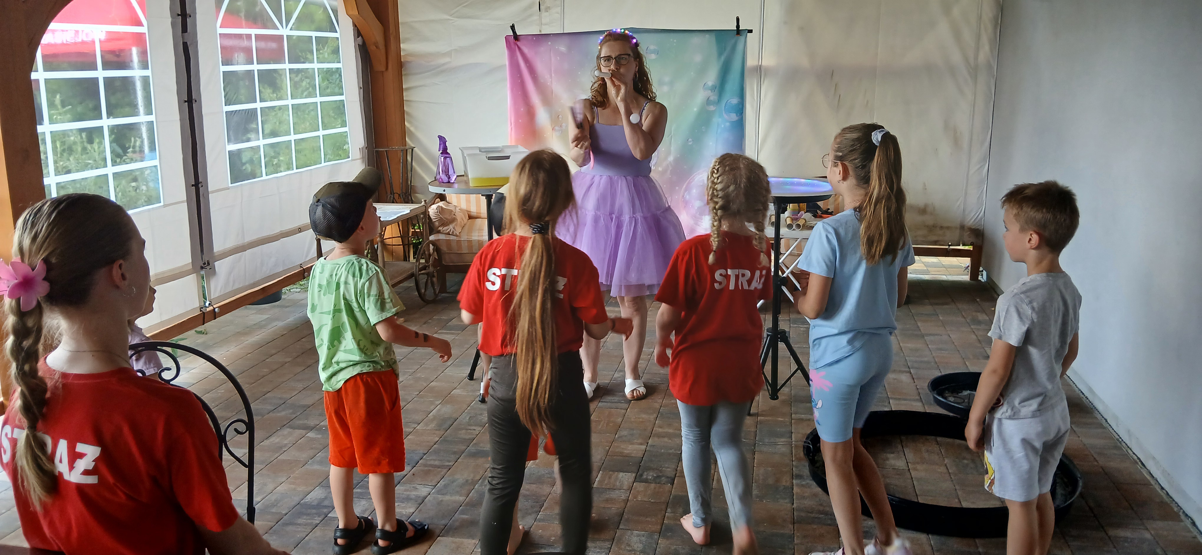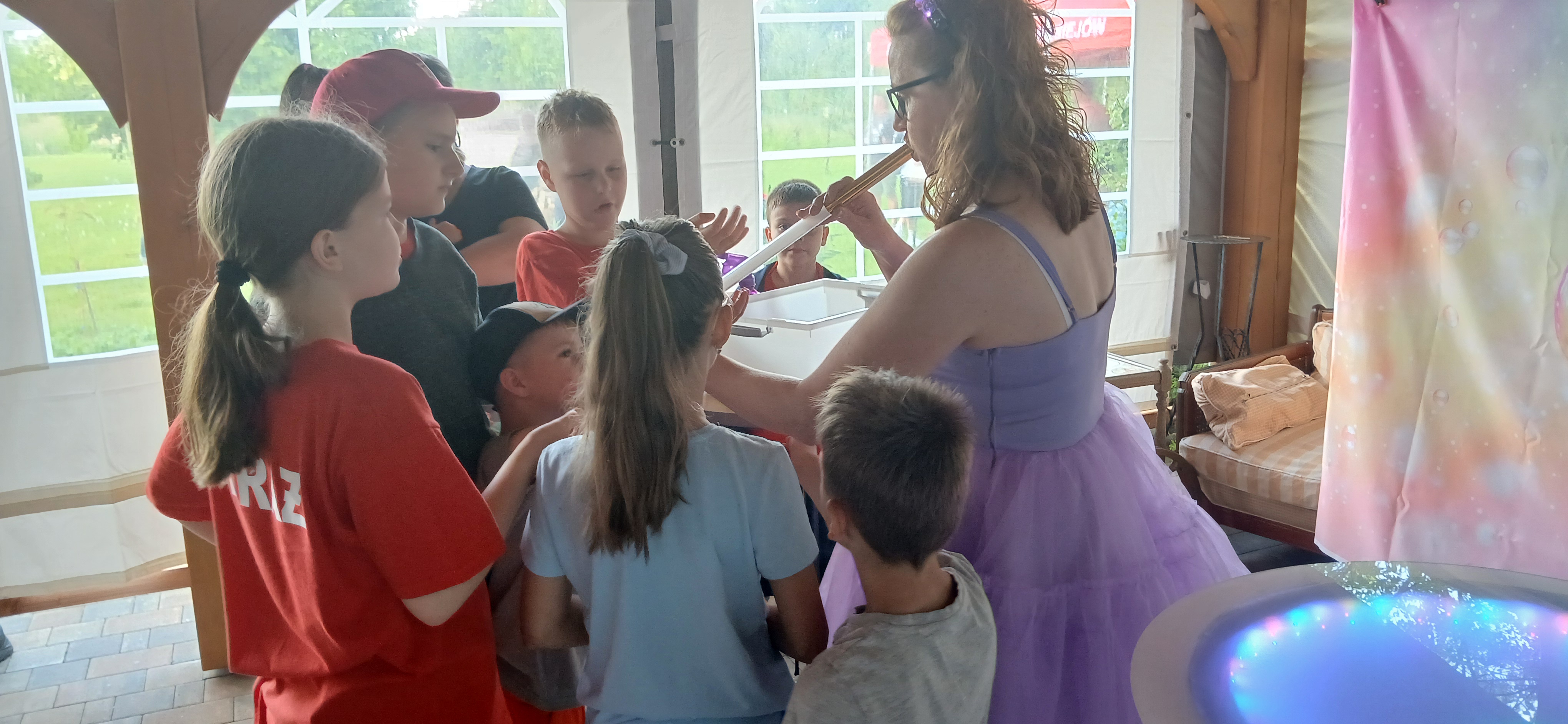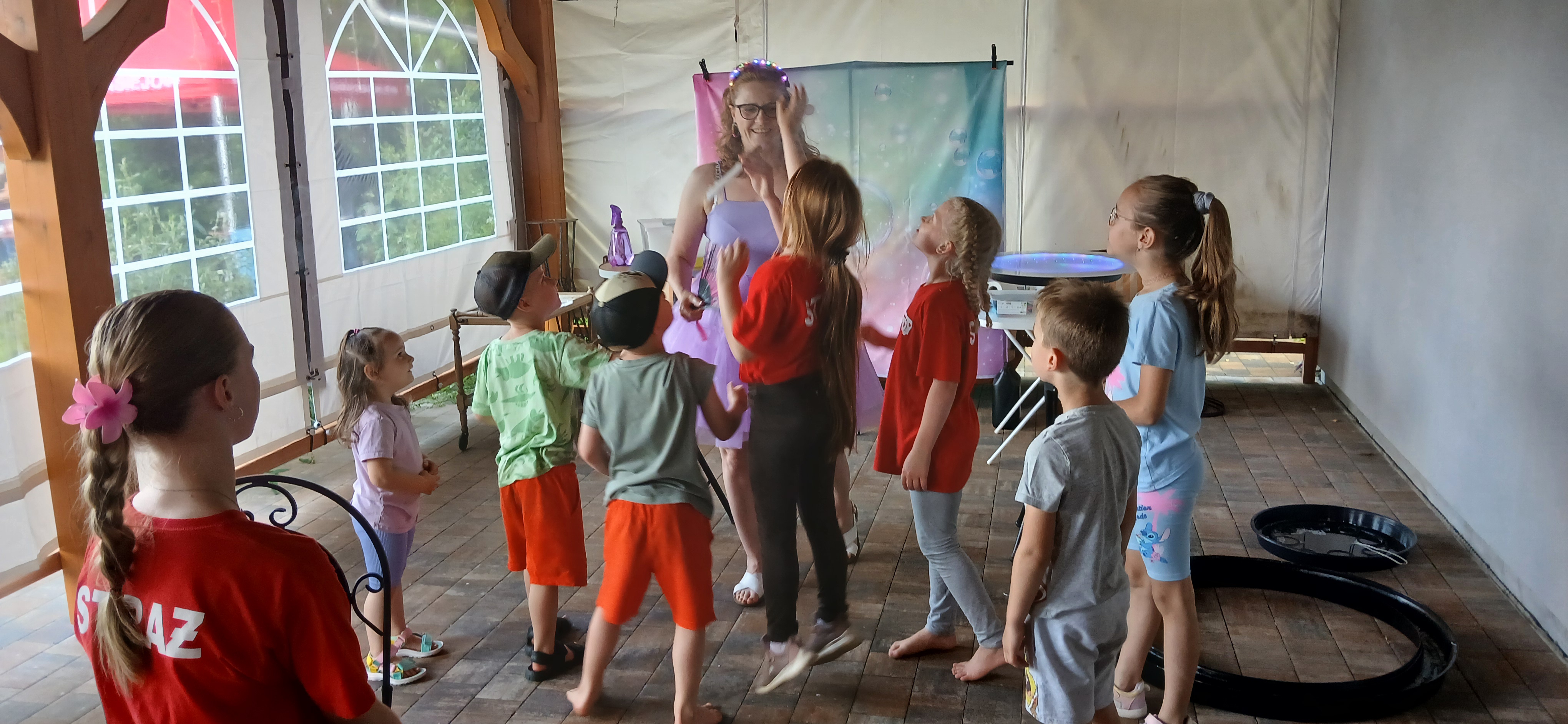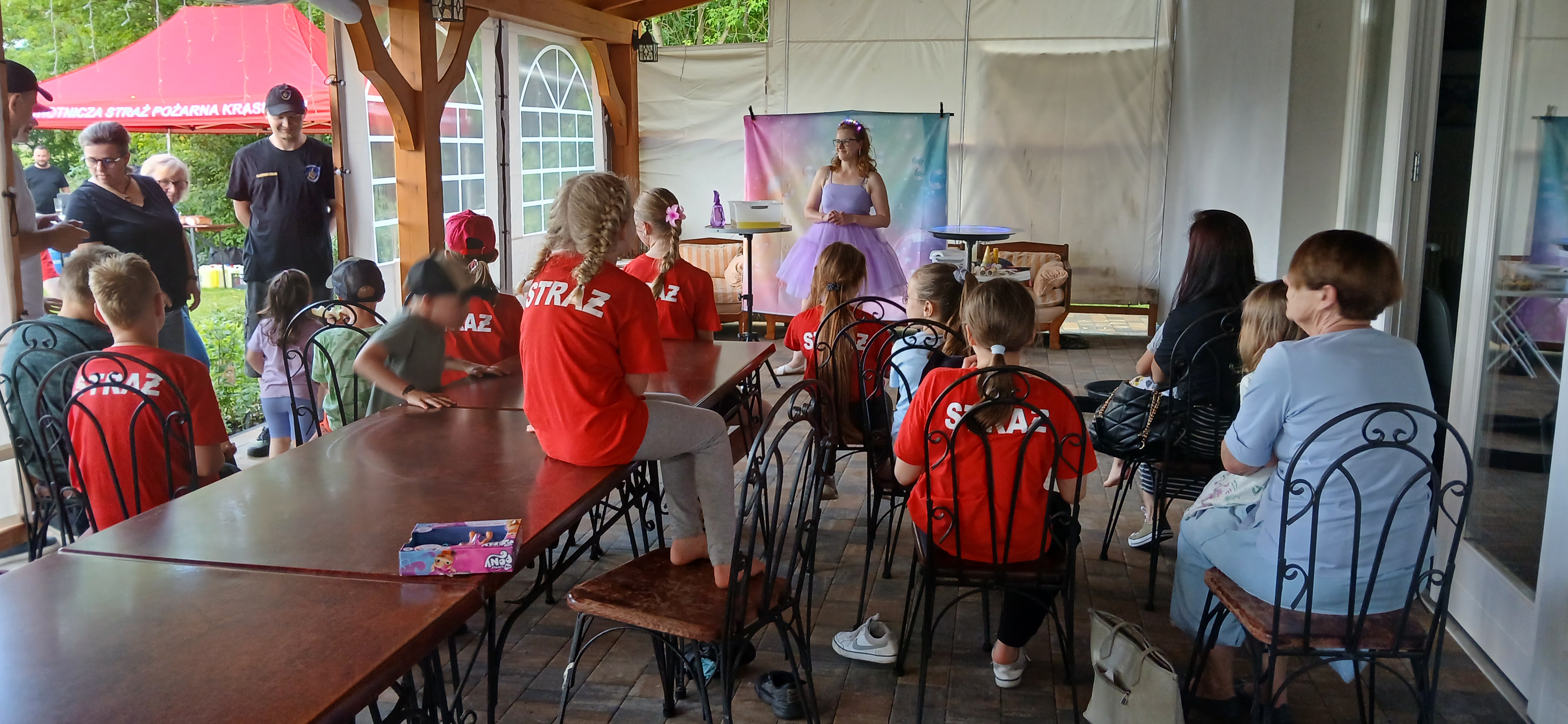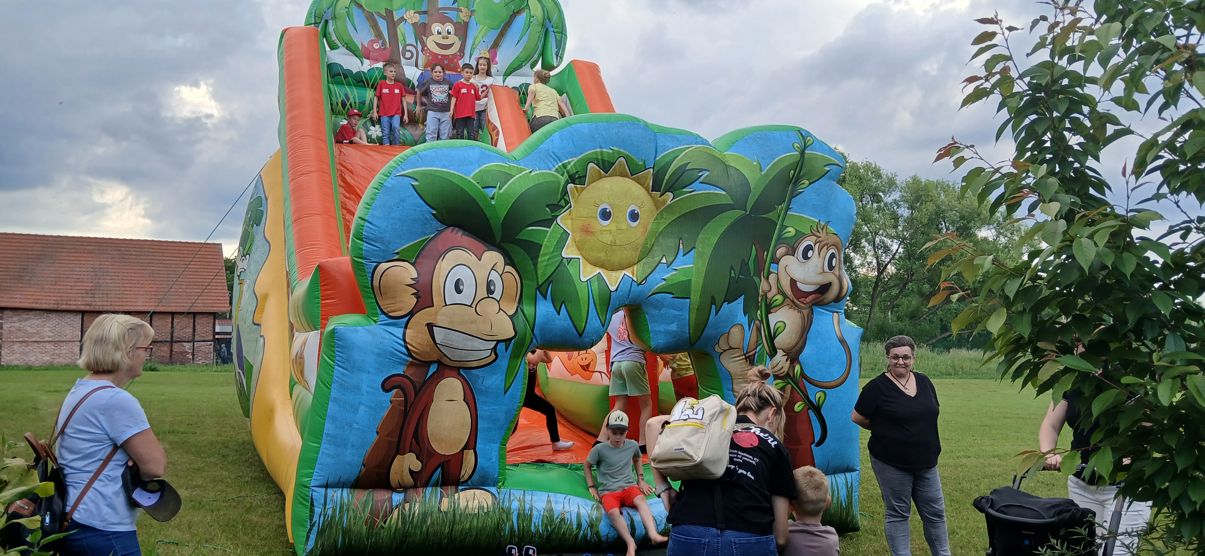 Ponieważ dnia 18 maja ze względu na deszczową pogodę nie udało się zrealizować wszystkich planów Rada Sołecka, Sołtys do których dołączyło SMK postanowili zorganizować ciąg dalszy „Święta Drzewka Majowego” pod nazwą „Majówkowy zawrót głowy”. O godz. 17.00 do ogrodu restauracyjnego zawitała animatorka, która zapewniła dzieciom, w tym uczestnikom szkółki strażackiej pod opieką Henryka Libery, atrakcje z bańkami. Razem wydmuchiwały przeróżne kształty i uzyskiwały ciekawe efekty wizualne. Obok na trawniku ustawiono zjeżdżalnię dla dzieci, która cieszyła się dużym powodzeniem. Panowie z Rady Sołeckiej Grzegorz Pasoń, Krzysztof Koźlik, Tomasz Chudala Adrian Mróz i Marcin Konietzko przygotowali grilla dla uczestników. Na podwórko Restauracji u Pani Lidii Schroll zajechali również strażacy z OSP, aby zaprezentować dzieciom wóz strażacki Heinz i sprzęt używany do akcji. Na trawniku członkowie szkółki strażackiej zagrali w piłkę nożną.