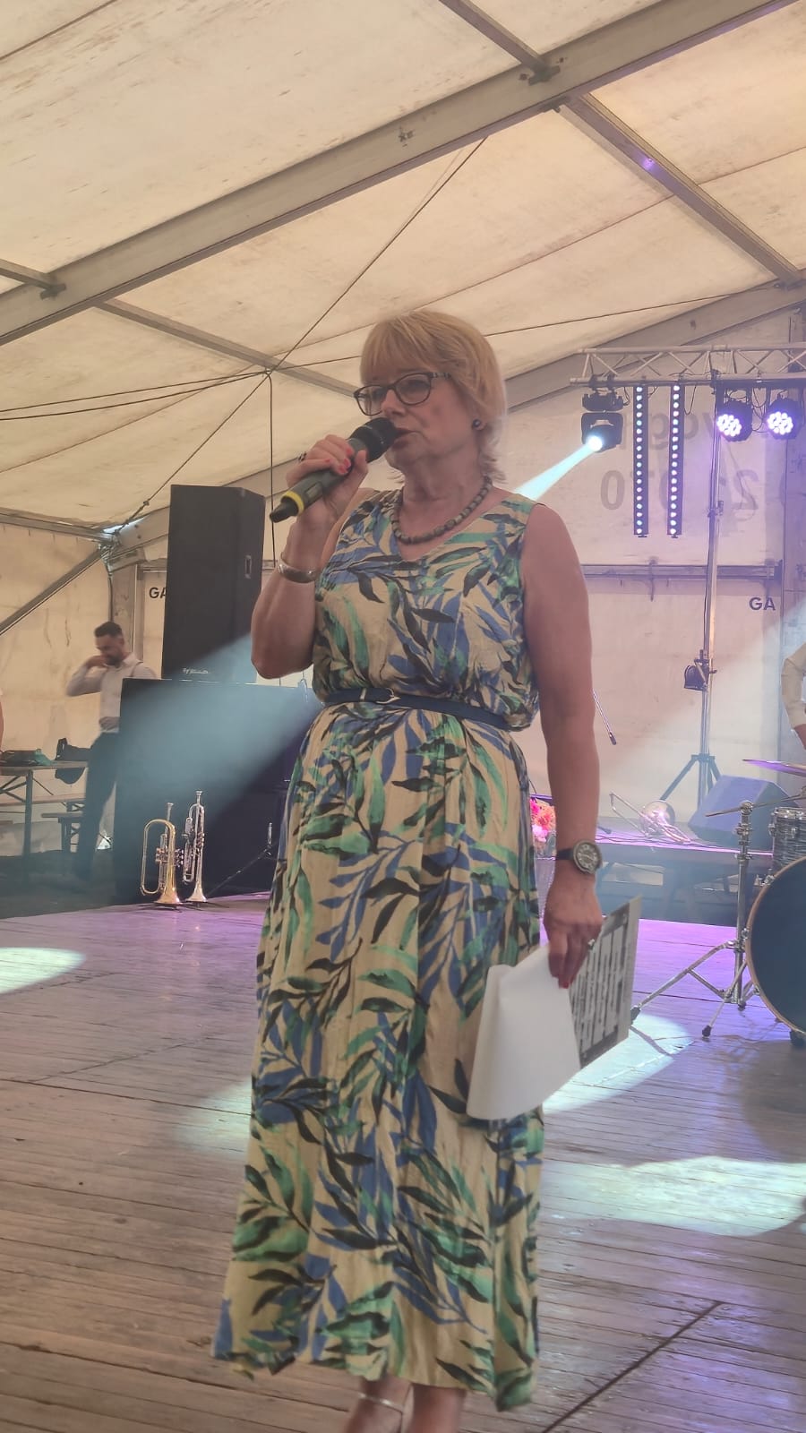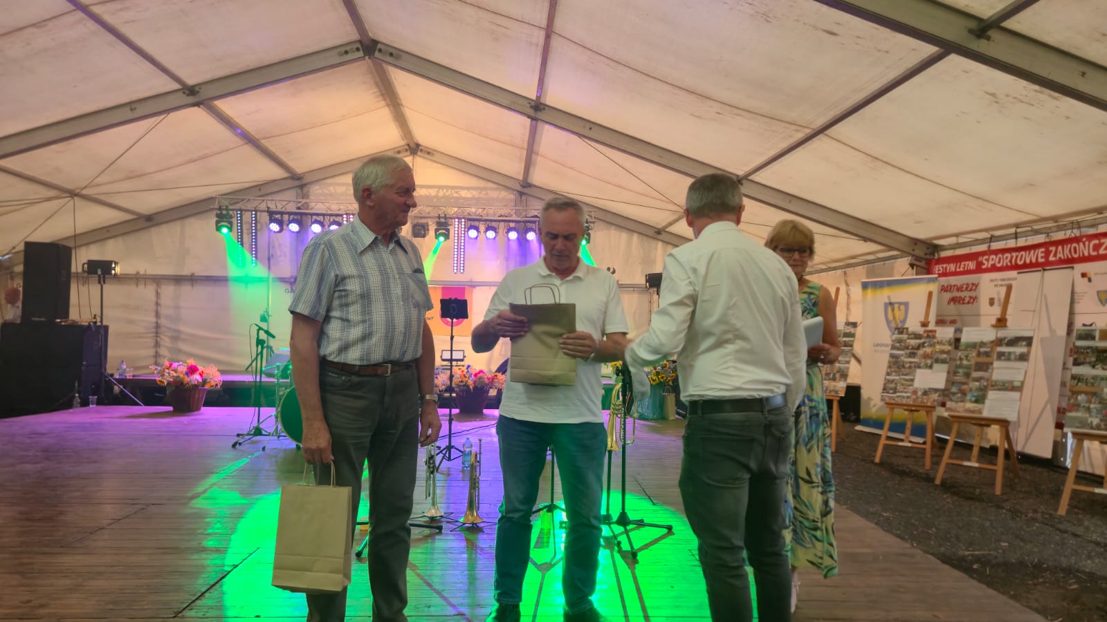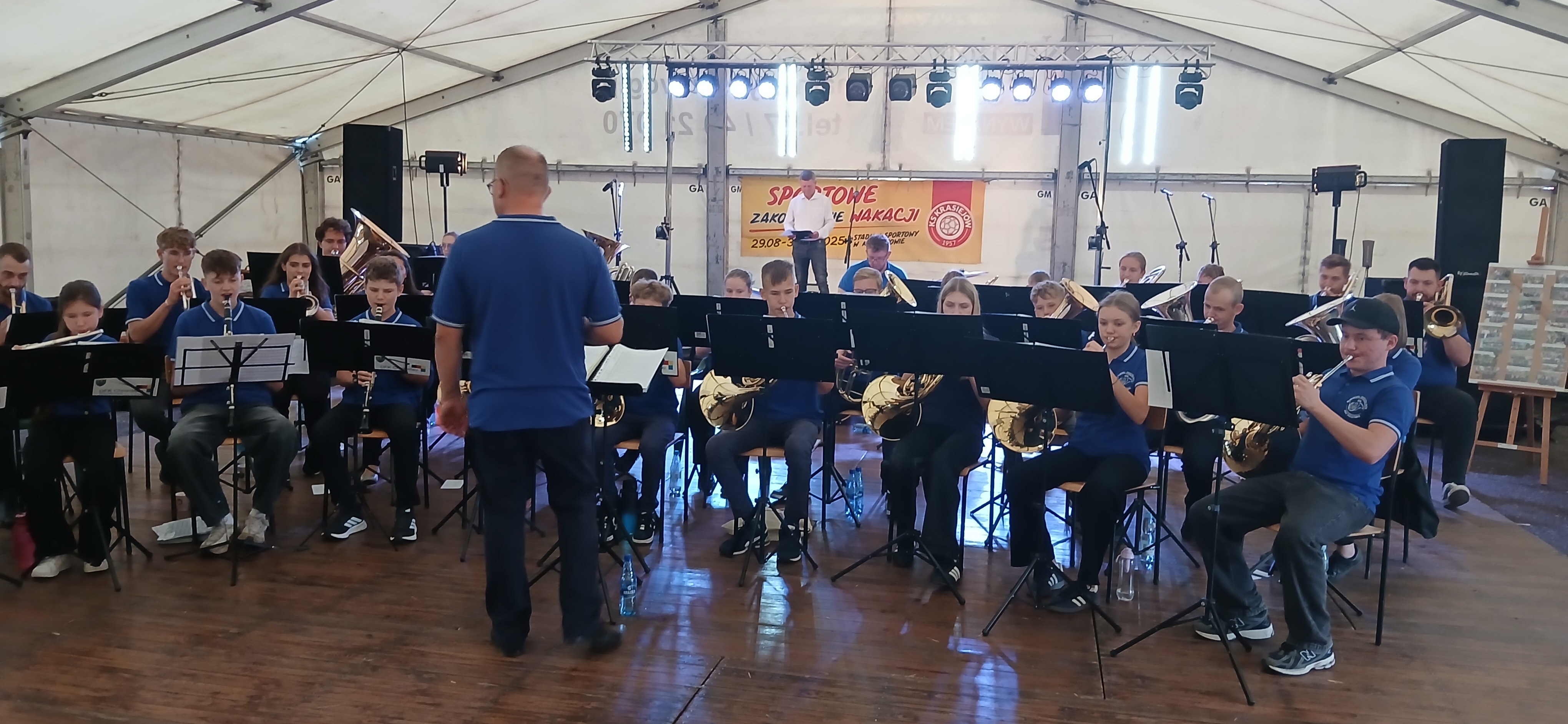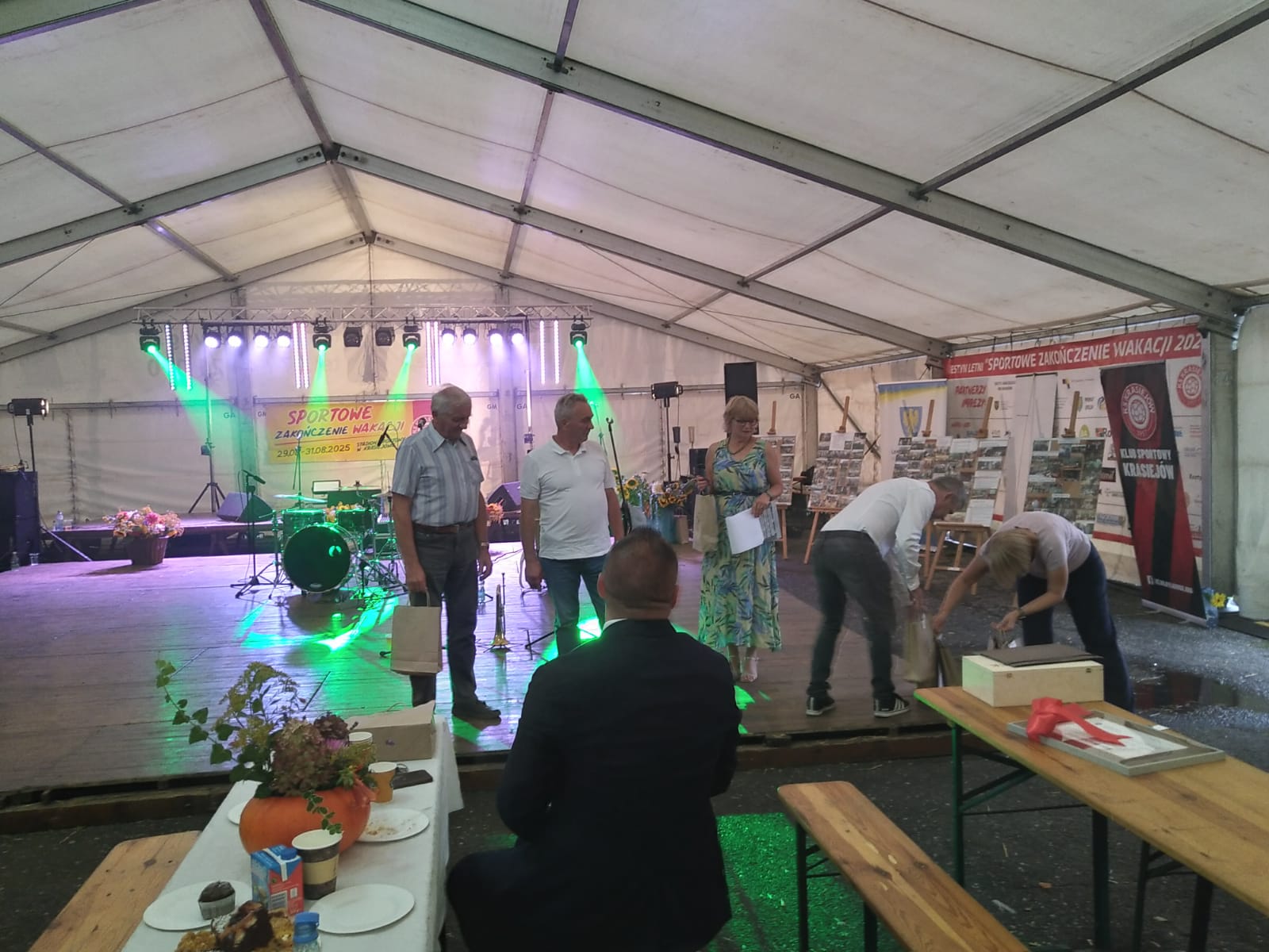 Ostatni dzień  "Sportowego Zakończenia Wakacji", który odbył się dn. 31 sierpnia obejmował cztery wydarzenia: Zawody jednostek OSP Gminy Ozimek i zaprzyjaźnionego Heinsberga, święto 25-lecia Stowarzyszenia Miłośników Krasiejowa, występy artystyczne i zabawę taneczną. O zawodach strażackich piszemy w odzielnym poście, bo tam działo się naprawdę dużo. Popołudnie zaczęło się pod namiotem o godz. 15.30 występem Młodzieżowej Orkiestry Dętej z Gminy Chrząstowice. Młodzi muzycy zaprezentowali się wspaniale wzbudzając aplauz wśród słuchaczy. Po godzinnym koncercie na scenie pojawilła się Mirosława Drozd - Duda z żywiołowym koncertem związanym tematycznie z końcem lata. Zdziwiła się nieco, gdy na parkiecie pojawił się olbrzymi niedżwiedź polarny, bo artystka nie wiedziała, że nasz dinozaur jest w renowacji. A zwierzę z dalekiej północy do Krasiejowa zagnała zwykla ciekawość. Po pięknym występie konferansjer tego dnia - Krzysztof Koźlik poprosił Sylwię Widawską - sekretarza organizacji i kustosza Muzeum Paleontologicznego o podsumowanie 25-letniej działalności SMK. Odrębne sprawozdanie ukaże się niebawem na stronie wsi. Po wygłoszeniu przemówienia wręczono koszulki z logiem SMK członkom, którzy w tej organizacji działają już 25 lat, a należą do nich: Krzysztof Koźlik, Werner Klimek, Sylwia, Widawska, Arnold Bolcek, Jan Sklorz, Ryszard Skrzypczyk, Andrzej Staś i Zygmunt Wystarch. Ponadto wyróżniono  Lidię Schroll,  Magdalenę Moj, Jana Bonka, Michała Malisza i Ryszarda Gallę - honorowego członka SMK. Specjalne podziękowania z okolicznościowymi dyplomami skierowano na ręce Burmistrza Ozimka Mirosława Wieszołka i Anny Golec - Prezes LGD Kraina Dinozaurów za wspieranie działalności statutowej SMK  oraz dla Wernera Klimka- organizatora wycieczek krajoznawczych. Po wręczeniu pamiątek głos zabrał przybyły na festyn zastępca Burmistrza Marcin Widera. Złożył na ręce prezesa SMK i kustosz Muzeum wyrazy uznania za dotychczasowe działania i osiągnięcia życząc dalszej owocnej pracy. Podziękowania napłynęły też ze strony prezes LGD - Anny Golec.