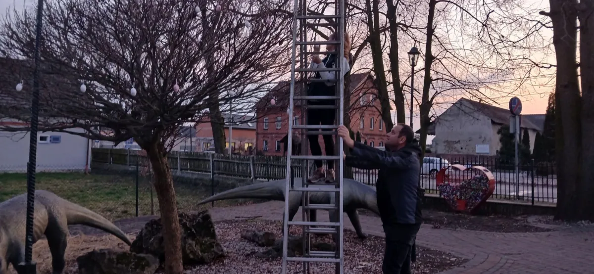 Zarząd SMK zwrócił się z prośbą do członka organizacji Sklorza Jana o wykonanie zajęcy wielkanocnych, które ozdobiłyby centrum wsi lub plac przed Starą Szkołą. Pan Jan podjął się wykonania zadania i po zimie zabrał się żwawo do pracy w swym przydomowym warsztacie. Już 18 marca modele zajęcy były gotowe, pomalowane i przytwierdzone do podstawy. Orócz zajęcy Pan Sklorz utoczył jajka, które również sam pomalował. Bardzo dziękujemy Panu Janowi za ogrom pracy włożony w wykonanie ozdób i wszystkim, którzy włączyli się do pomocy w przywiezieniu sklejki z Opola i przewiezieniu modeli na plac przed szkołą. Członkowie SMK przyozdobili też jajkami drzewko przed budynkiem szkolnym. Dziękujemy!!!