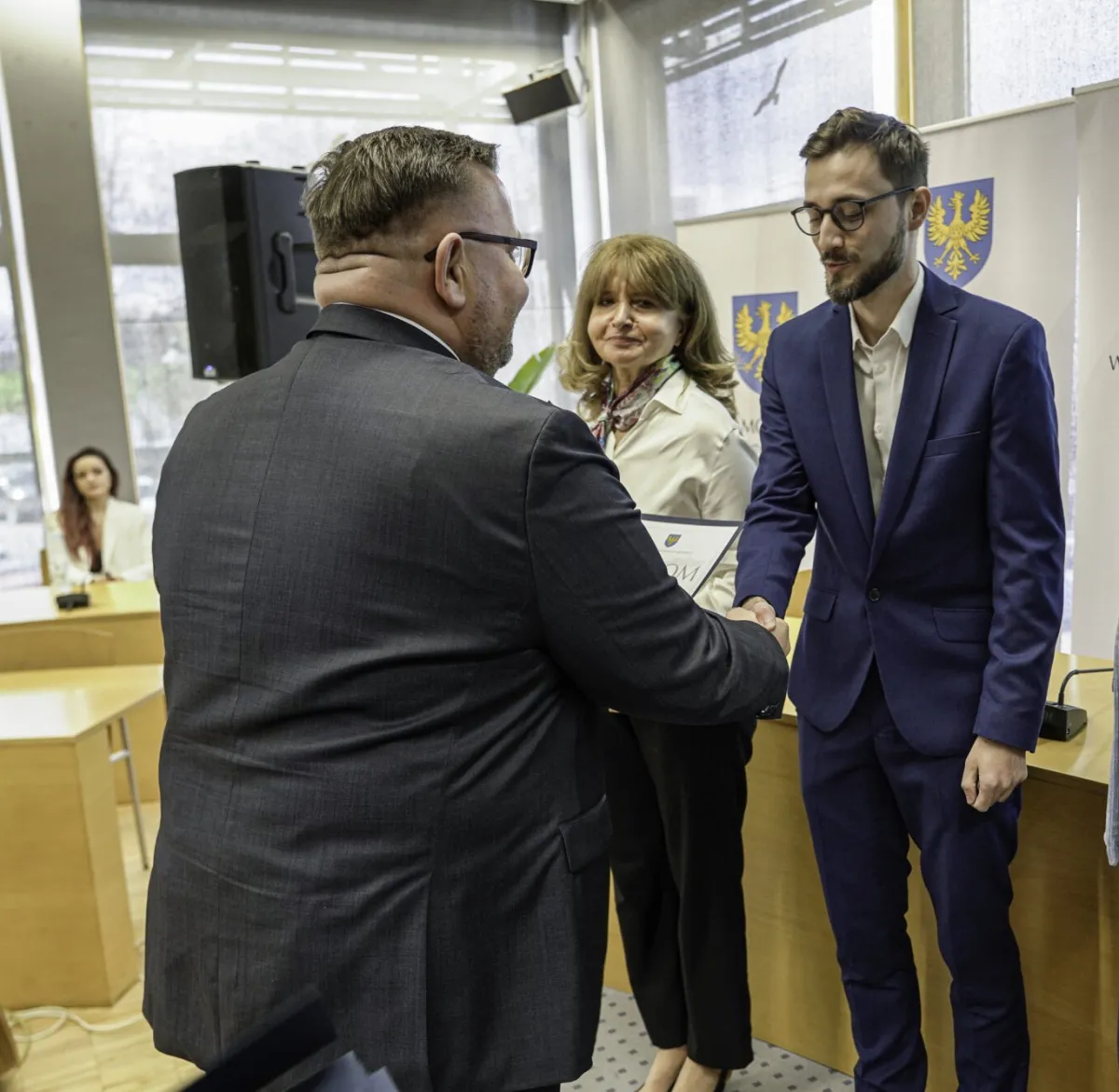 Z radością informujemy, że dr Mateusz Antczak otrzymał w dniu 30. marca br. nagrodę Marszałka Województwa Opolskiego Doctor Opoliensis podczas Regionalnego Święta Nauki. Naukowiec został wyróżniony za prace nad ekologią mezozoicznych kręgowców, których szczątki znaleziono na stanowiskach paleontologicznych w triasowych osadach Krasiejowa i w kredzie opolskiej. Publikacje, które oceniała Kapituła Konkursowa obejmowały badania nad chorobami kręgosłupa kopalnych płazów, opis ryb celakantokształtnych z Krasiejowa, potwierdzenie zmienności ekologicznej metopozaurów, analizę funkcji pancerza aetozaurów oraz interpretację diety rekinów (Ptychodus) na podstawie zawartości koprolitów. Dr Antczak zastosował w swej pracy różne metody badawcze: anatomię porównawczą, morfometrię, histologię i mikrotomografię komputerową. Odkrycia naukowe i interpretacje wyników badań wywierają wpływ na stan dotychczasowej wiedzy na temat mezozoicznych kręgowców. Dr Antczak promuje tym samym region i Krasiejów w świecie naukowym i poza nim.