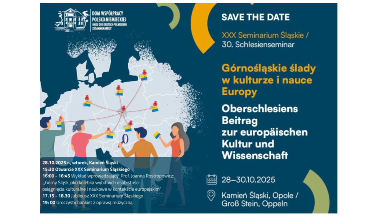 Dnia 28.10 o godz. 15.30 w Kamieniu Śl. odbędzie się XXX Seminarium "Górnośląskie ślady w kulturze i nauce Europy". Członków DFK zainteresowanych tematem i chętnych do udziału prosimy o zgłoszenie się na adres info@krasiejow.pl lub o kontakt tel. nr 694 416 008 do dnia 19.10.