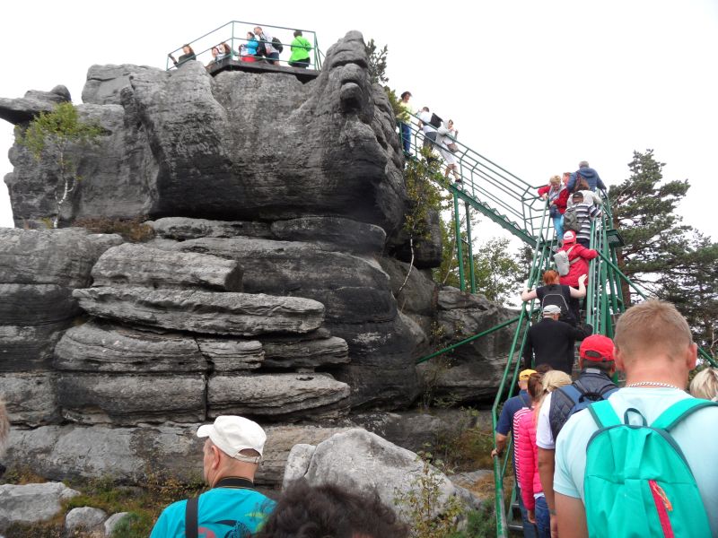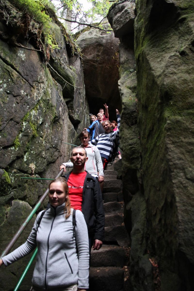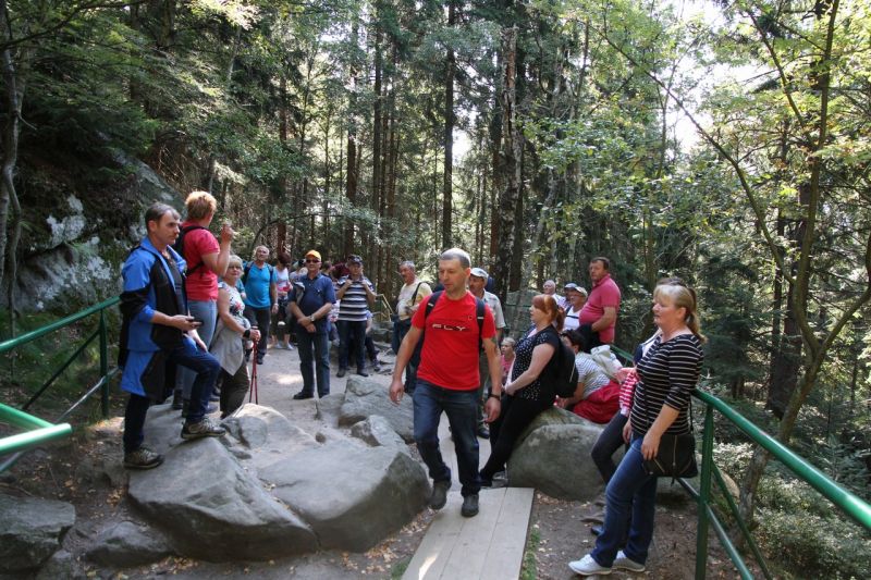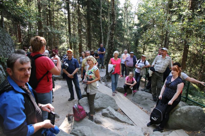Program niedzielny był dosyć napięty, gdyż w planie było dotarcie na Szczeliniec Wielki i spacer w Błędnych Skałach. Pogoda dopisała wyśmienicie i udało się powyższe cele zrealizować. Piękne formy wietrzeniowe w piaskowcach okresu kredowego urzekły nie tylko tych, którzy w Górach Stołowych byli po raz pierwszy, ale również stałych bywalców tych gór. Po smacznym niedzielnym obiedzie spożytym w urokliwym „Starym Młynie” w Kudowie Zdroju udaliśmy się pełni wrażeń w drogę powrotną i już nikomu nie przeszkadzało, że za oknem zaczął padać deszcz.