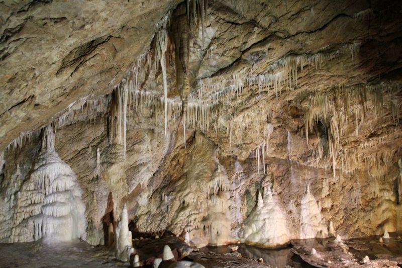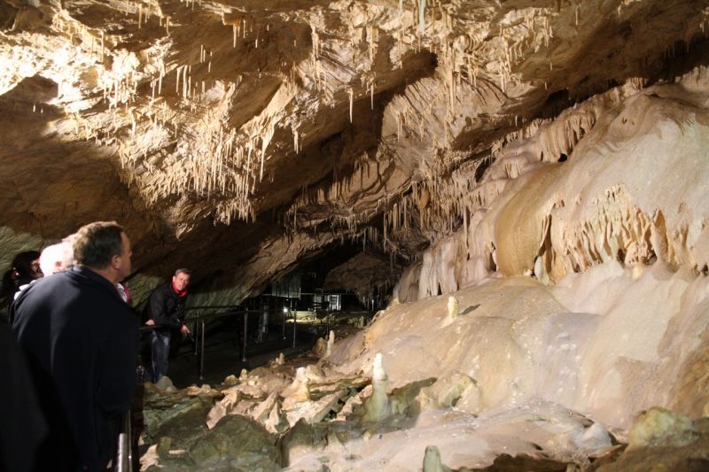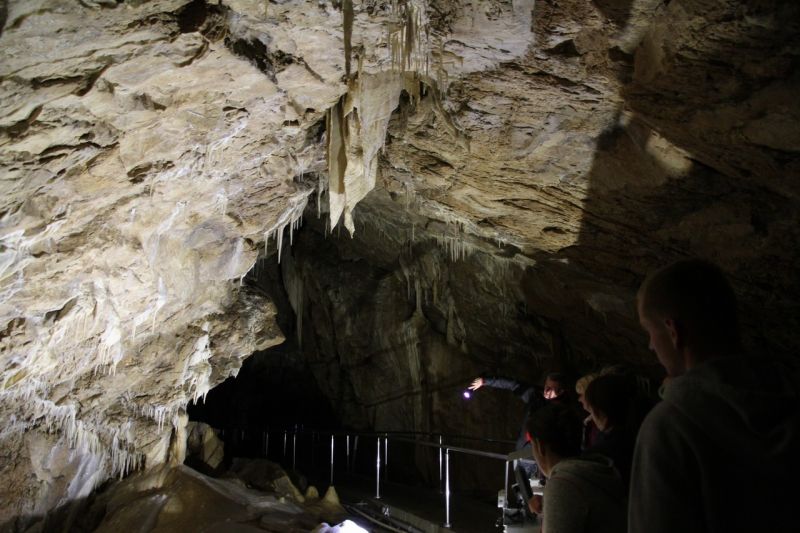 Następnego dnia rano wyruszyliśmy do Jaskini Niedźwiedziej, aby w grupach pod kierunkiem przewodnika zwiedzić to polskie cudo natury. A jaskinia jest naprawdę warta zobaczenia. Pięknie zachowane formy naciekowe w „Sali Pałacowej”, „Szczelina nad Progiem Ryżowym”, szczątki plejstoceńskich zwierząt zachowane w „Sali Lwa Jaskiniowego”, namuliska w „Sali ze szkieletem niedźwiedzia jaskiniowego”, czy też „Zaułek Kaskad” z formą przypominającą zamarznięty 6-metrowej wysokości wodospad - zapierają oddech zwiedzających. Aktualnie Samorząd Gminy prowadzi prace przygotowawcze do udostępnienia turystom największej odkrytej niedawno Sali Mastodonta. A robi ona wrażenie niesamowite, co można było zobaczyć na filmie promocyjnym. Ma ponad 100 metrów długości, do 30 metrów wysokości oraz 30-40 metrów szerokości. Po zwiedzeniu jaskini część grupy udała się do schroniska pod Śnieżnikiem na wysokość 1200 m n.p.m., a pozostali popijali wodę z okolicznego źródełka i spacerowali leśnymi ścieżkami. Po takim wysiłku obiad w knajpce „Nad Stawami” smakował znakomicie. Późnym popołudniem udaliśmy się do Bolesławowa na mszę świętą, odprawianą przez tutejszego proboszcza znanego w okolicy z udzielania ogromnej ilości ślubów. Młode pary przyjeżdżają nawet z Wrocławia, aby tutaj zawrzeć związek małżeński, a po ślubie posadzić pamiątkowe drzewko na placu kościelnym. Do swojej posługi ksiądz przyjeżdża maluchem oznakowanym jako „Pogotowie duszpasterskie” i czasami z włączoną sygnalizacją świetlną umieszczoną na dachu Fiata.