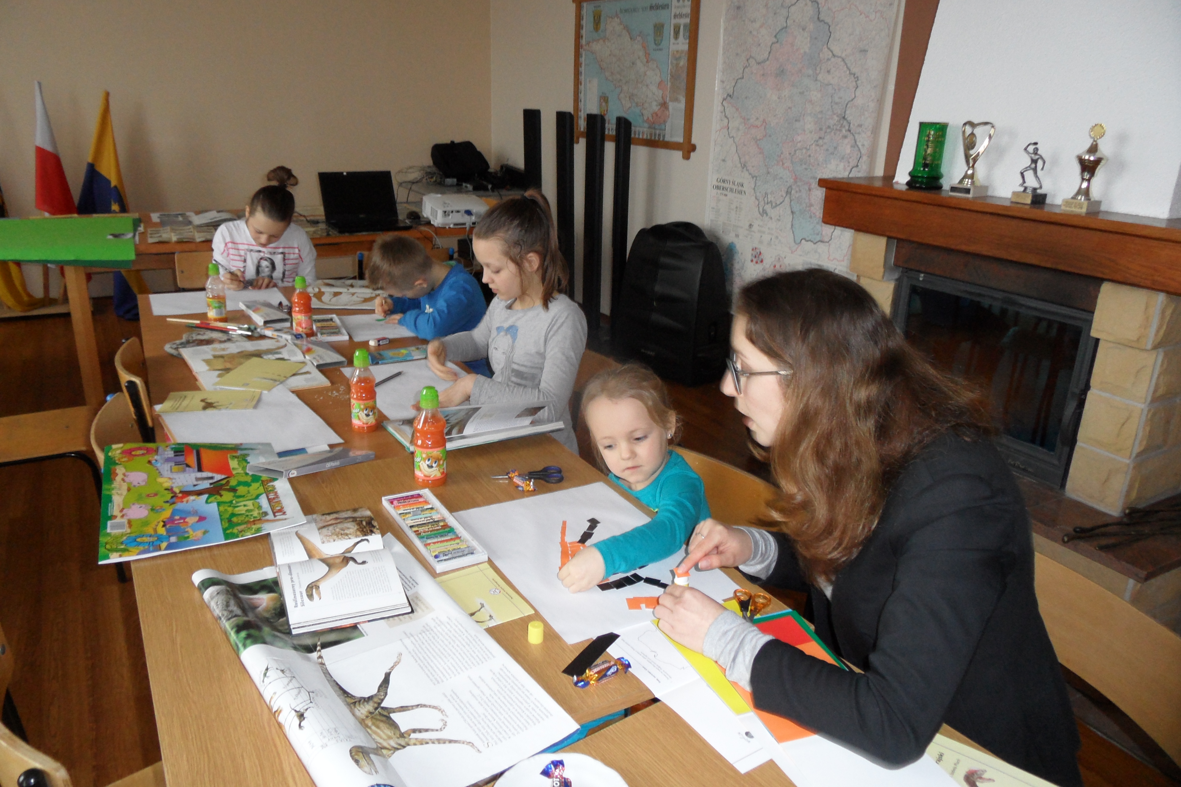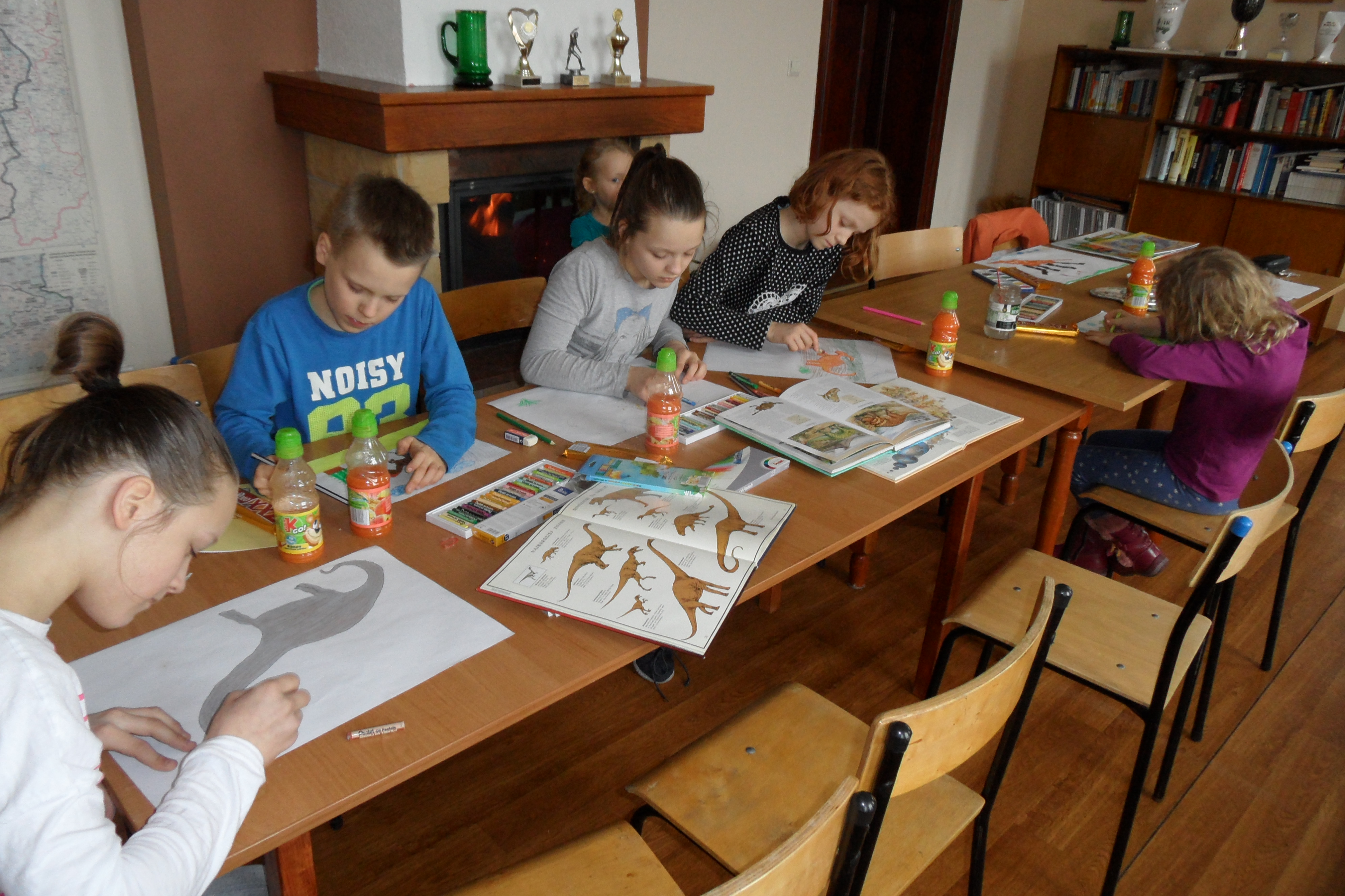 Dzień 26 lutego ustanowiony został światowym "Dniem dinozuara". Jako, że nasza miejscowość słynie z odkrycia pradinozaura zwanego Silesaurus opolensis Stowarzyszenie Miłośników Krasiejowa  i Rada Sołecka postanowiły uczcić ten dzień i zaprosić dzieci na zajęcia edukacyjne połączone z zabawą  do naszego Muzeum Paleontologicznego mieszczącego się w starej szkole. W programie zaplanowano prelekcję o dinozaurach, zwiedzenie muzeum, konkurs plastyczny i konkurs wiedzy o odkryciach paleontologicznych oraz projekcję filmu. Dzieci dowiedziały się jakie zwierzęta odkryto w Krasiejowie, kim jest paleontolog i na czym polega jego praca, co to są skamieniałości, jakimi cechami wyróżniają się dinozaury, w jakim czasie żyły i kiedy wymarły. Rozpoznawali fragmenty zwierząt w postaci czaszek, żuchw, obojczyków, kręgów, kości kończyn. Dowiedzieli się, jak zabezpiecza się skamieniałości i  na czym polega ich preparacja. Poznali postać Mary Anning - znanej brytyjskiej paleontolog z XIX wieku, która jako pierwsza odkryła kompletny szkielet ichtiozaura oraz nazwiska polskich odkrywców krasiejowskich płazów, gadów i pradinozaura, a także miejsca występowania tropów dinozaurów w Polsce. W zeszycie ćwiczeń rozpoznawali tropy dinozaurów drapieżnych i roślinożernych. Następnie dzieci przystąpiły do pracy i tworzyły plastyczne dzieła. Na koniec przeprowadzono konkurs zdobytej wiedzy, wręczono dyplomy, upominki i uczestnikom zrobiono pamiątkowe zdjęcie. Dzieci i prowadząca zajęcia wyróżniły  rysunek diplodoka wykonany przez  Małgorzatę Rajtor, a Joannę Rajtor pochwaliły za wiedzę o dinozaurach. Całe zajęcia przygotowała i prowadziła Sylwia Widawska, zaś najmłodszą uczestniczką opiekowała się Magdalena Moj. W trakcie zajęć dzieci otrzymały słodycze i napoje. Miłośnicy dinozaurów spędzili ten dzień w miłej i twórczej atmosferze.