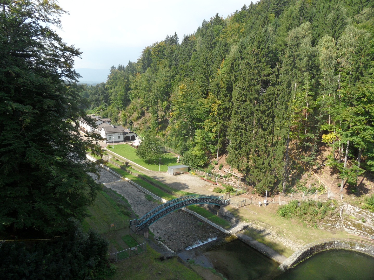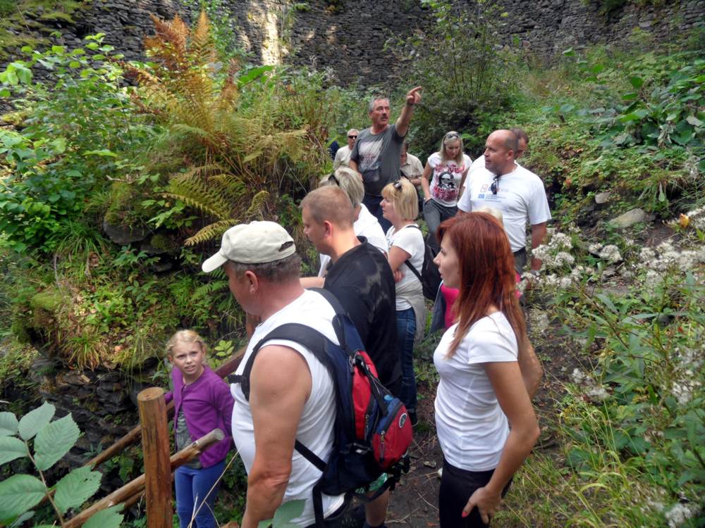 Międzygórze było znanym kurortem leczniczym. Następnie udaliśmy się do Międzylesia, gdzie czekał na nas obiad. Również i tutaj pospacerowaliśmy po mieście, a potem udaliśmy się w dalszą drogę. Na trasie zatrzymaliśmy się przy leśnej drodze, aby wąską dróżką dojść do ruin zamku Szczerba, który jest jedną z trzech średniowiecznych warowni Ziemi Kłodzkiej. Następnie zatrzymaliśmy się w punkcie widokowym Jedlnik, z którego roztaczała się panorama Gór Bystrzyckich , Orlickich i Masywu Śnieżnika. Ciekawostką florystyczną była endemiczna, karłowata sosna na wzniesieniu tego grzbietu.