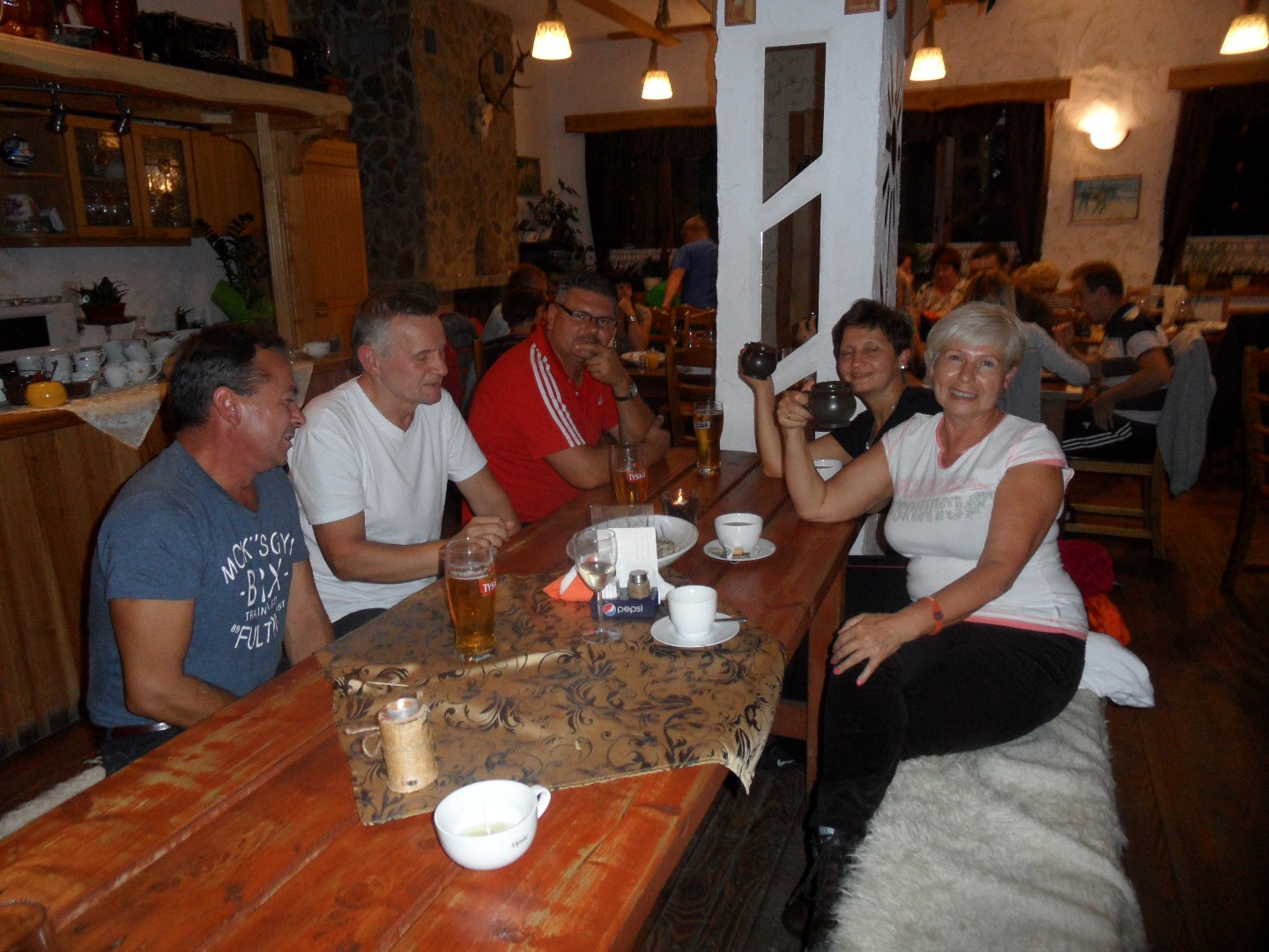 Sobotni wieczór spędziliśmy w miłej knajpce „ Nad Stawami” zajadając się smacznym pstrągiem. Grajek towarzyszący naszej kolacji skapitulował, gdy większość z nas zaczęła kibicować polskim siatkarzom podczas meczu siatkówki z Kamerunem.