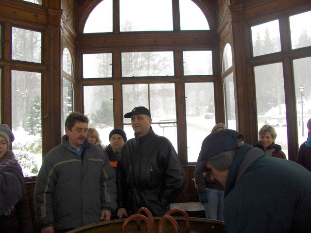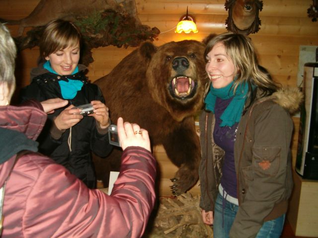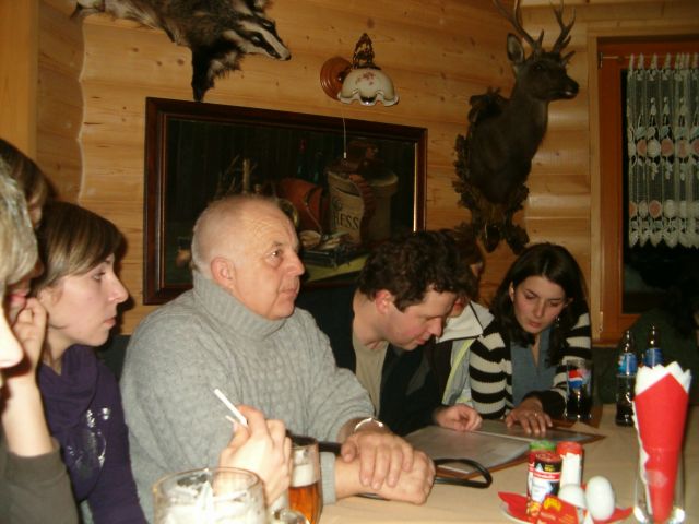 Wyjazd nastąpił w piątkowe popołudnie. Ponieważ warunki pogodowe nie były zbyt sprzyjające, do miejsca zakwaterowania w   hotelu „Relax” w Starej Wsi przyjechaliśmy z godzinnym opóźnieniem. Po drodze zatrzymaliśmy się w Ludwikovie, aby posilić się tradycyjną  „czosneczką” w  restauracji „Grizzli”. Wystrój  karczmy, której głównym materiałem budulcowym było drewno  stanowiły interesujące trofea myśliwskie: amerykański grizzli, łoś z Kamczatki, świstak, daniele, jelenie, sarny i liczne ptactwo oraz ustawiony na środku  piękny  piec wykonany z czerwonych kafli.