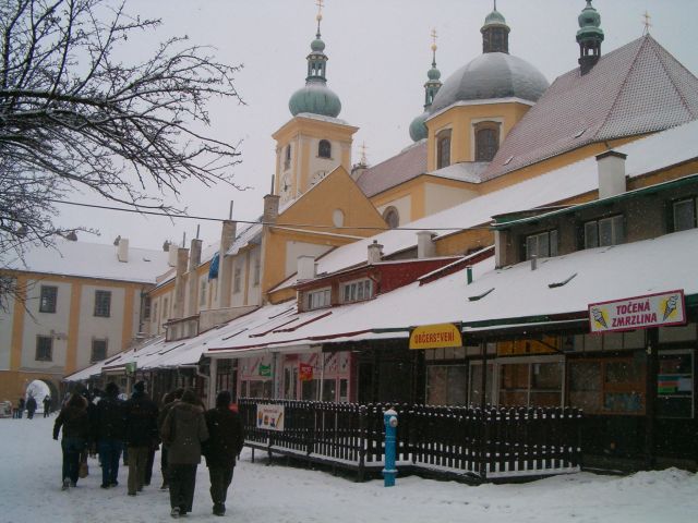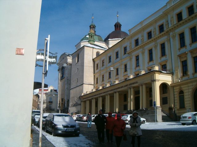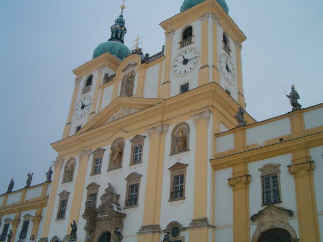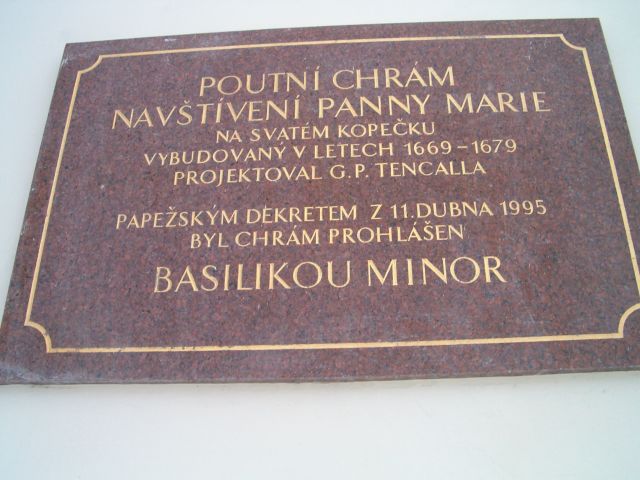 Następnego dnia udaliśmy się do Ołomuńca. Po drodze zwiedziliśmy Svatỳ Kopeček. Duża barokowa świątynia z XVII w. będąca miejscem pielgrzymek podobnie jak nasza  Góra Św. Anny, widoczna jest  z daleka z trasy nr 46, wiodącej ze Šternberka. Co ważne, bazylikę odwiedził Jan Paweł II, dlatego na ścianie głównej kościoła  znajduje się pamiątkowa tablica.