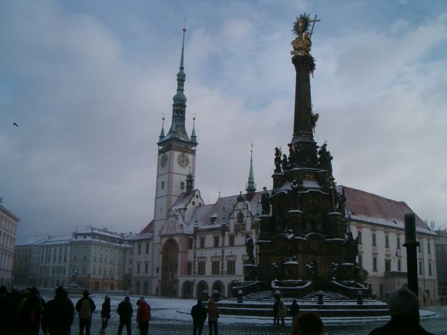 Stamtąd udaliśmy się do słynącego z zabytków Ołomuńca. W 1063 roku ustanowiono tutaj siedzibę biskupa, a w 1187 roku miasto zostało stolicą Moraw i pełniło tę funkcje do 1641 roku.  Wszystkie zabytki Ołomuńca znajdują się na starym mieście. W części miasta zwanej Horni náměsti widnieje piękny biały ratusz wzniesiony w 1378 roku. Wzrok zwiedzających przyciągają: wnęka z zegarem przypominającym praski Orloj umieszczona na jednej ze ścian ratusza,   wykonana w brązie makieta miasta oraz morowa kolumna Trójcy Przenajświętszej z XVIII w. na placu ratuszowym.  Vaclaw Rotyski pracował nad jej wykonaniem 38 lat.