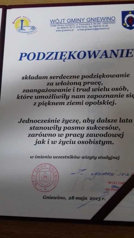 W dniach 22 –24 maja 2013r. gościliśmy z wizytą studyjną w Krasiejowie sołtysów, radnych oraz osoby z organizacji pozarządowych i urzędów gmin Gniewino, Pruszcz Gdański, Czarna Dąbrówka z Pomorza. Delegacja zwiedzała JuraPark oraz spotkała się z przedstawicielami SMK oraz Radą Sołecką wsi w budynku starej szkoły. Prezes Stowarzyszenia Pan Krzysztof Koźlik przedstawił gościom działania lokalnych organizacji i efekty projektów realizowanych w ostatnich latach w ramach Odnowy Wsi. Następnie odbyła się dyskusja, podczas której usłyszeliśmy wiele pochwał na temat widocznych efektów naszych wieloletnich działań. Wszystkim bardzo podobała się Opolszczyzna, wygląd jej wsi, estetyka gospodarstw i zauważalna wszędzie czystość. Następnego dnia goście odbyli podróż po Gminie Strzelce Opolskie, zwiedzili Rozmierkę, Rozmierz i Kadłub. W godzinach wieczornych udali się do Kamienia Śląskiego. 24 maja poznawali Gminę Popielów. Sołtys wsi Pan Kazimierza Tarsa otrzymał podziękowania od członków delegacji za wspaniałe ich przyjęcie w Krasiejowie. Jeżeli jakieś krasiejowskie wzorce znajdą naśladowców na wsiach Pomorza, to będzie to nasz mały sukces. Nie zapominajmy, że program „Odnowa wsi” ma swoje korzenie na Opolszczyźnie.