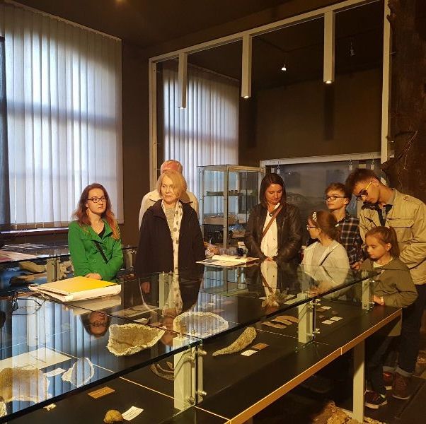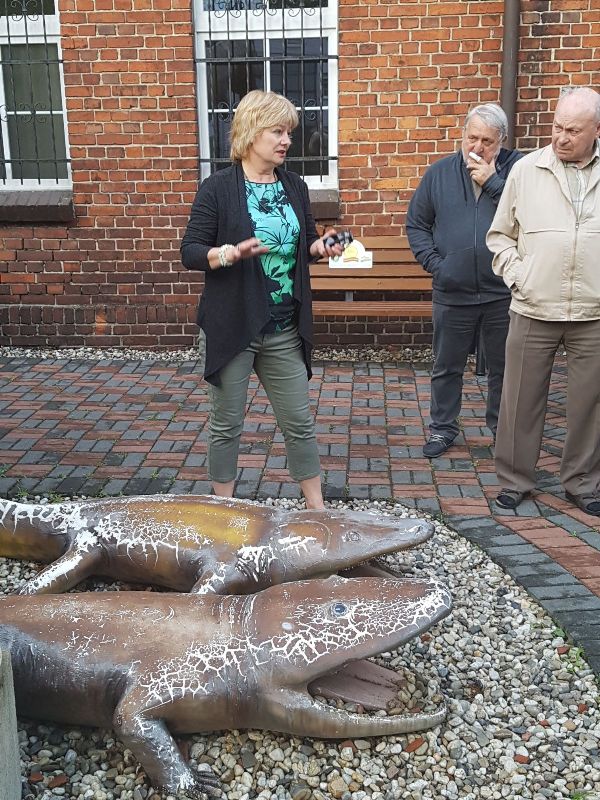 W środowy wieczór o godz. 19.00 do Krasiejowa przybyło ponad 25 osób z Ozimka i Opola oraz dwie mieszkanki Krasiejowa, aby poznać zasoby muzealne "Starej Szkoły" i wysłuchać wykładu o odkryciach paleontologicznych i aktualnych wynikach badań naukowych. Przez prawie osiemnaście lat przybyło nowych danych i pewne poglądy dotyczące wieku osadów, środowiska, trybu życia czy rozwoju osobniczego popularnego chociażby płaza wodnego metoposaurus krasiejowensis należy skorygować. Przybył nowy gatunek jakim jest gad latający nazwany ozimek volans. Oprowadzająca przedstawiła także pokrótce inne wydarzenia geologiczne jakie miały miejsce na Opolszczyźnie na przestrzeni dziejów. Zwiedzający mogli zobaczyć nie tylko krasiejowskie triasowe skamieniałości, ale także reprezentantów morza jury środkowej z Faustianki i nową kolekcję kredowych okazów wymarłych grup głowonogów, małży, gąbek, ramienionogów oraz unikatowych zębów rekina z opolskich kamieniołomów. Dowiedzieli się, kiedy na Opolszczyźnie panowało morze, jakie żyły w nim organizmy i jakie skały pozostawiło "w spadku". Poinformowani zostali o zjawiskach wulkanicznych na Śląsku, erupcji wulkanu na Górze św. Anny, a także ich skutkach w przeszłości geologicznej. Prześledzili zmiany położenia geograficznego dzisiejszej Polski na przestrzeni milionów lat na mapie świata. Następnie goście udali się do izby muzealnej wsi, aby poznać zasoby części historycznej. Nie sposób było opowiedzieć o wszystkim podczas jednego spotkania (choć trwało ono prawie dwie godziny), dlatego wyrazili chęć powrotu do Krasiejowa na kolejny, tym razem historyczny wykład i ponowne zwiedzenie sal z pamiątkami muzealnymi. Goście wyszli bardzo zadowoleni i mile zaskoczeni, że zgromadziliśmy tak ciekawe zbiory. Na zakończenie prezes SDMP - Józef Tomasz Juros wpisał słowa podziękowań do księgi pamiątkowej życząc członkom Stowarzyszenia Miłośników Krasiejowa dalszych pomysłów i sukcesów.