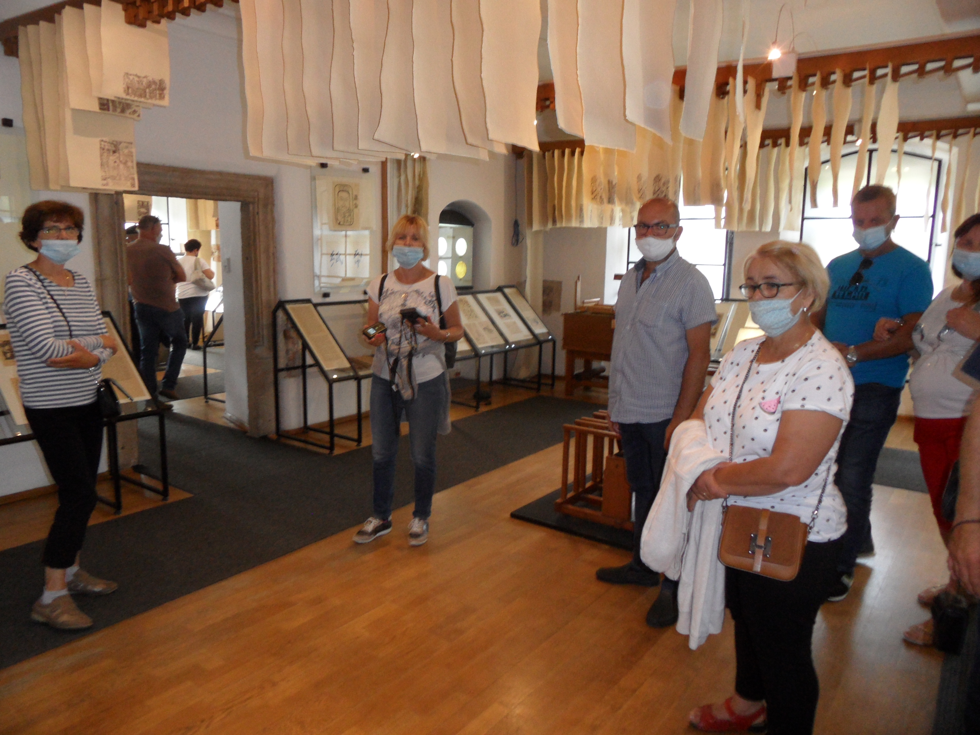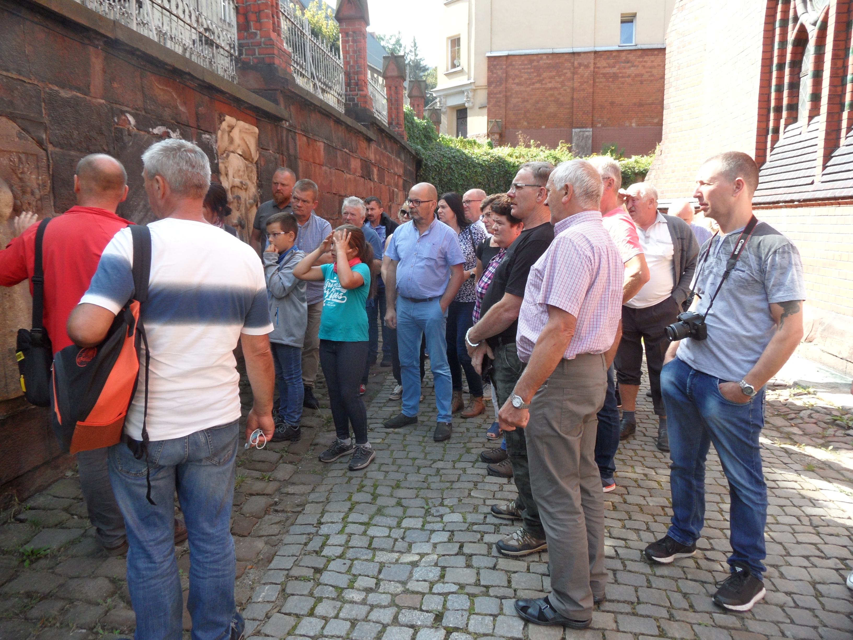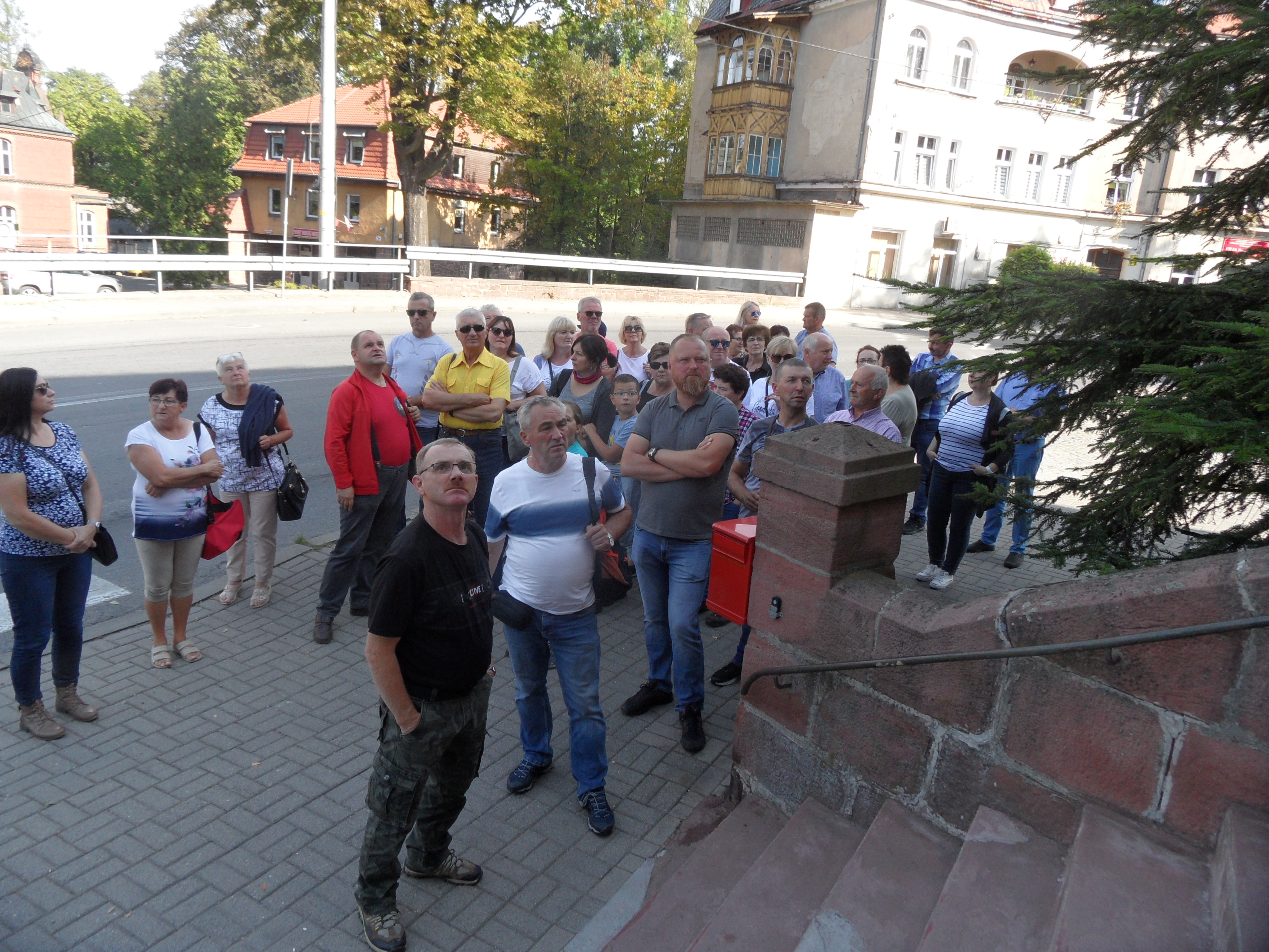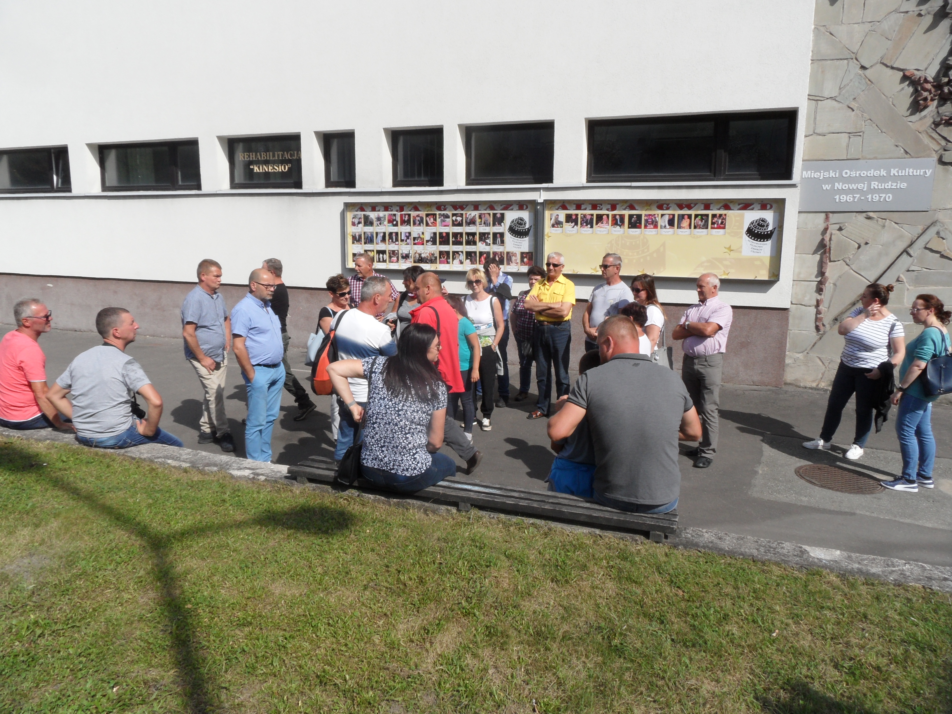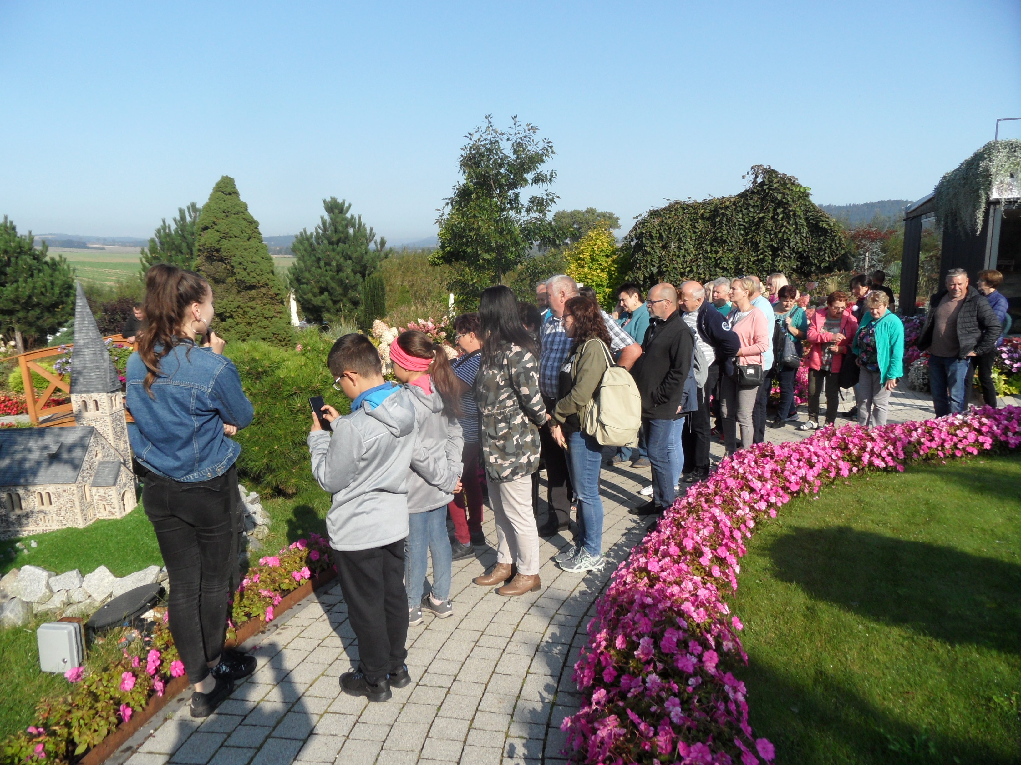 W słoneczne popołudnie dn. 11 września ok. 40- osobowa grupa członków i sympatyków Stowarzyszenia Miłośników Krasiejowa udała się na wycieczkę do Kotliny Kłodzkiej. Po zakwaterowaniu w pensjonacie "Willa Panorama" udaliśmy się na kolację do restauracji "Nad Stawami", gdzie zaprzyjaźniony pan Paweł wraz z żoną ugościli nas smacznym pstrągiem. Tego wieczoru spotkaliśmy się z Zbigniewem Łopusiewiczem- byłym Burmistrzem i sekretarzem Stronia Śląskiego- Tomaszem Olszewskim i ich małżonkami. W prezencie zastępca prezesa SMK- Werner Klimek otrzymał książkę z najciekawszymi obiektami turystycznymi regionu z dedykacją Starosty i przewodniczącego Rady Powiatu. Rozmowy dotyczące działań na rzecz rozwoju turystyki trwały do późnych godzin wieczornych. Następnego dnia zgodnie z planem udaliśmy się do Kłodzka, aby zwiedzić Minieuroland - przeurocze miejsce z miniaturami najbardziej znanych europejskich obiektów wraz z okazałym arboretum. Cudowna pogoda podkreślała swoisty klimat tego miejsca, w którym każdy mógł znaleźć dla siebie najpiękniejszy zakątek, oddać się relaksacyjnej muzyce i nasycić barwami letnich kwiatów. A były ich tam tysiące ułożone w swoiste dywany, girlandy, po prostu małe dzieła sztuki. Na zielonej trawie spotkać można było dostojnego pawia, gdzie indziej w zieleń wkomponowano fortepian i skrzypce, a jeszcze w innym miejscu wiły się szumiące potoki z wodospadami. Przez kilka spędzonych tam godzin mogliśmy zatrzymać się przed londyńskim zegarem Big Ben, Bramą Brandenburską, Bazyliką św. Piotra, krzywą wieżą w Pizie, drezdeńskim Zwingrem, Łukiem Tryumfalnym i wieloma innymi obiektami. Zobaczyliśmy min. kamieniczki i twierdzę Kłodzka, bazylikę w Wambierzycach, gmach Uniwersytetu Wrocławskiego, zabytkowy most nad Jeziorem Pilchowickim i inne atrakcje regionu. Przy wieży Eiffla zrobiliśmy sobie pamiątkowe zdjęcie. Po spożyciu smacznej kawy i gofrów udaliśmy się do Muzeum Papiernictwa w Dusznikach Zdroju. Podzieleni na dwie grupy zwiedzaliśmy wpisany w 2011r. na listę pomników historii obiekt, w którym poznaliśmy historię papieru na świecie, Polsce i Śląsku i dowiedzieliśmy się, że w dusznickim młynie papier czerpie się po dzień dzisiejszy. W czasie wędrówki po salach muzealnych poznaliśmy sposoby zabezpieczenia banknotów, podziwialiśmy urządzenia papiernicze i zbiór arkuszy z filigranami od XVI do XXIw. W przyległym sklepiku wielu z nas nabyło ozdobną papeterię listową i okolicznościowe kartki wykonane na papierze czerpanym. Po wizycie w muzeum udaliśmy się na smaczny obiad do restauracji "Mateo", którą można polecić smakoszom jedzenia. Ręcznie robiony makaron w rosole to naprawdę już rzadkość. Przed kolacją uczestnicy wycieczki udali się indywidualnie na spacery, aby zmieścić jeszcze tego wieczoru w żołądkach zapowiedziane golonko. W niedzielę po śniadaniu udaliśmy się do Nowej Rudy. Tutaj w towarzystwie przewodnika sudeckiego zwiedzaliśmy zabytki miasta. Część uczestników wycieczki udała się do kościoła św. Mikołaja na mszę świętą. Niecodziennym przeżyciem dla dużej grupy był pobyt w kawiarni zwanej "Białą Lokomotywą ". Właściciel lokalu- mistrz baristyki- do każdego klienta podchodził z indywidualną propozycją oryginalnej smakowej kawy z niezwykłymi dodatkami takimi jak np. szafran czy kasztany. Po zwiedzeniu centrum miasta pojechaliśmy do dawnej kopalni węgla kamiennego. Przeszliśmy turystyczną trasę podziemną, a następnie zwiedziliśmy część muzealną z kolekcją skamieniałości węglowych, akcesoriów związanych z górnictwem (lampy, maski, hełmy, otwory i górnicze środki strzałowe, stroje ratownicze i galowe) oraz stację dowodzenia naziemnego. W kopalni zobaczyliśmy ostatni załadowny węglem wózek z pola Piast z 1994 r. , który zakończył eksploatację tego surowca w regionie sudeckim. Kolejnym punktem programu kończącym oficjalną część wycieczki był obiad w restauracji "Zapiecek".