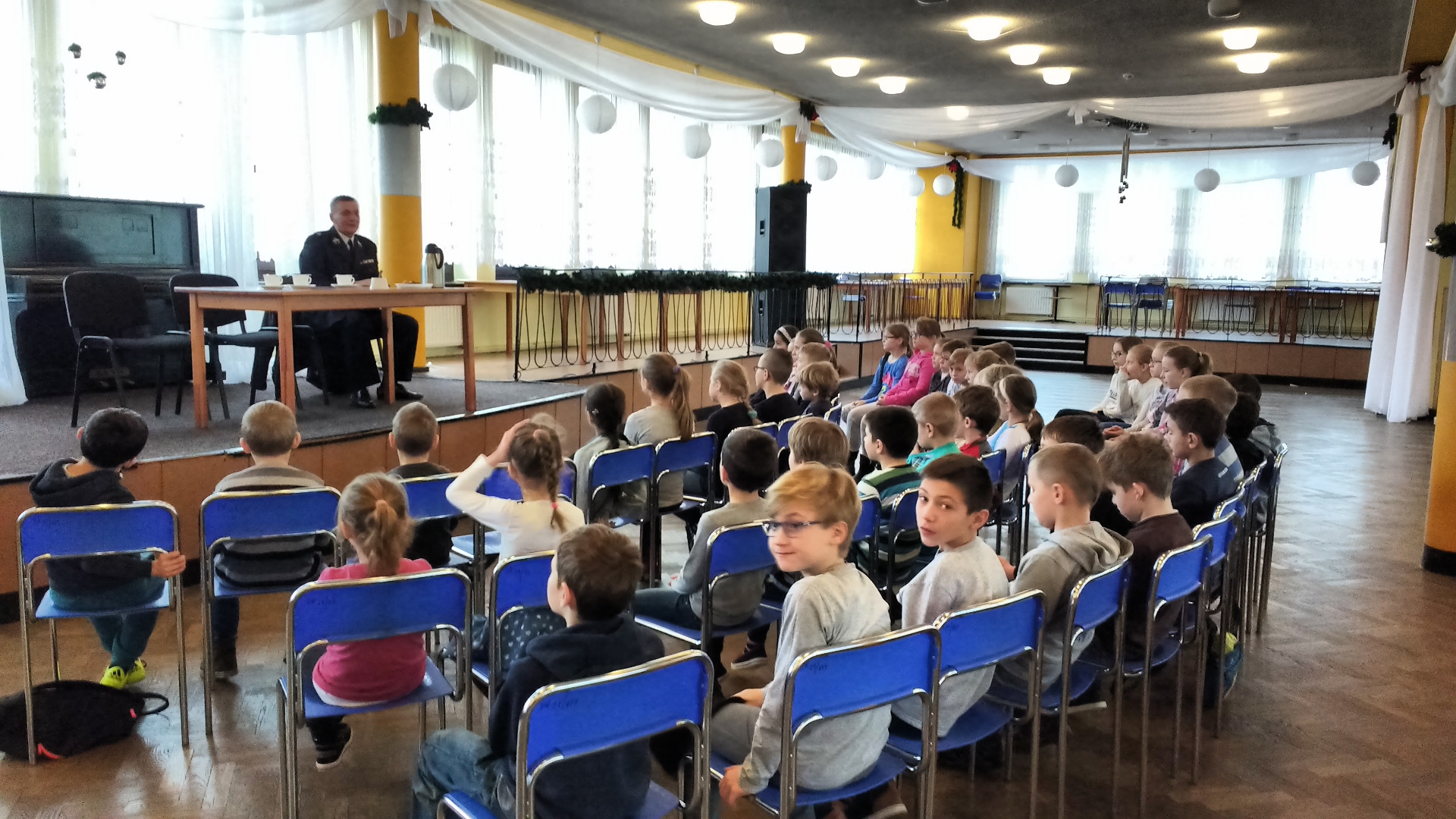 Nasi druhowie opowiadali dzieciom o zawodzie strażaka. Opowiadali o niebezpieczeństwach związanych z pożarami, wypadkami drogowymi oraz pracą strażaka. Pogadanka była okazją dla dzieci do zadania pytań, które nurtowały dzieci. W czasie spotkania poruszano różne tematy od umundurowania i sprzętu strażackiego po ciekawe przykłady zdarzeń, które miały ostrzec dzieci przed nieodpowiedzialnym zachowaniem. Strażacy udowodnili, że nie tylko gaszą pożary, ratują ludzi i zwierzęta, ale także dbają o edukację i propagują bezpieczne zachowania.