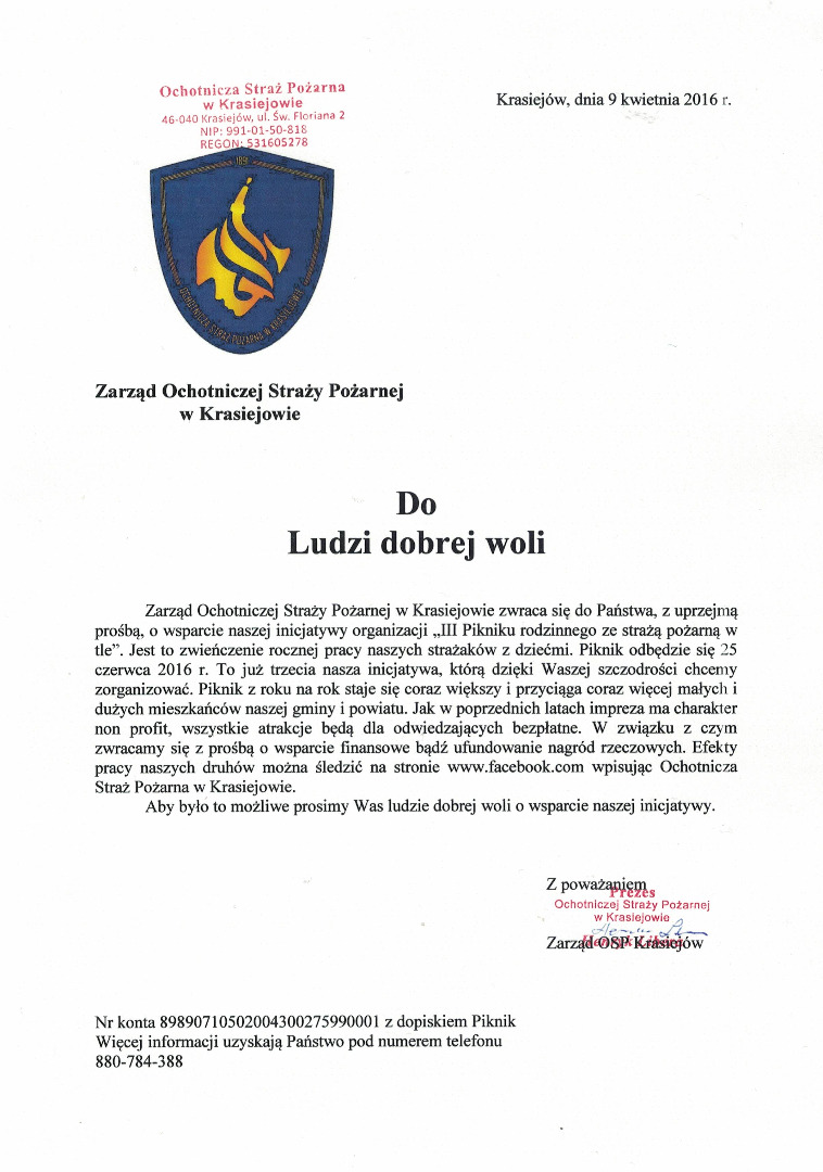 OSP Krasiejów - prośba o wsparcie inicjatywy.