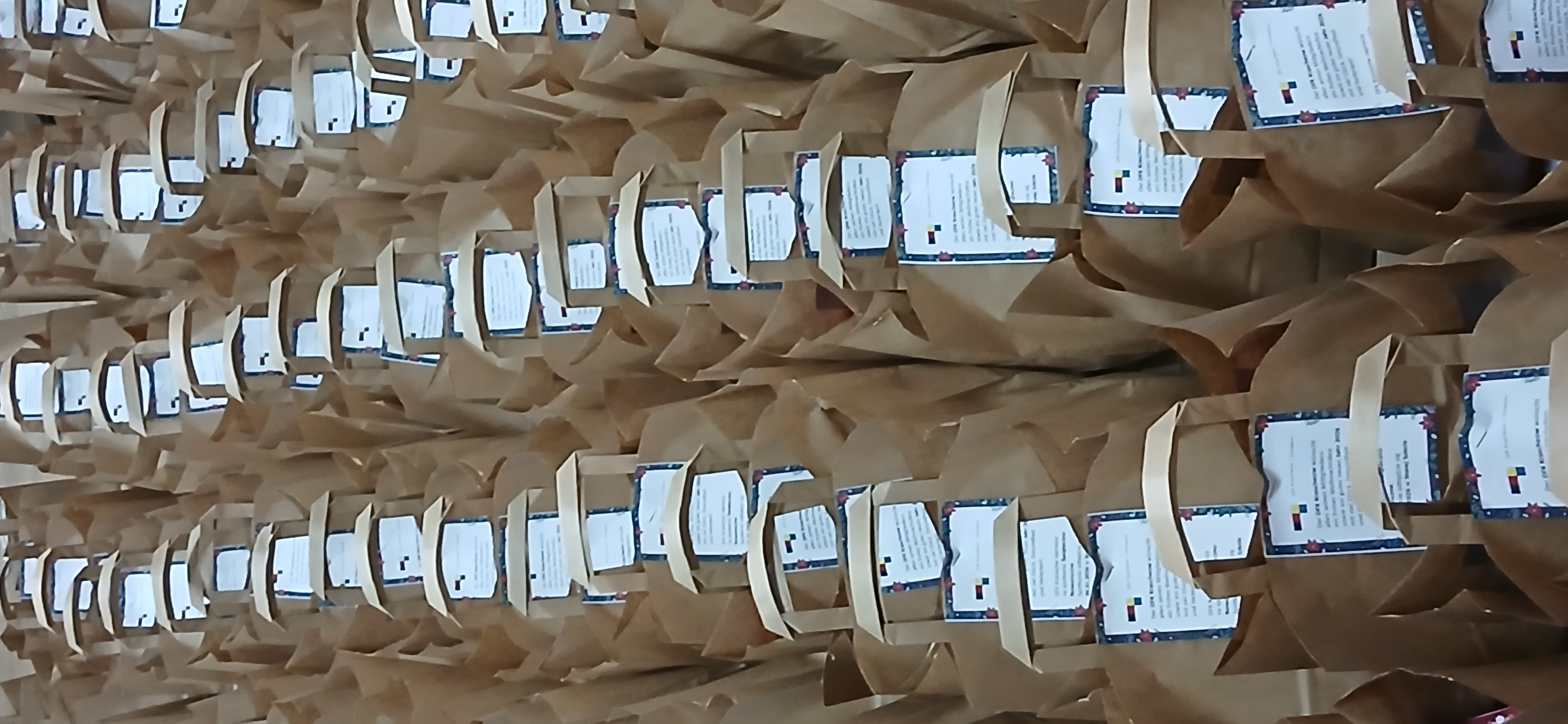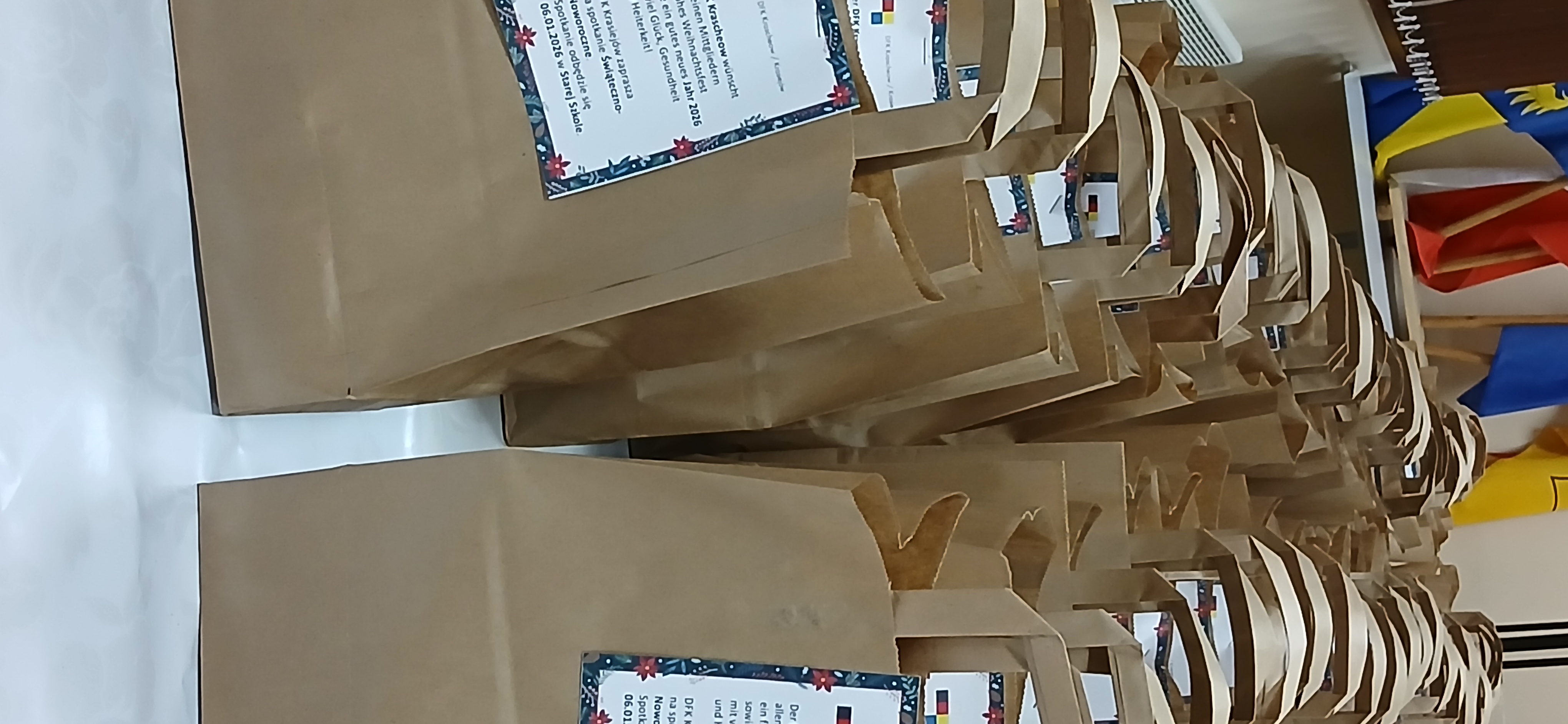 W poniedziałek wieczorem 6-osobowa grupa osób: Państwo P. i S. Szubertowie, M. Konietzko, N. Wieszołek i S. Widawska  spotkała się w świetlicy szkoły, aby przygotować paczki świąteczne dla członków DFK i osób niepełnosprawnych. Wykonano ponad 170 paczek, które następnego dnia rozwieziono do członków koła DFK. Zarząd kieruje podziękownia dla Pani Ilony Świerc za pomoc w dokonaniu zakupów i zaprasza wszystkich mieszkańców na tradycyjny Weihnachtsfeier w dniu 6 stycznia 2026 roku do sali w Starej Szkole.