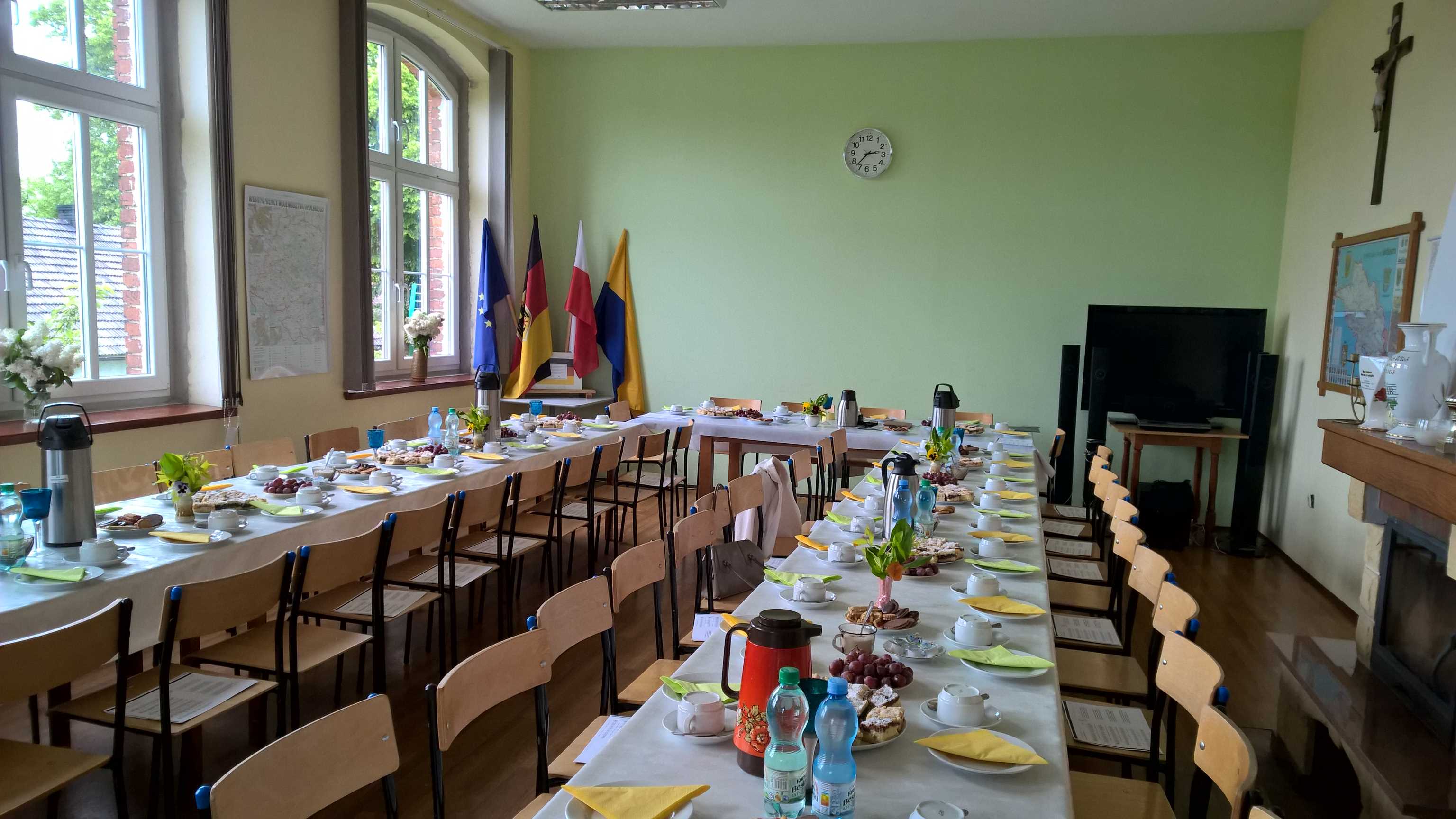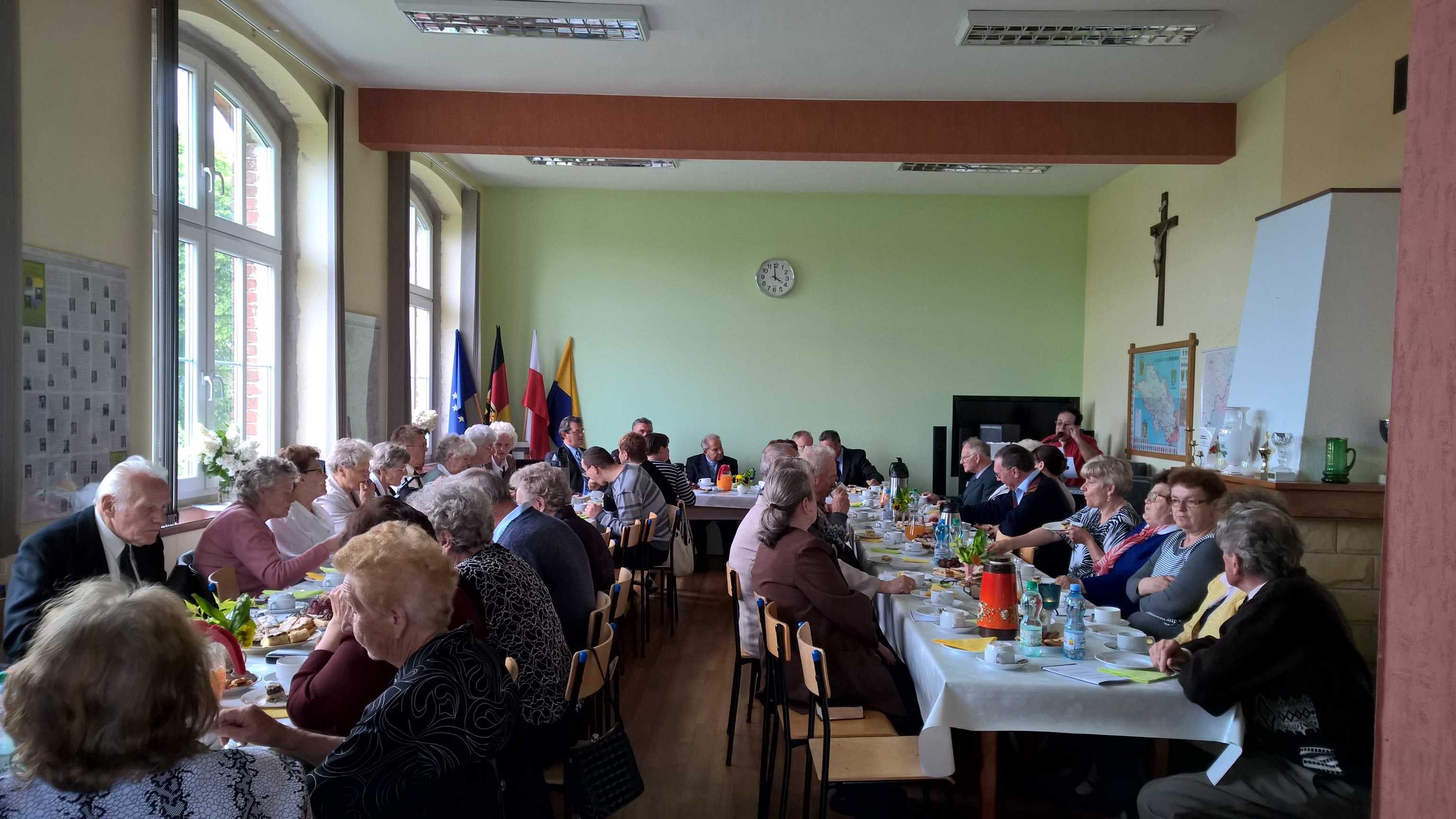 Die Feier wurde mit der Begrüßung der Gäste und Mittglieder durch den Vorsitzenden Piotr Szubert eröffnet. Daraufhin wurden Lieder bei Kaffee und Kuchen gesungen. Für Live-Musik sorgte der Herr Joachim Fila aus Danietz. Die Pausen zwischen der Musik wurden von geistreichen Anekdoten des Pfarrers Malcherek ausgefühlt.