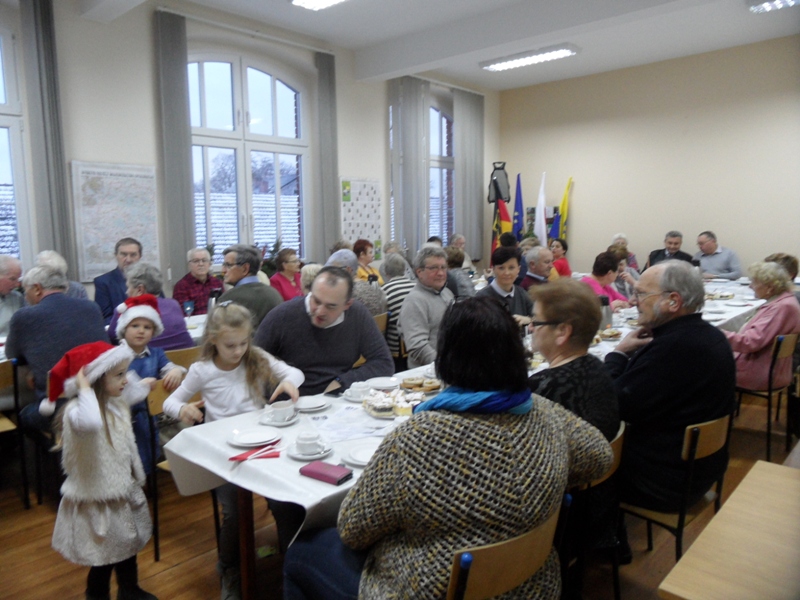 Dnia 6 .01. 2018r. koło DFK Krasiejów zorganizowało tradycyjne spotkanie świąteczno-noworoczne "Weihnachtsfeier". Do świetlicy w Starej Szkole przybyło kilkadziesiąt osób - dorosłych oraz dzieci z przedszkola w Krasiejowie. Spotkanie rozpoczął przewodniczący Piotr Szubert i sekretarz Marcin Konietzko witając uczestników oraz zaproszonych gości, przewodniczącego TSKN w gminie Ozimek- Klausa Leschika wraz z małżonką oraz sołtysa Tadeusza Markulaka. Następnie słowami modlitwy wspomnieliśmy zmarłych w zeszłym roku członków koła DFK Krasiejów. Świąteczną atmosferę rozpoczęto kolędą, po której nastąpił program artystyczny, przygotowany przez dzieci z przedszkola w Krasiejowie pod kierunkiem nauczycielki j. niemieckiego pani Dominiki Gerlich. W dalszym programie imprezy odbyło się wspólne kolędowanie zebranych, a potem poczęstunek przygotowany przez panie z koła DFK (E Wer, I. Feliks, S. Szubert, U. Bok). Słowa podziękowania za oddane w wyborach samorządowych głosy wygłosili Krzysztof Koźlik - Radny Powiatu oraz Jan Polaczek- Radny Gminy Ozimek, zaś życzenia noworoczne złożył przewodniczący TSKN w Gminie Ozimek, pan Klaus Leschik. Oprawę muzyczną zapewnił pan Bogdan Koprek, za co zarząd DFK składa serdeczne podziękowania.