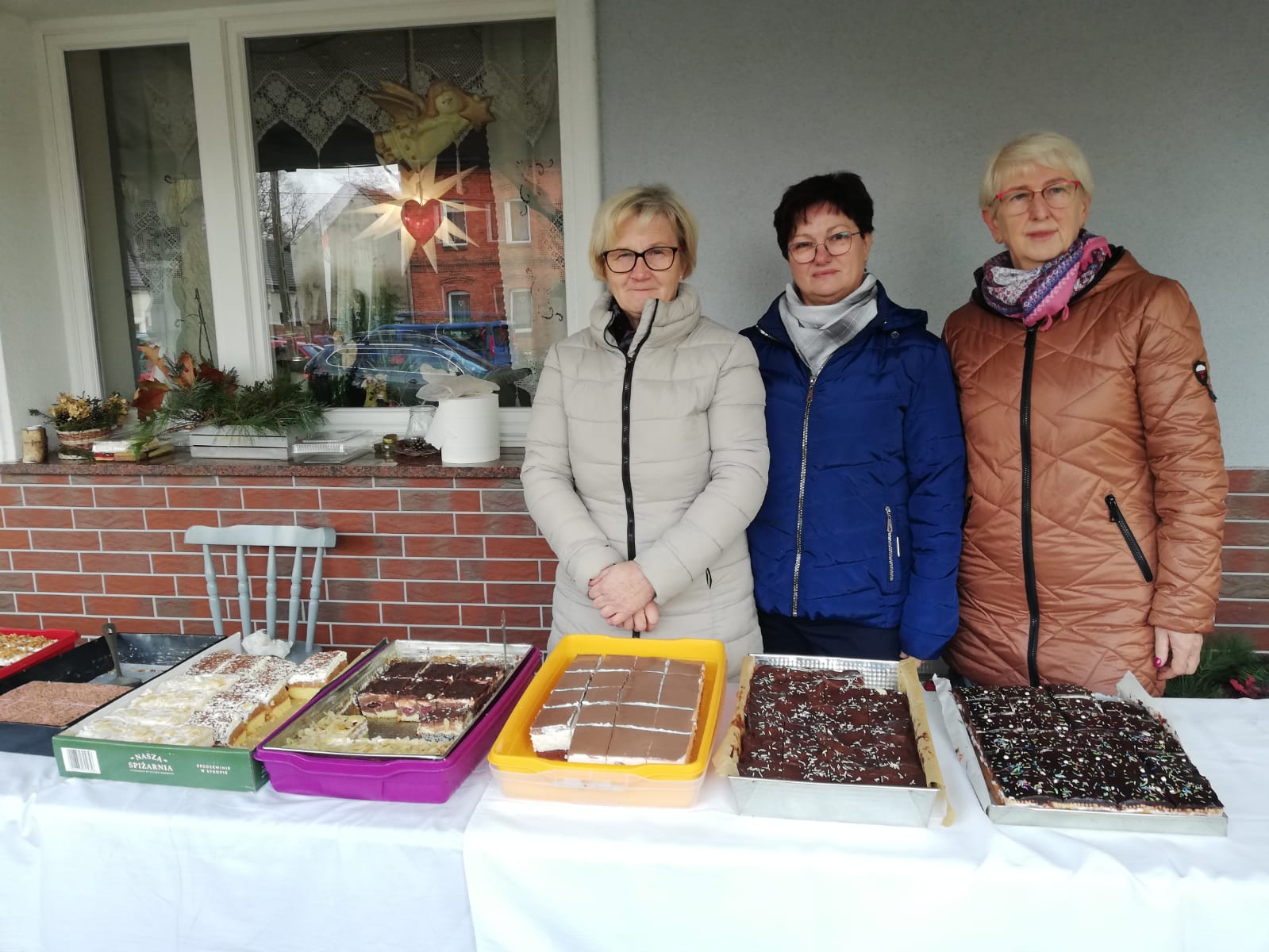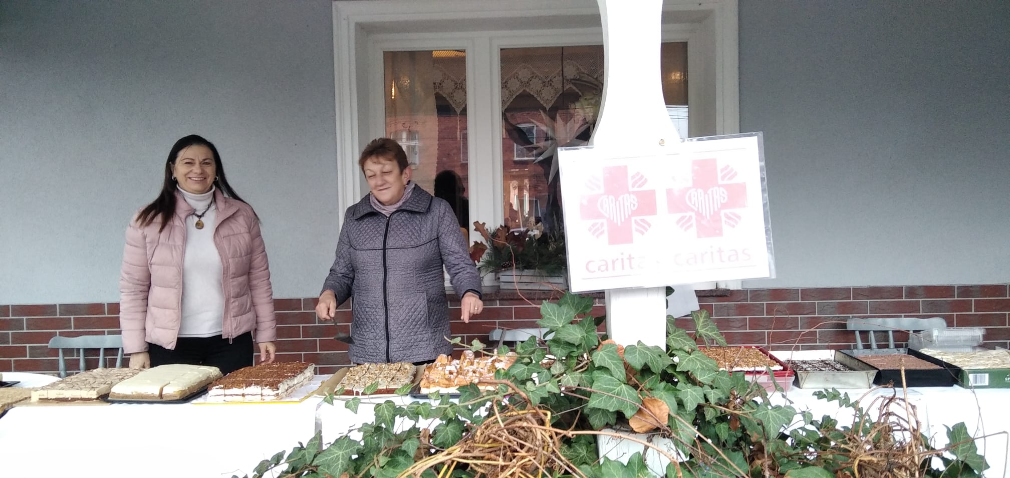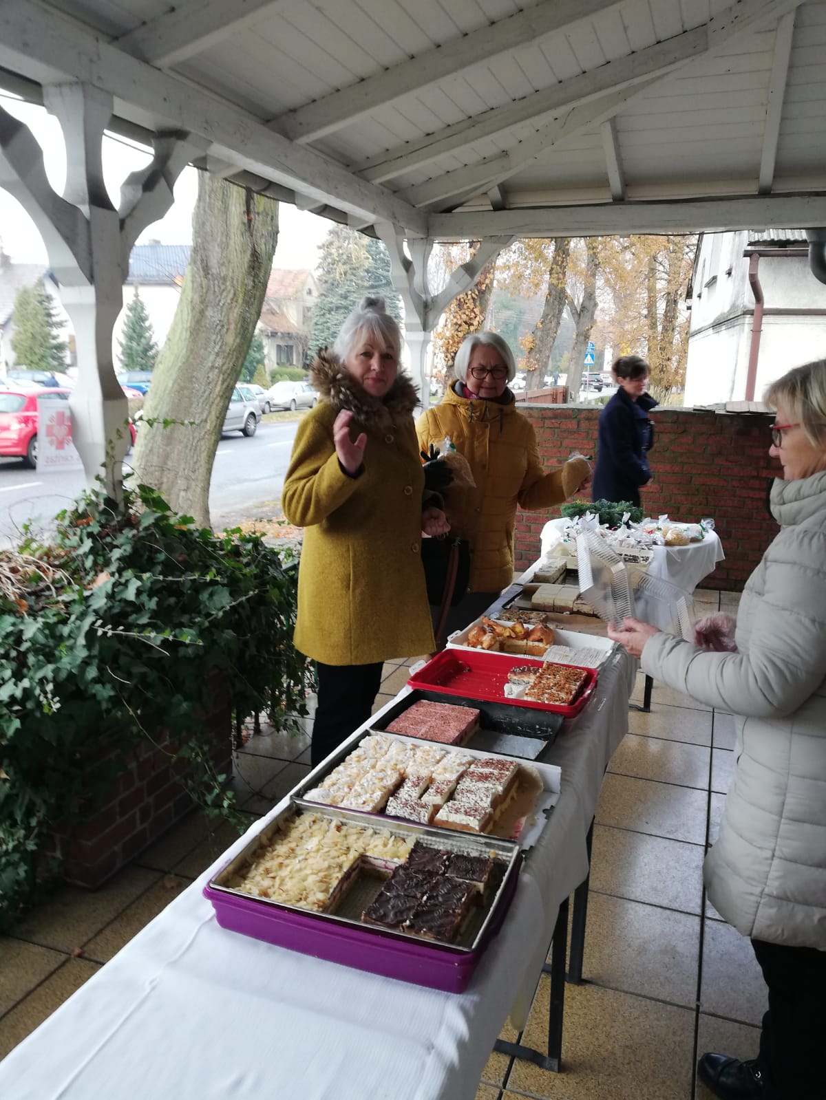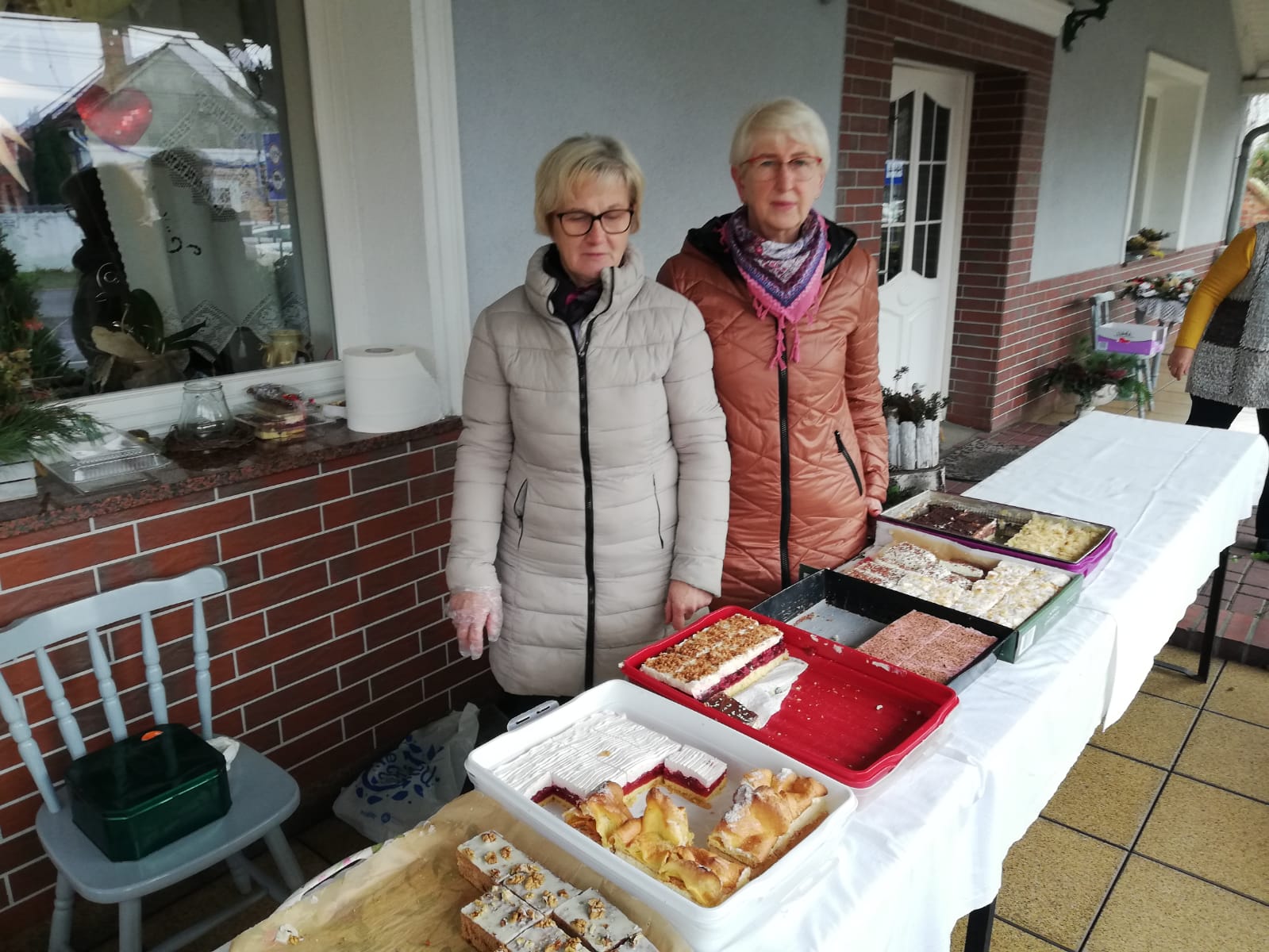 W niedzielne przedpołudnie członkinie Parafialnego Zespołu Caritas przygotowały w restauracji u Pani Schroll stoły z wypiekami. Oprócz smacznych i zachęcająco wygladających ciast na kiermaszu można było nabyć pierniki z domowego wypieku i makaron ręcznej roboty. Przed i po mszy świętej parafialnie podchodzili do stoisk i kupowali wypieki na popołudniową kawę. Cel jest szczytny, bo datki zasilą kasę Caritas i będzi można wspomóc najbardziej potrzebujących. Panie z zespołu serdecznie dziękują wszystkim sponsorom i darczyńcom za wypieki i czas poświęcony na ich przygotowanie. W kościele można było nabyć pięknie wykonane wieńce adwentowe na stół i drzwi, co również wymagało wielu godzin pracy społecznej. Dziękujemy Zespołowi Caritas!!!