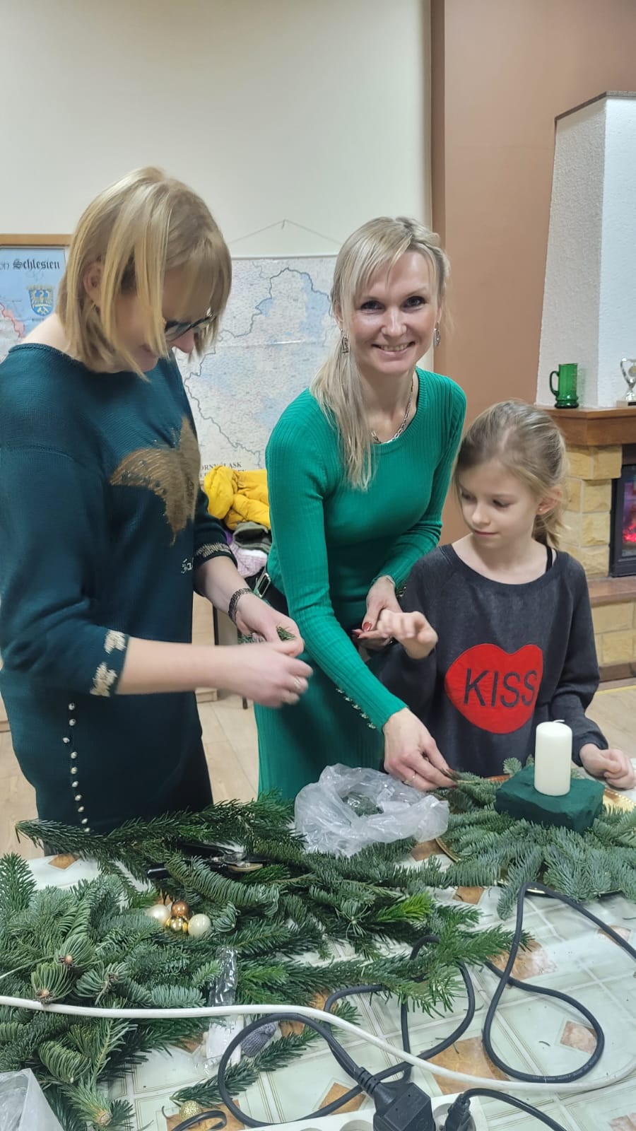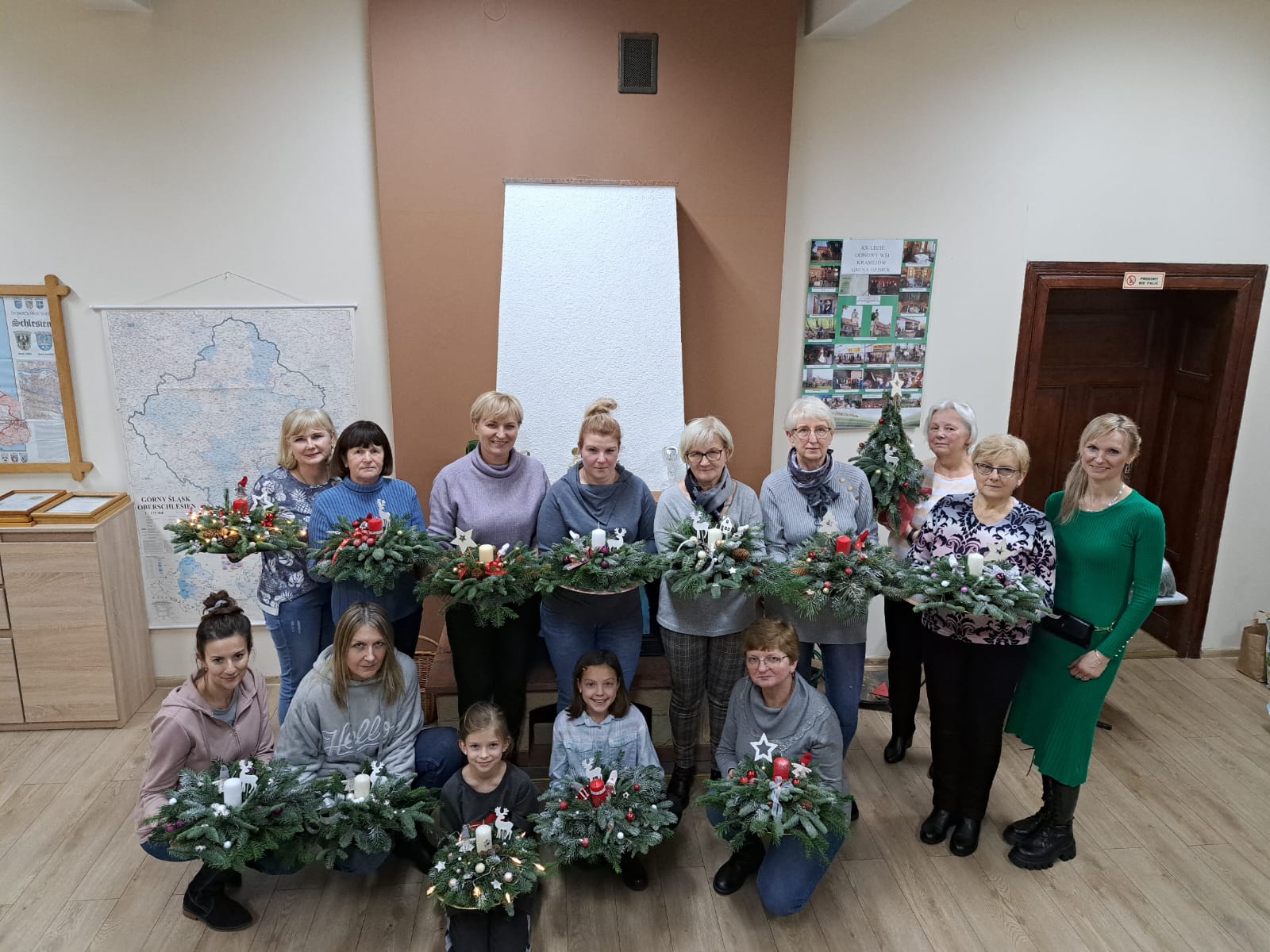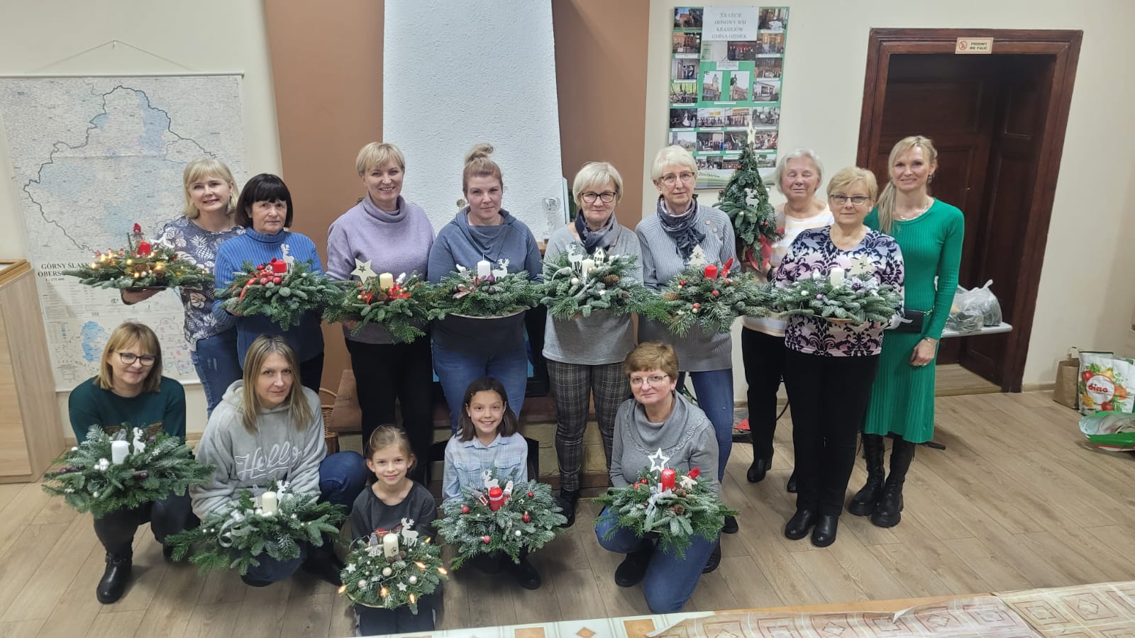 W piątkowy, prawdziwie zimowy wieczór w świetlicy Starej Szkoły spotkała się grupa pań, aby jak co roku spędzić miło i twórczo czas na warsztatach florystycznych poprowadzonych przez Panią Katarzynę Sklorz. Nasze panie są już tak zaawansowane w pracach artystycznych, że niebawem będą mogły otworzyć własne kwiaciarnie:-). W ich rękach powstawały przepięknie wykonane stroiki, a wszystkie można podziwiać w galerii. Sołtys i Rada Sołecka dziękuje Pani Edycie Wer, Irenie Kostka i Ilonie Feliks za pomoc w organizacji warsztatów. Szkoda tylko, że kilka zapisanych na zajęcia pań musiało zrezygnować z powodu choroby. Ale z pewnością wezmą udział w kolejnych wiosennych zajęciach. Warsztaty w całości zostały sfinansowane ze środków funduszu sołeckiego. Uczestniczki dziękują Pani K. Sklorz za cenne rady i poświęcony czas, Panu Piotrowi Szubertowi za rozpalenie ognia w kominku oraz Panu Janowi Bonkowi za ustawienie choinki przed szkołą i stworzenie świątecznej atmosfery.