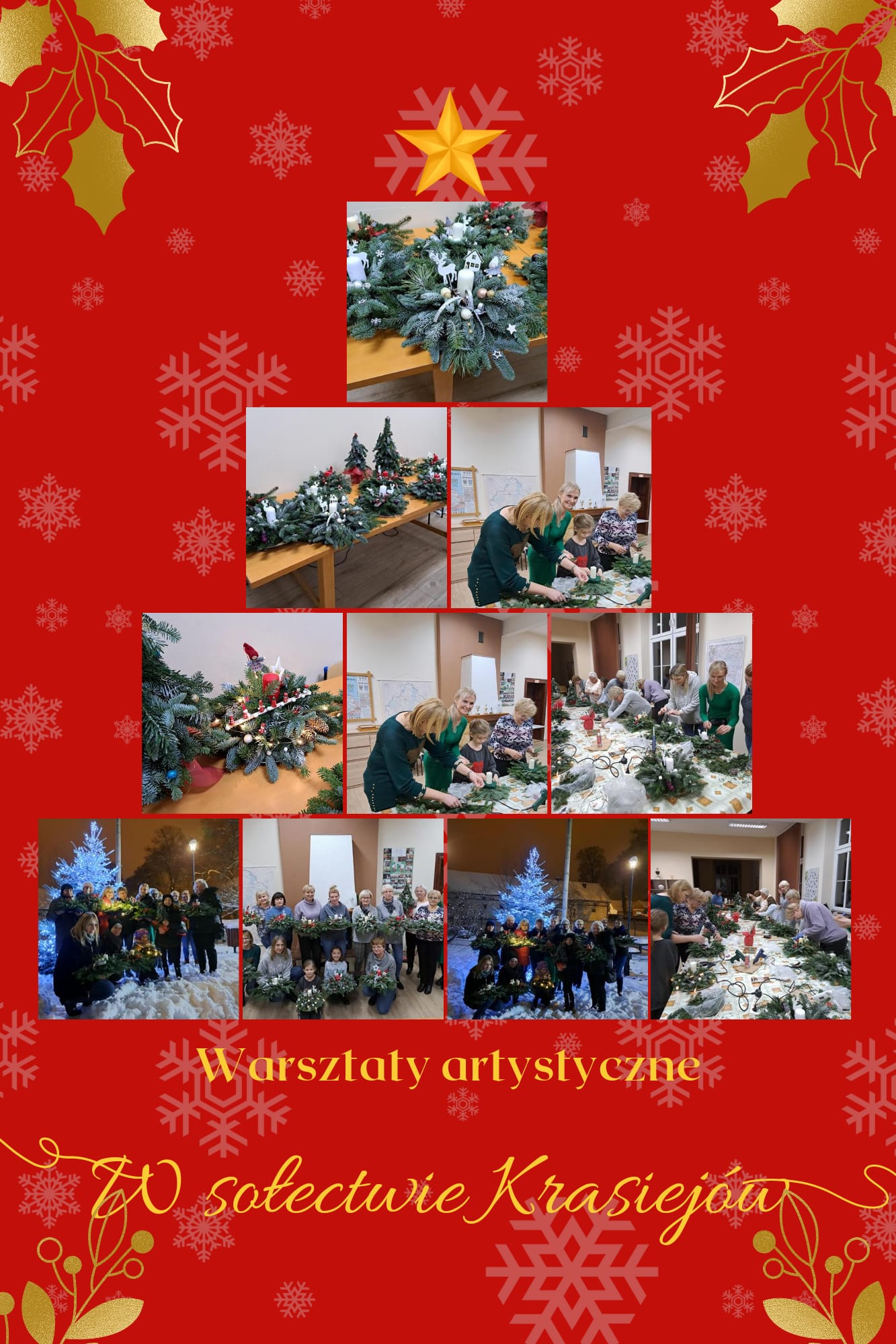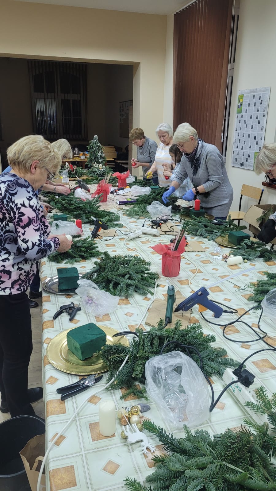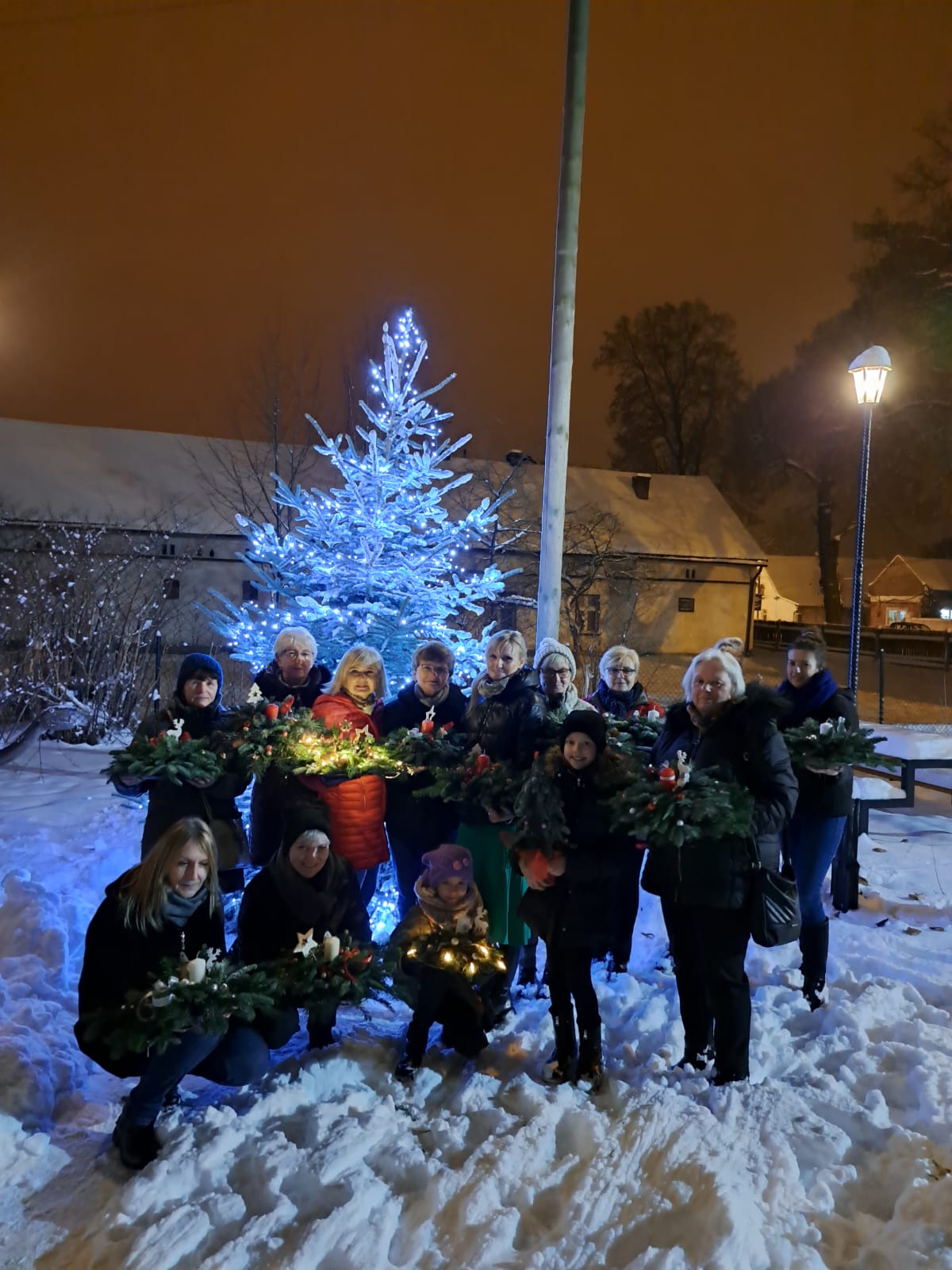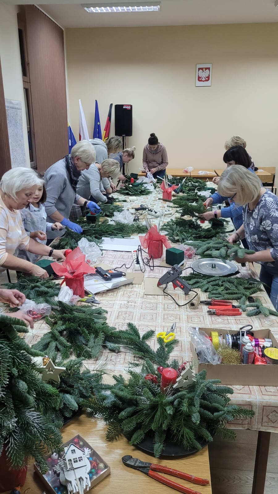 W piątkowy, prawdziwie zimowy wieczór w świetlicy Starej Szkoły spotkała się grupa pań, aby jak co roku spędzić miło i twórczo czas na warsztatach florystycznych poprowadzonych przez Panią Katarzynę Sklorz. Nasze panie są już tak zaawansowane w pracach artystycznych, że niebawem będą mogły otworzyć własne kwiaciarnie:-). W ich rękach powstawały przepięknie wykonane stroiki, a wszystkie można podziwiać w galerii. Sołtys i Rada Sołecka dziękuje Pani Edycie Wer, Irenie Kostka i Ilonie Feliks za pomoc w organizacji warsztatów. Szkoda tylko, że kilka zapisanych na zajęcia pań musiało zrezygnować z powodu choroby. Ale z pewnością wezmą udział w kolejnych wiosennych zajęciach. Warsztaty w całości zostały sfinansowane ze środków funduszu sołeckiego. Uczestniczki dziękują Pani K. Sklorz za cenne rady i poświęcony czas, Panu Piotrowi Szubertowi za rozpalenie ognia w kominku oraz Panu Janowi Bonkowi za ustawienie choinki przed szkołą i stworzenie świątecznej atmosfery.