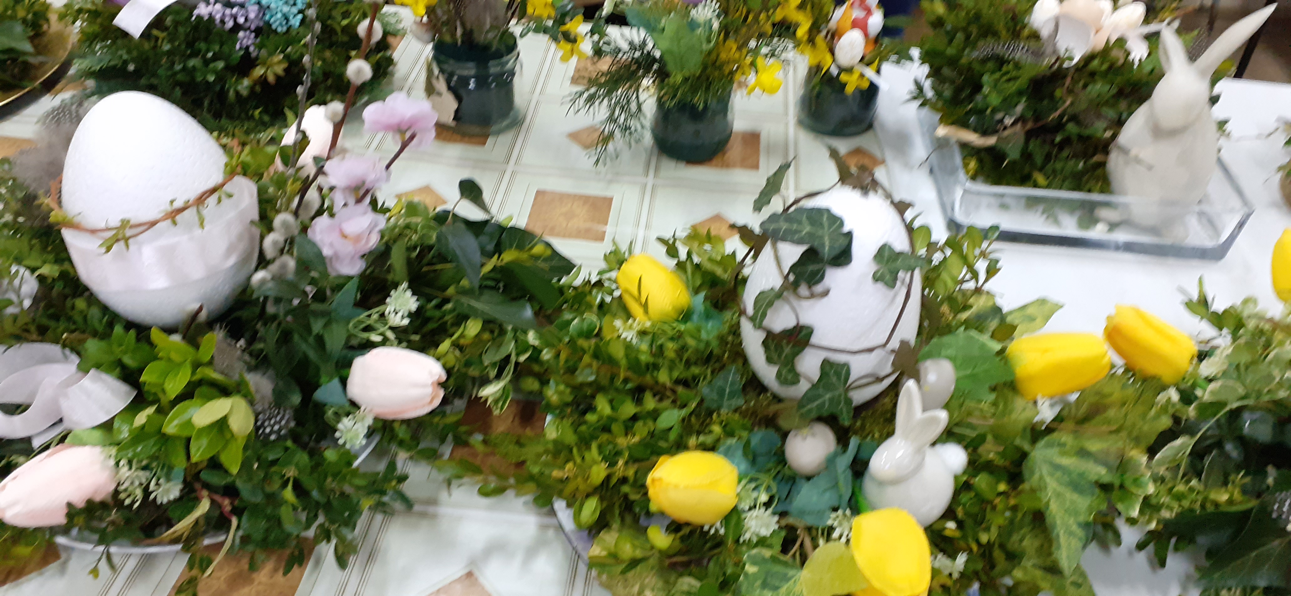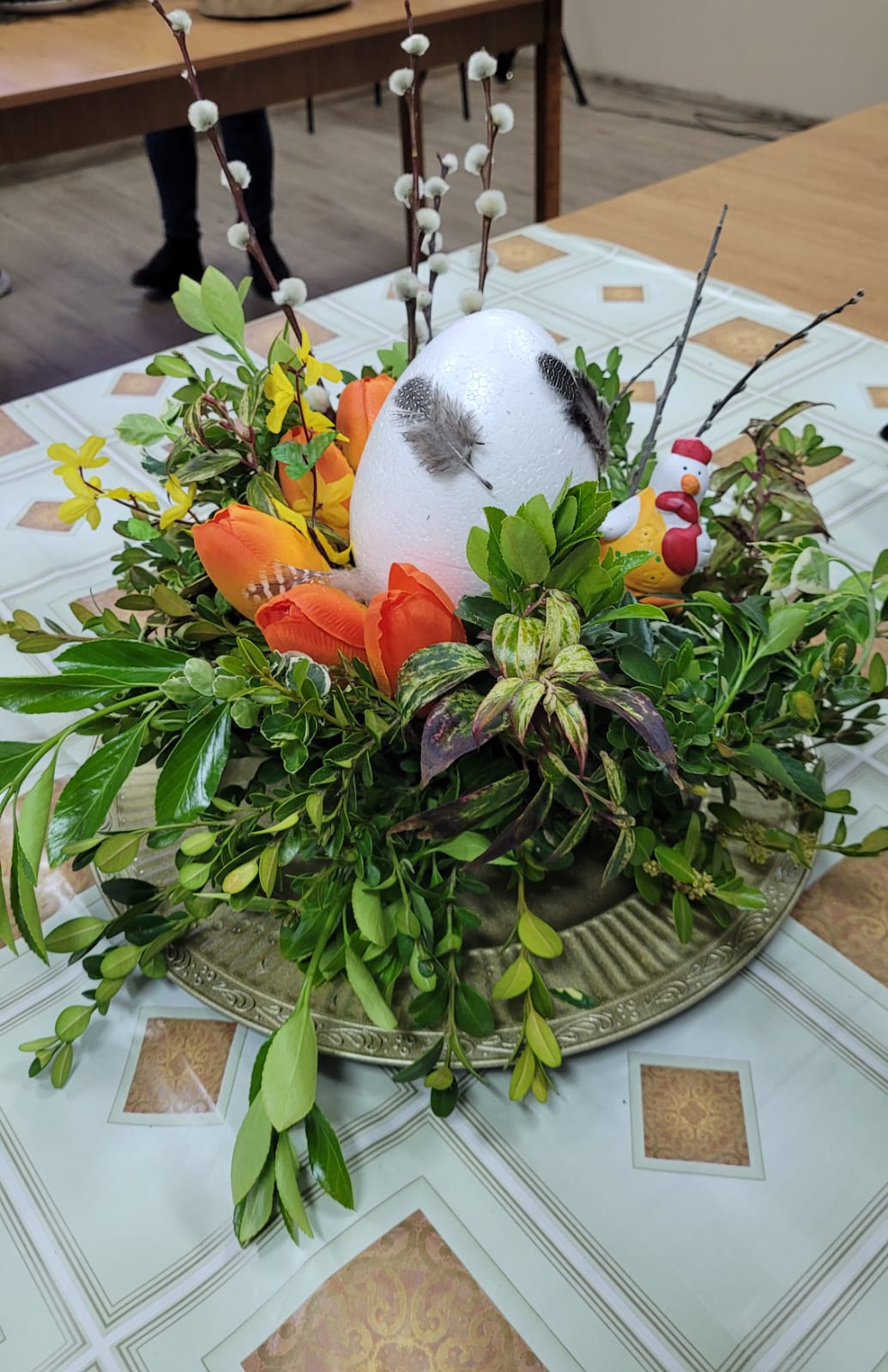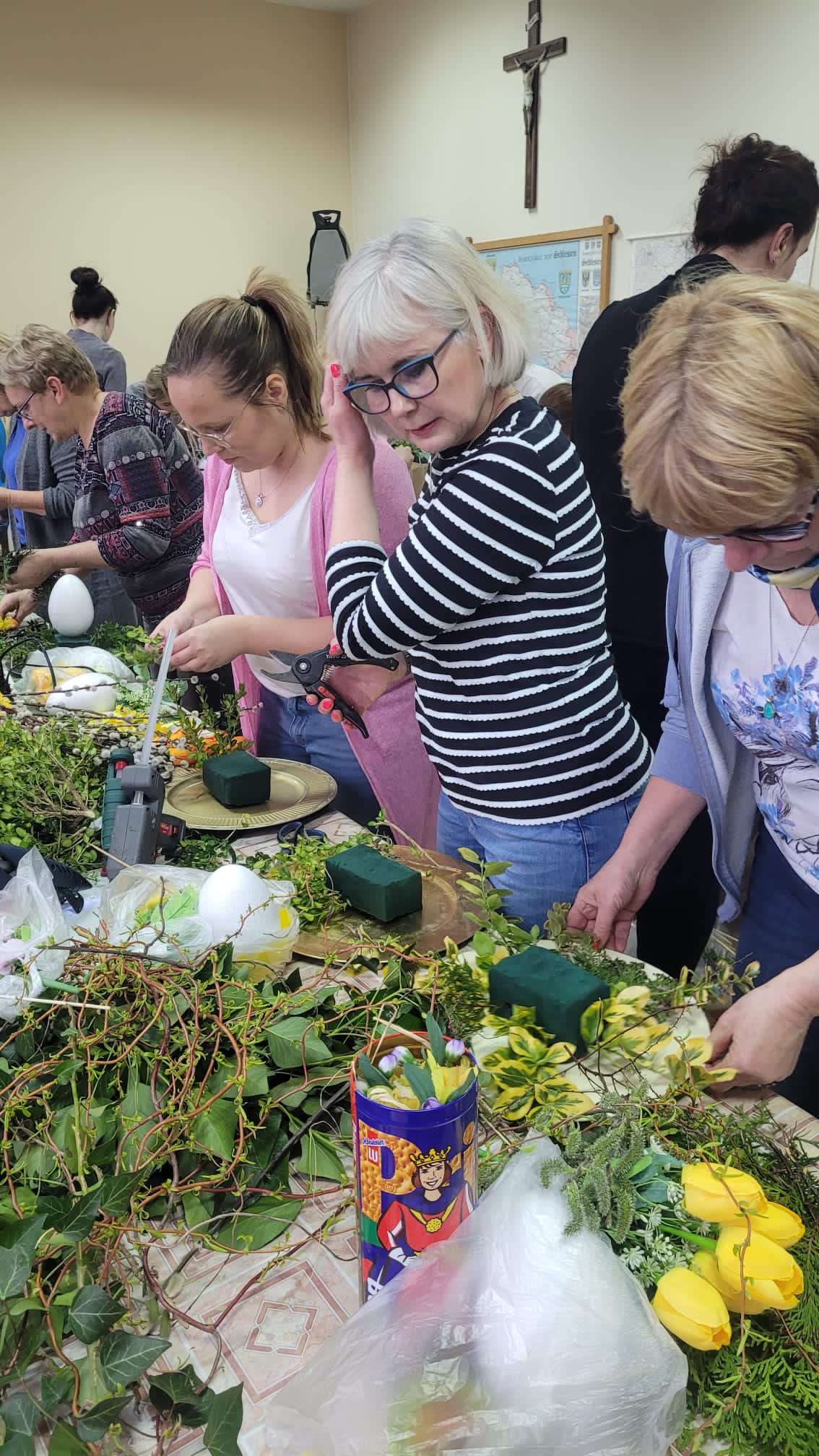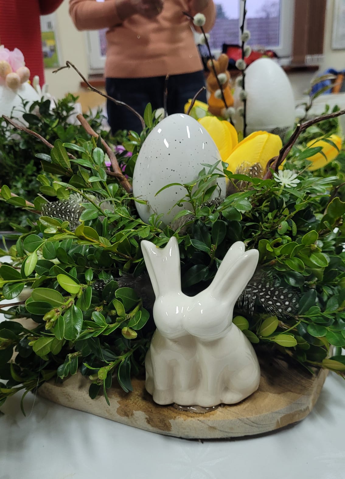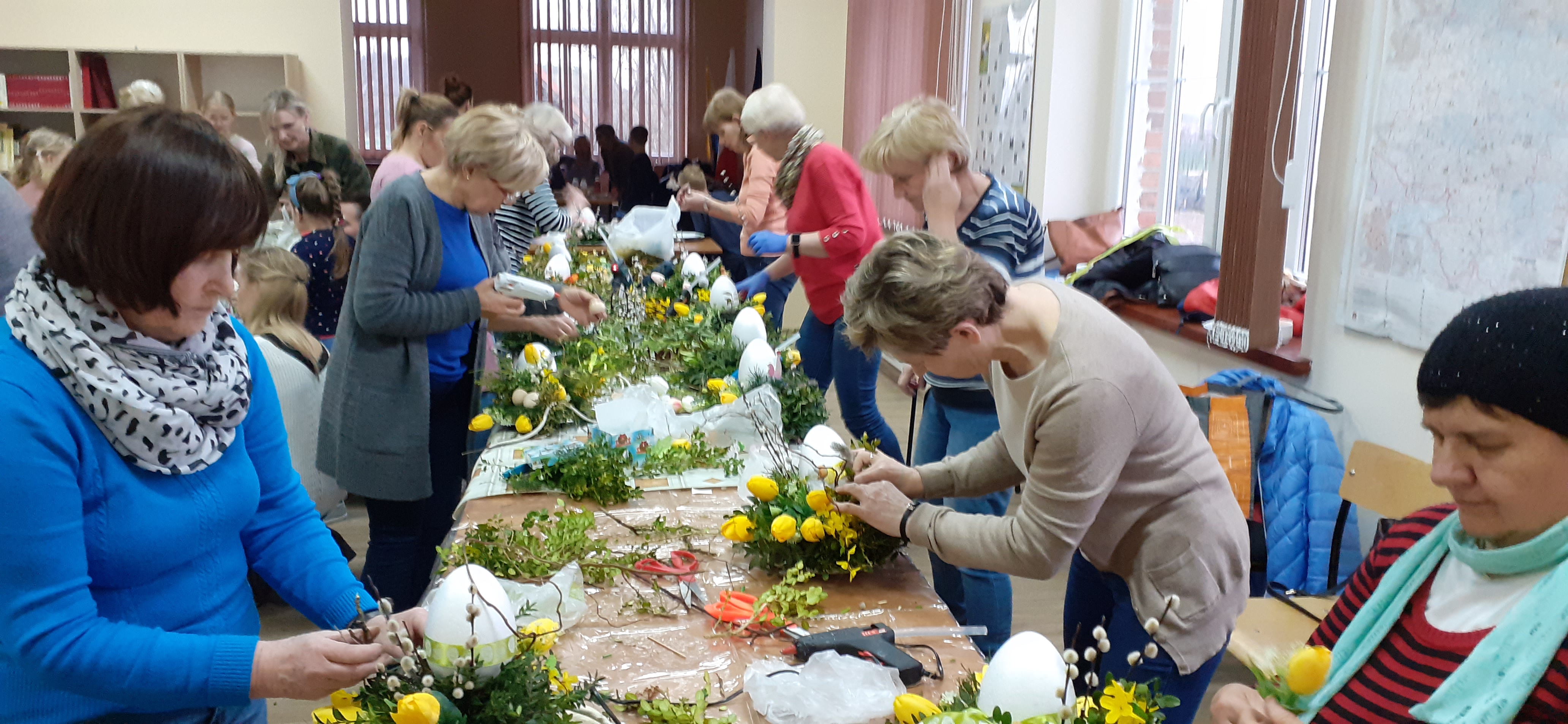 W piątkowy wieczór dn.08.04 w świetlicy Starej Szkoły zebrały się panie i dzieci, aby oddać się twórczym pracom florystycznym pod kierunkiem Katarzyny Sklorz- właścicielki kwiaciarni KatiFlowers. W centralnym miejscu stroików znalazło się duże jajo, wokół którego wiły się zielone gałązki bukszpanu, wierzby, tui lub liście bluszczu. Całość dekorowały zajączki, kwiaty tulipanów, gałązki bazi, wstążeczki i inne ozdoby wg uznania twórczyń. W warsztatach jako obserwator uczestniczyła pracownica UMiG Ozimek. Po pracy na uczestników oczekiwał poczęstunek kawowy przygotowany przez panie Ilonę Feliks i niżej podpisaną. Zajęcia były sfinansowane ze środków funduszu sołeckiego. W warsztatach wzięło udział prawie 30 osób, w tym ośmioro dzieci. Szczególne podziękowania składamy Pani florystce, dzieciom za ich zaangażowanie i mieszkankom wsi za pielęgnowanie tradycji wielkanocnej.