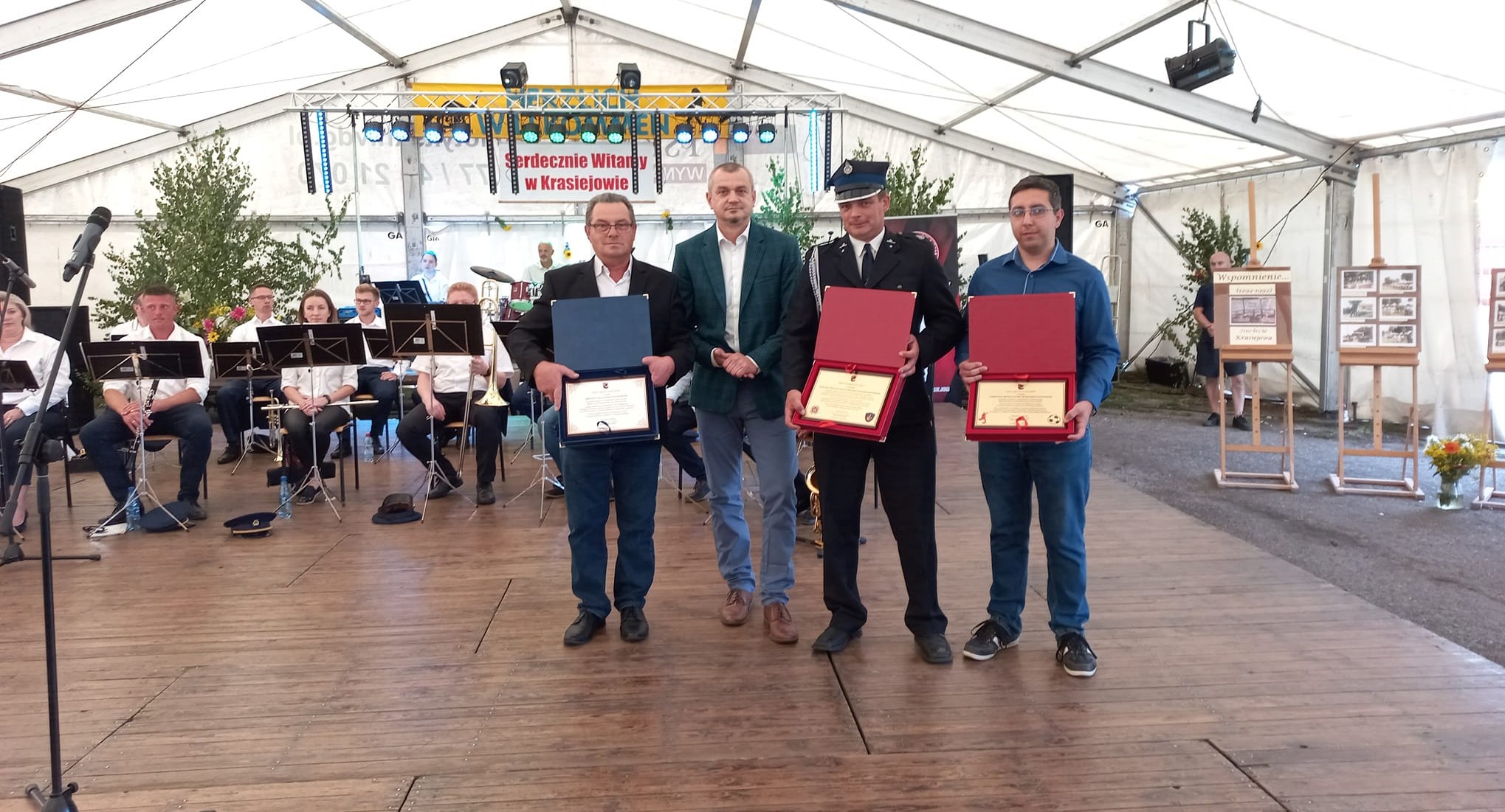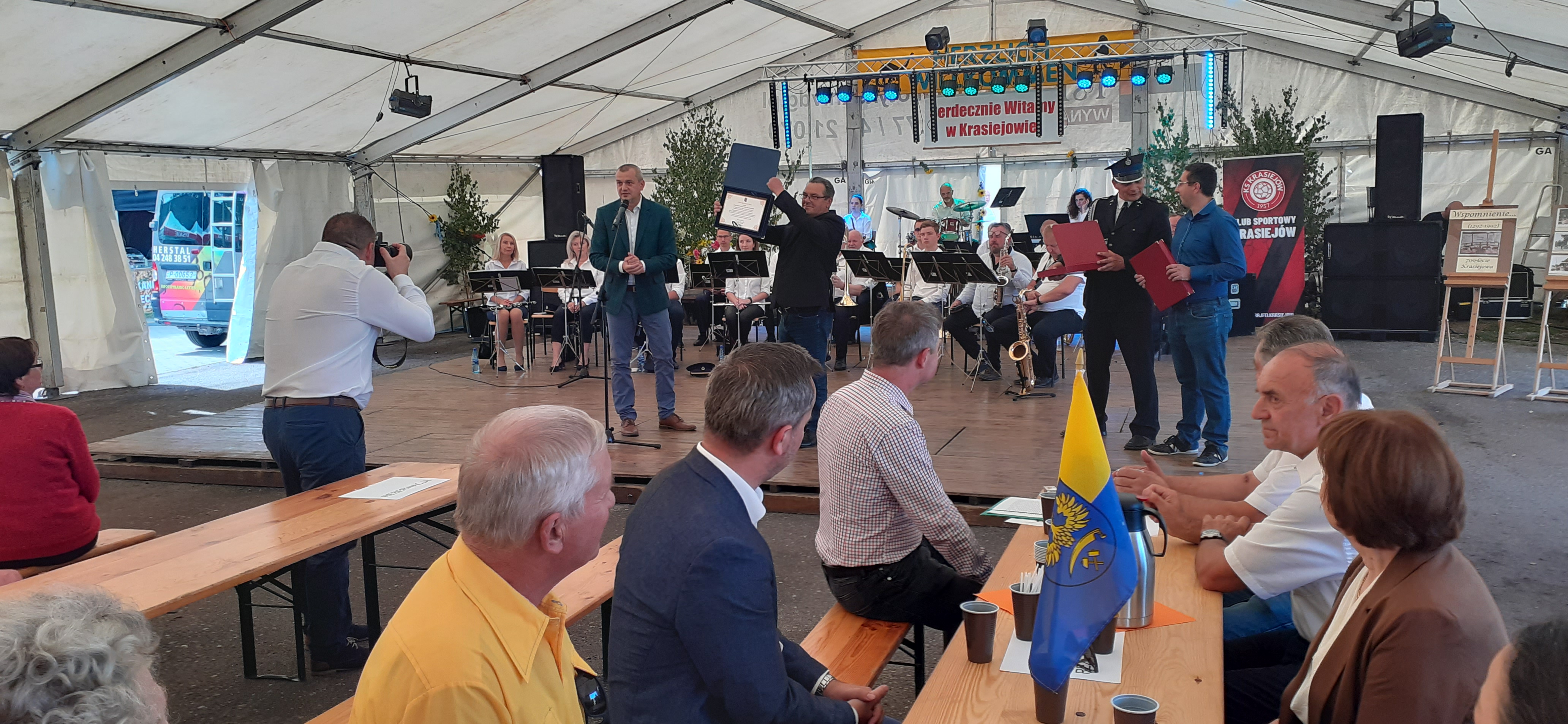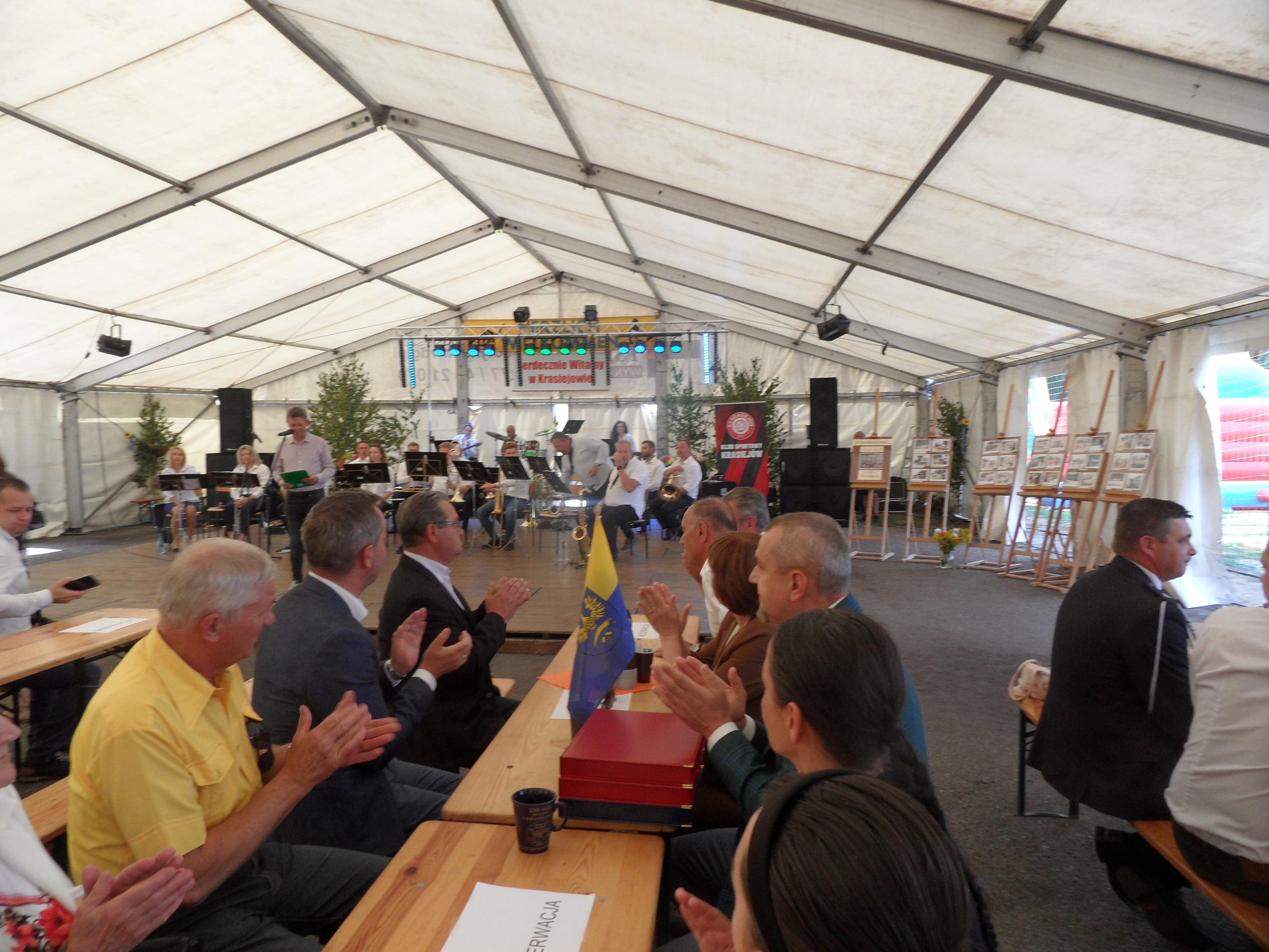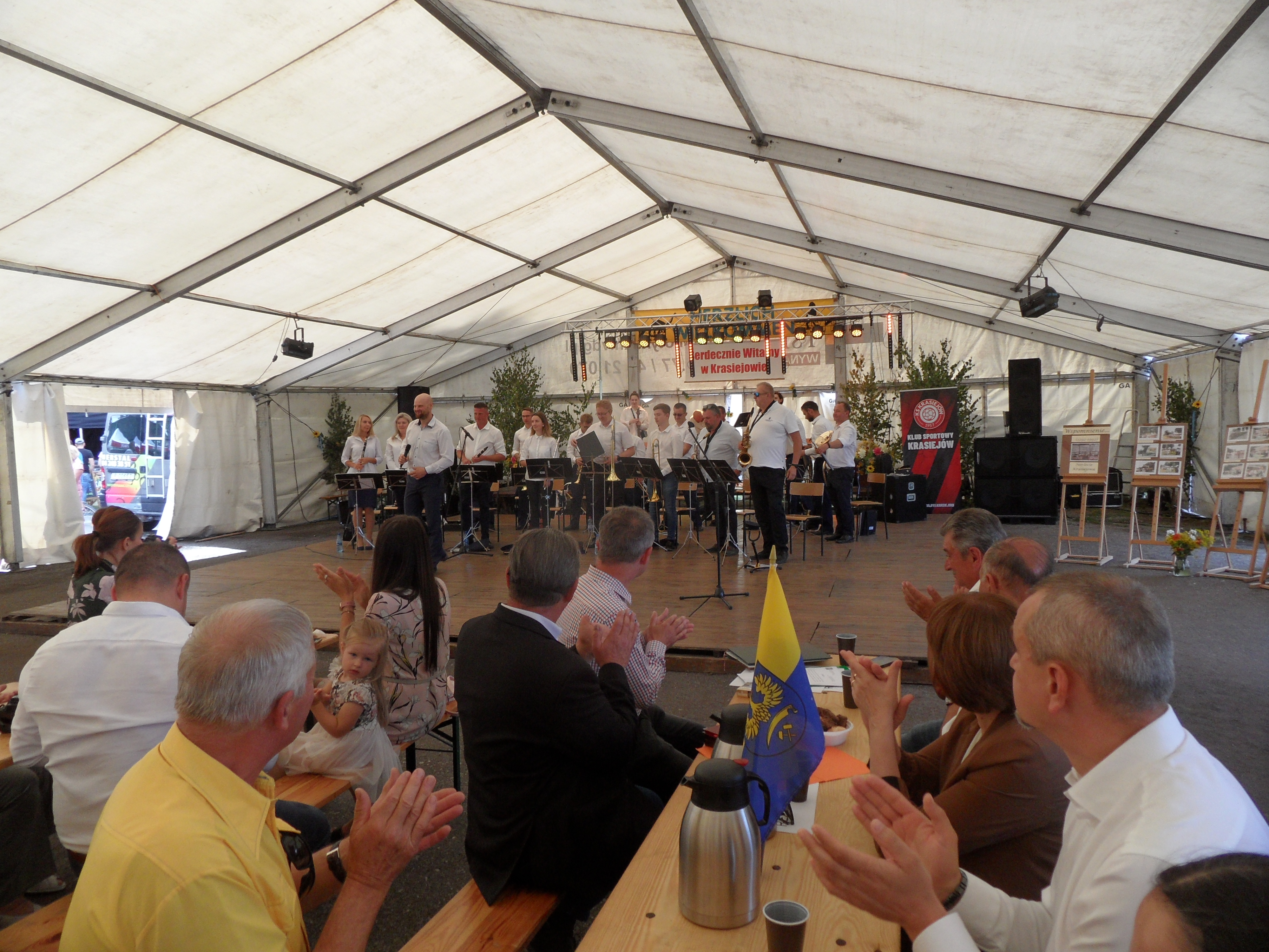 Południowe uroczystości niedzielne rozpoczął przemarsz grupy mieszkańców i zaproszonych gości ulicą Spóracką od centrum na boisko sportowe przy akompaniamencie Orkiestry Dętej z Ozimka. Przybyłych gości i mieszkańców przywitał przewodniczący Rady Sołeckiej Krzysztof Koźlik. Po oficjalnym rozpoczęciu festynu głos zabrali Przewodniczący Sejmiku Województwa Opolskiego Rafał Bartek i Wicestarosta Powiatu Opolskiego Leonarda Płoszaj. Burmistrz Ozimka Mirosław Wieszołek złożył w imieniu własnym oraz całej społeczności Gminy Ozimek na ręce Sołtysa Wsi Krasiejów Tadeusza Markulaka gratulacje z okazji 730-lecia Krasiejowa, na ręce Prezesa Tomasza Chudala gratulacje z okazji 130-lecia OSP Krasiejów oraz na ręce Prezesa Grzegorza Brondra gratulacje z okazji 65-lecia KS Krasiejów. Po wystąpieniach samorządowców swój rewelacyjny występ rozpoczęła Ozimska Orkiestra Dętej, którą dyrygował kapelmistrz Andrzej Wilczyński. Kolejnym punktem programu było nagrodzenie Huberta Kulika i Jana Sklorza tytułem "Zasłużony dla Krasiejowa". Uhonorowani przez wiele lat działali na rzecz sołectwa Krasiejów.