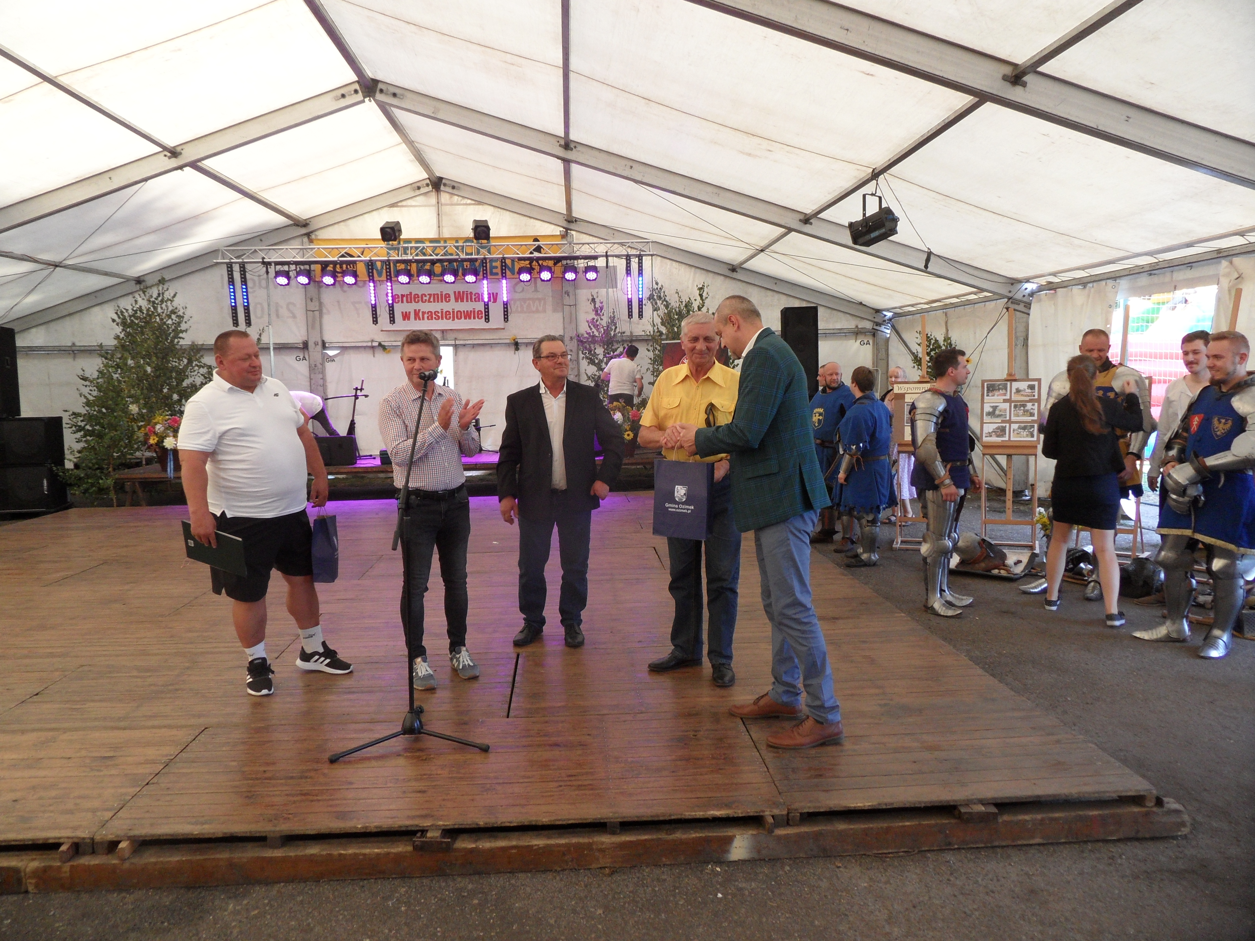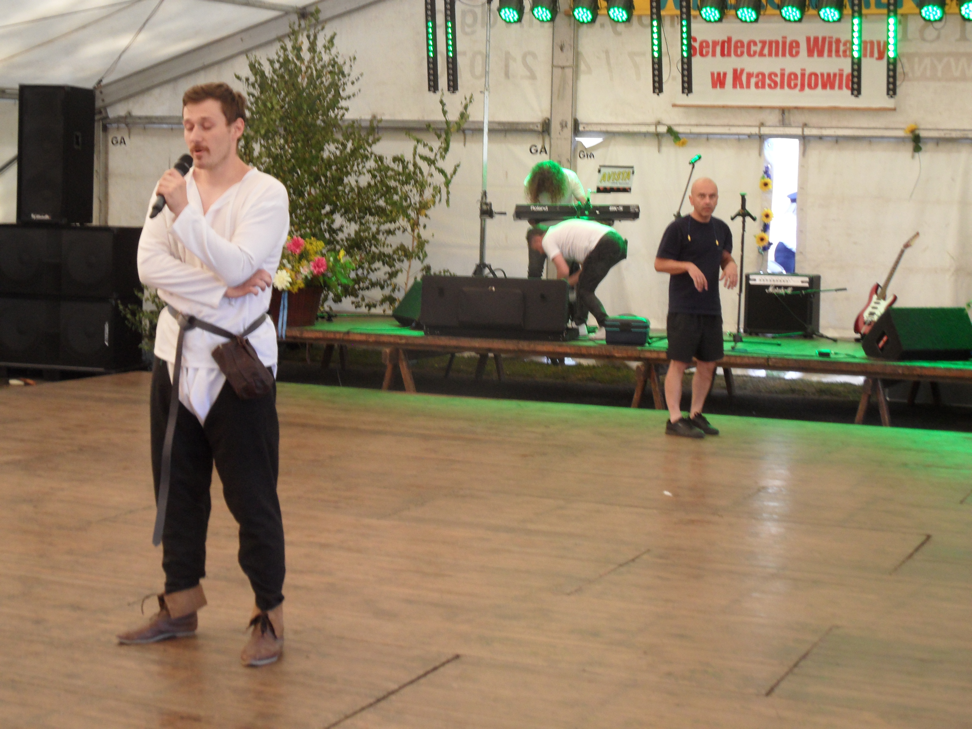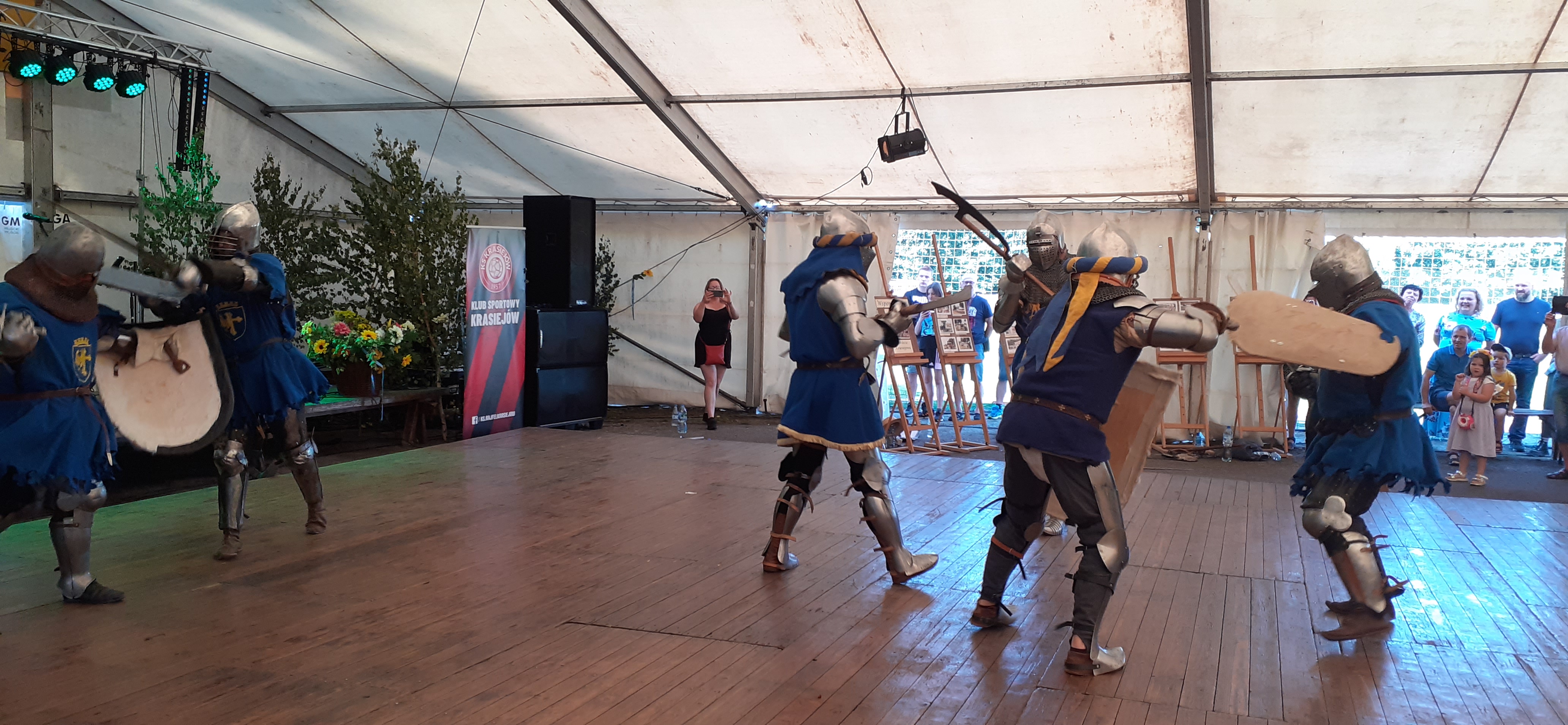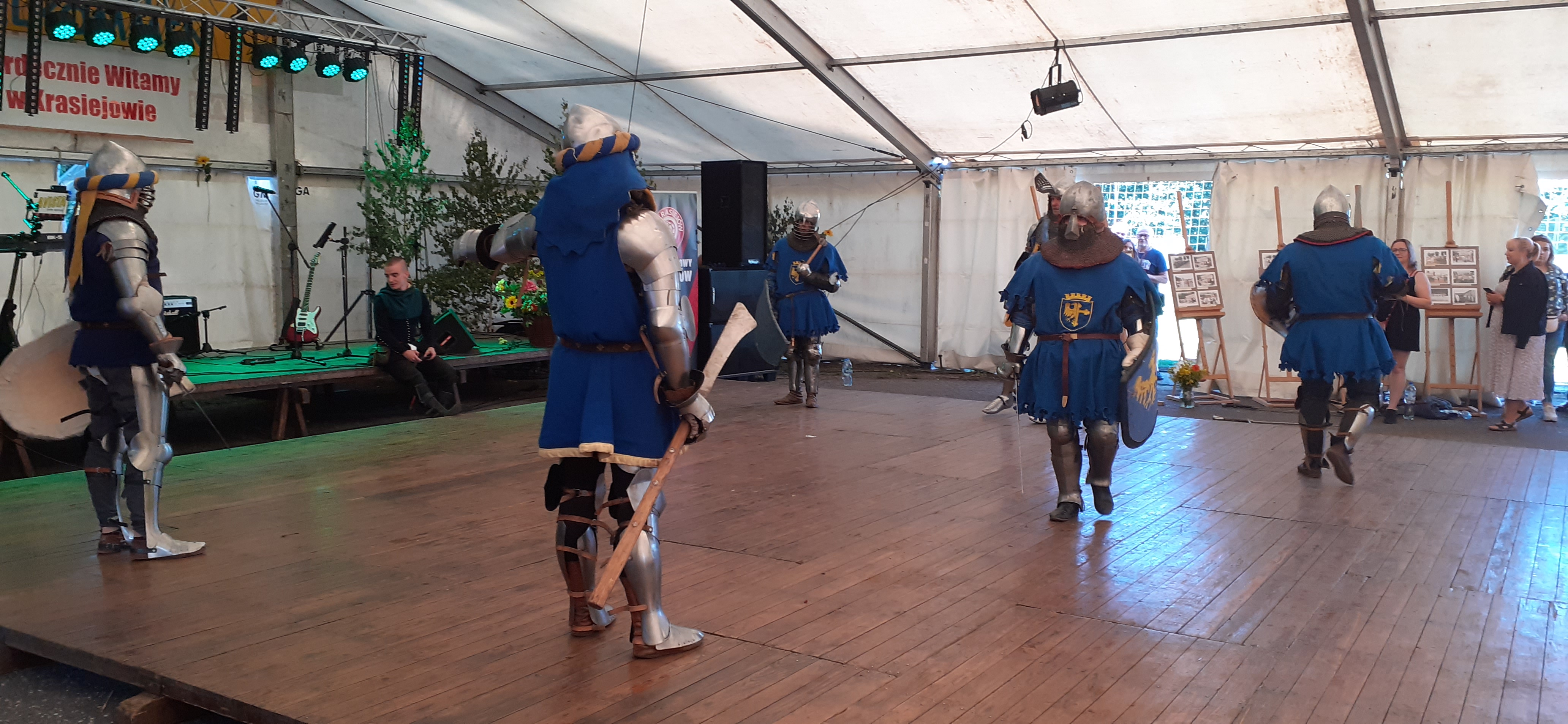 Kolejnymi punktami programu festynowego były ciekawe pokazy walk Bractwa Rycerskiego, ich opowieści o bitwie pod Grunwaldem, o stroju rycerskim, oraz możliwość wspólnego zdjęcia w obozowisku rycerskim. Zebranych oczarowały występy zespołu dziecięcego Akces oraz rewia biesiadna zespołu Avista. Gwiazdą wieczoru była Teresa Waleriańska, której repertuar związany był z muzyką romską. Od późnych godzin wieczornych do północy gości zabawiał zespół Red Angel.