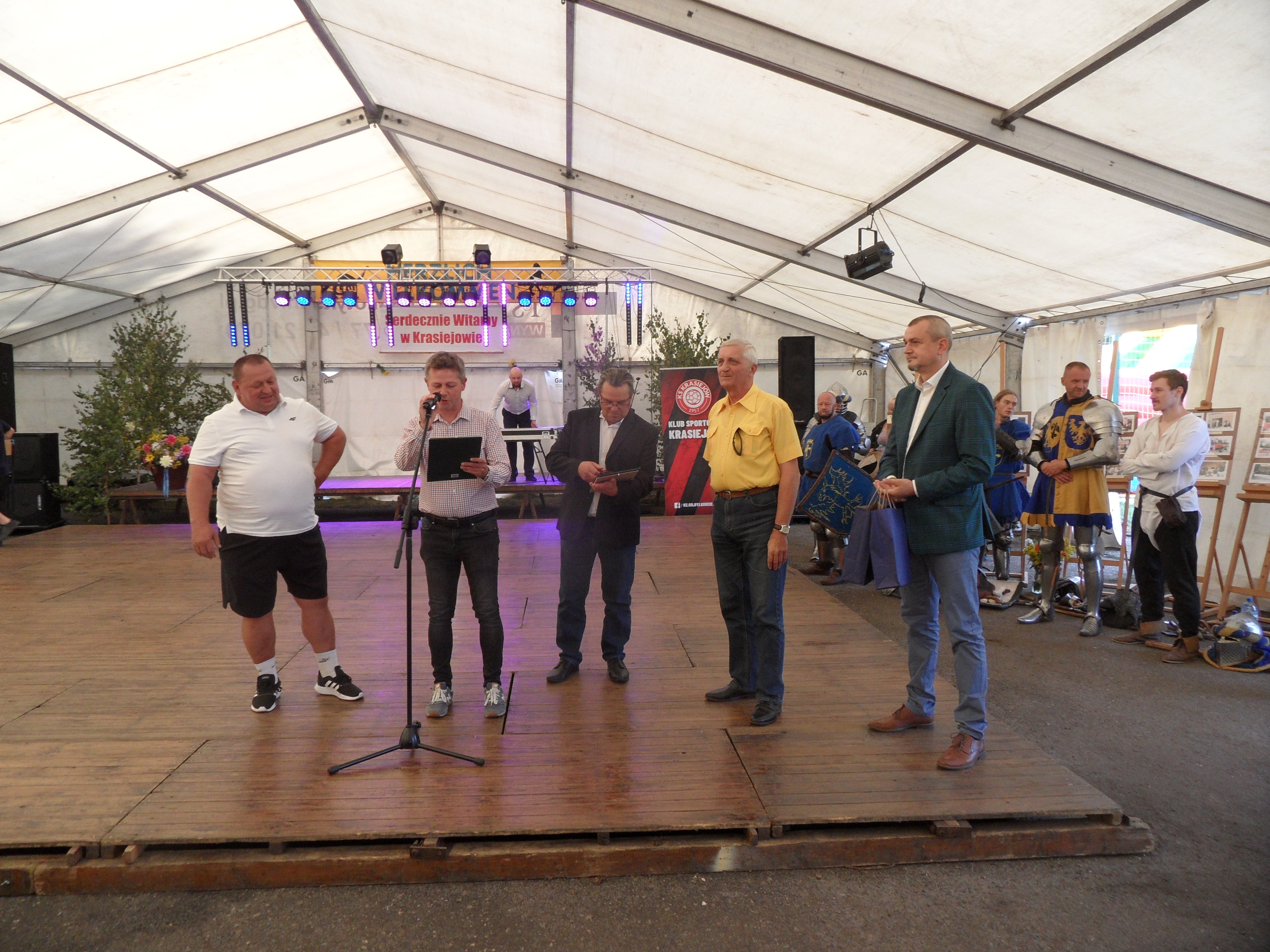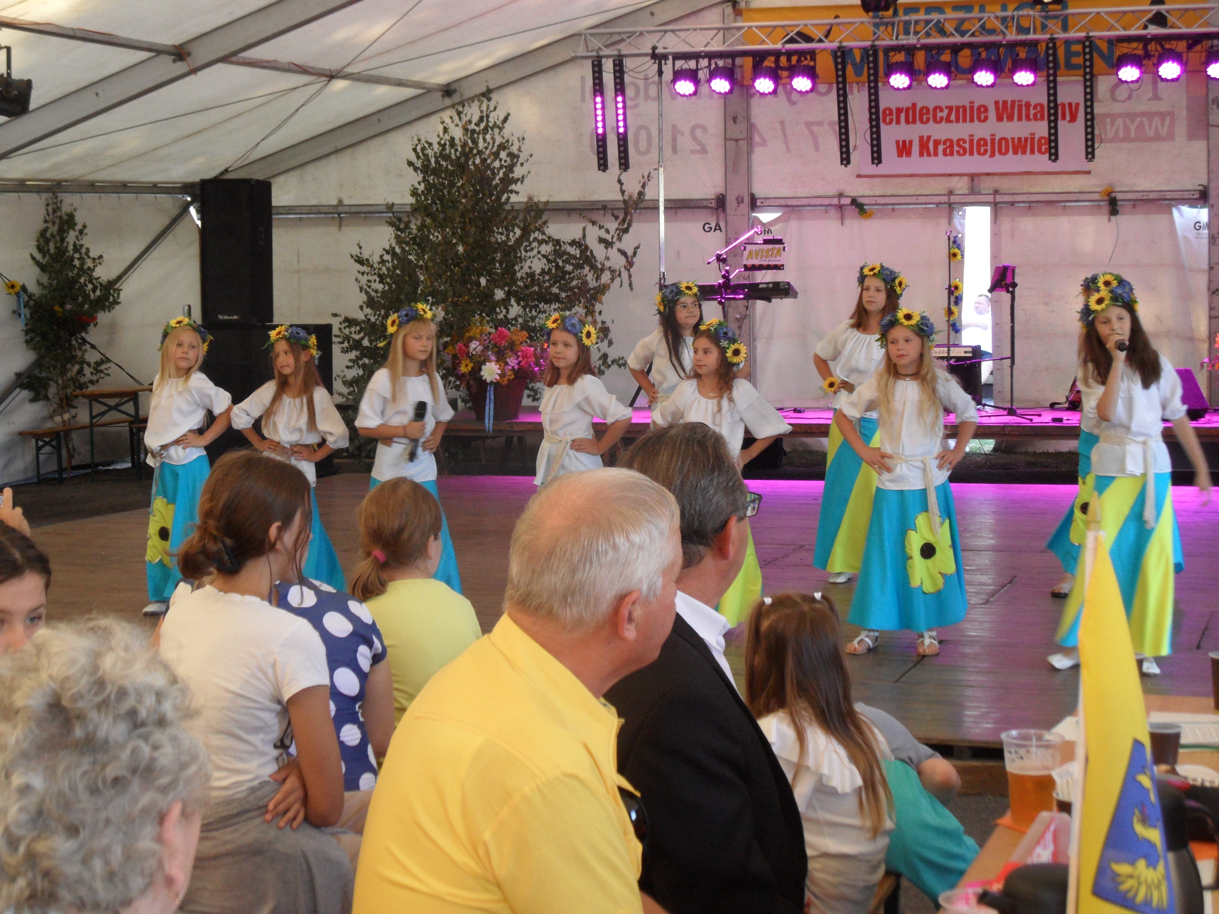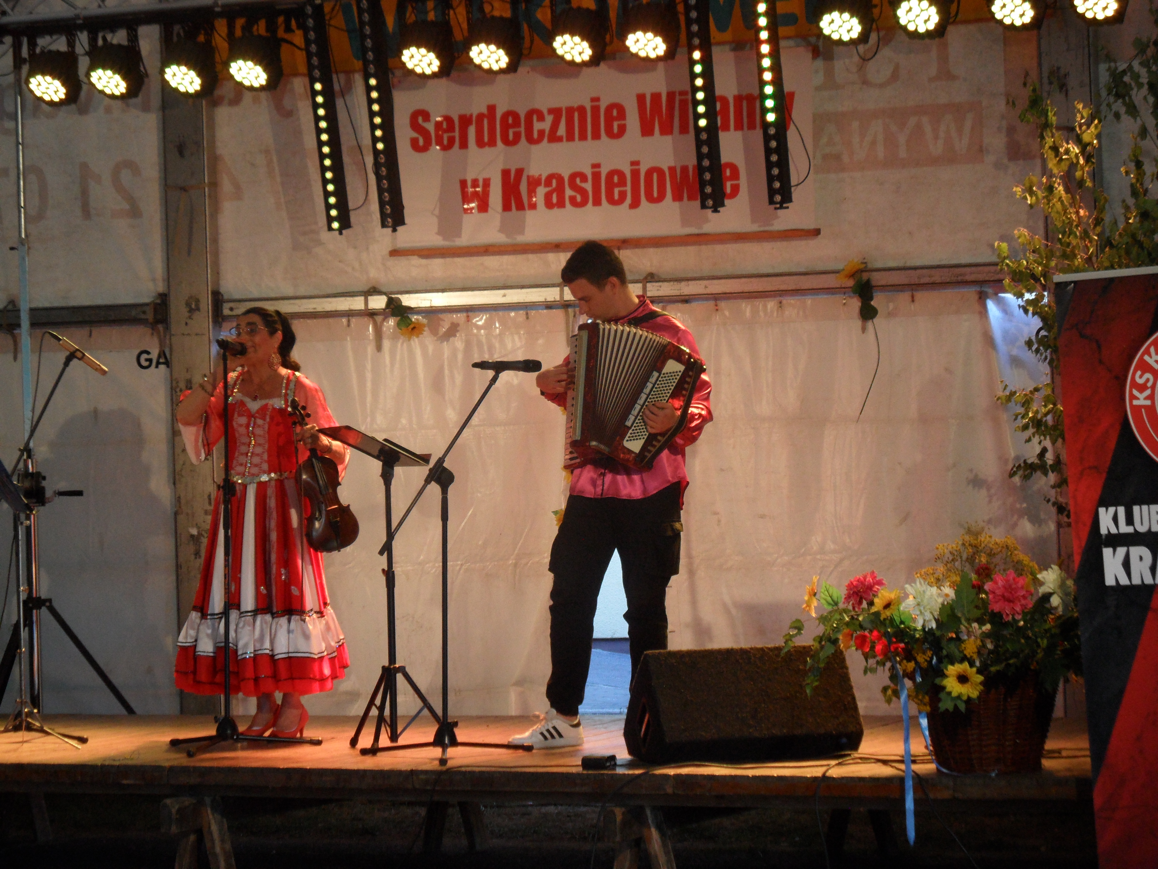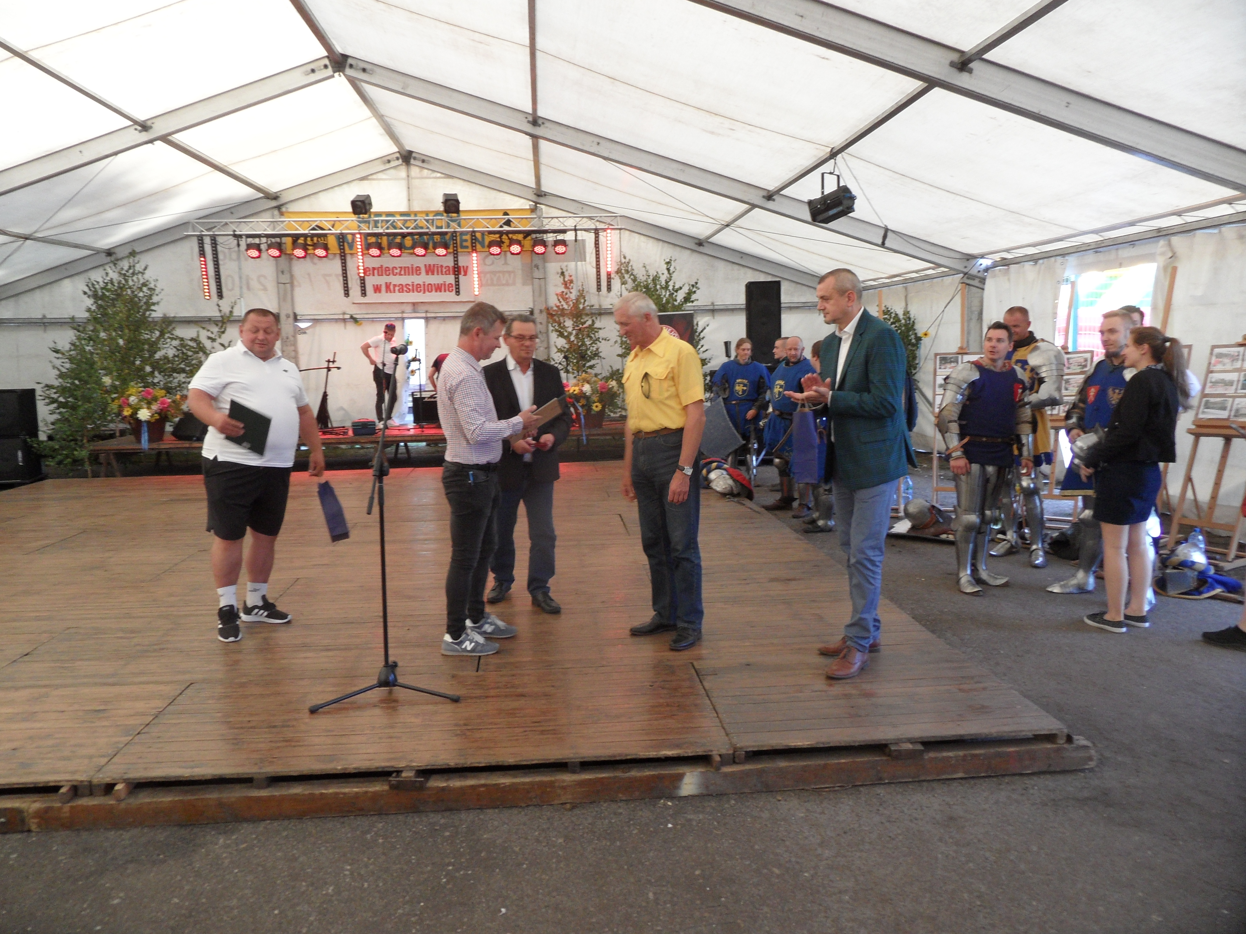 Kolejnymi punktami programu festynowego były ciekawe pokazy walk Bractwa Rycerskiego, ich opowieści o bitwie pod Grunwaldem, o stroju rycerskim, oraz możliwość wspólnego zdjęcia w obozowisku rycerskim. Zebranych oczarowały występy zespołu dziecięcego Akces oraz rewia biesiadna zespołu Avista. Gwiazdą wieczoru była Teresa Waleriańska, której repertuar związany był z muzyką romską. Od późnych godzin wieczornych do północy gości zabawiał zespół Red Angel.