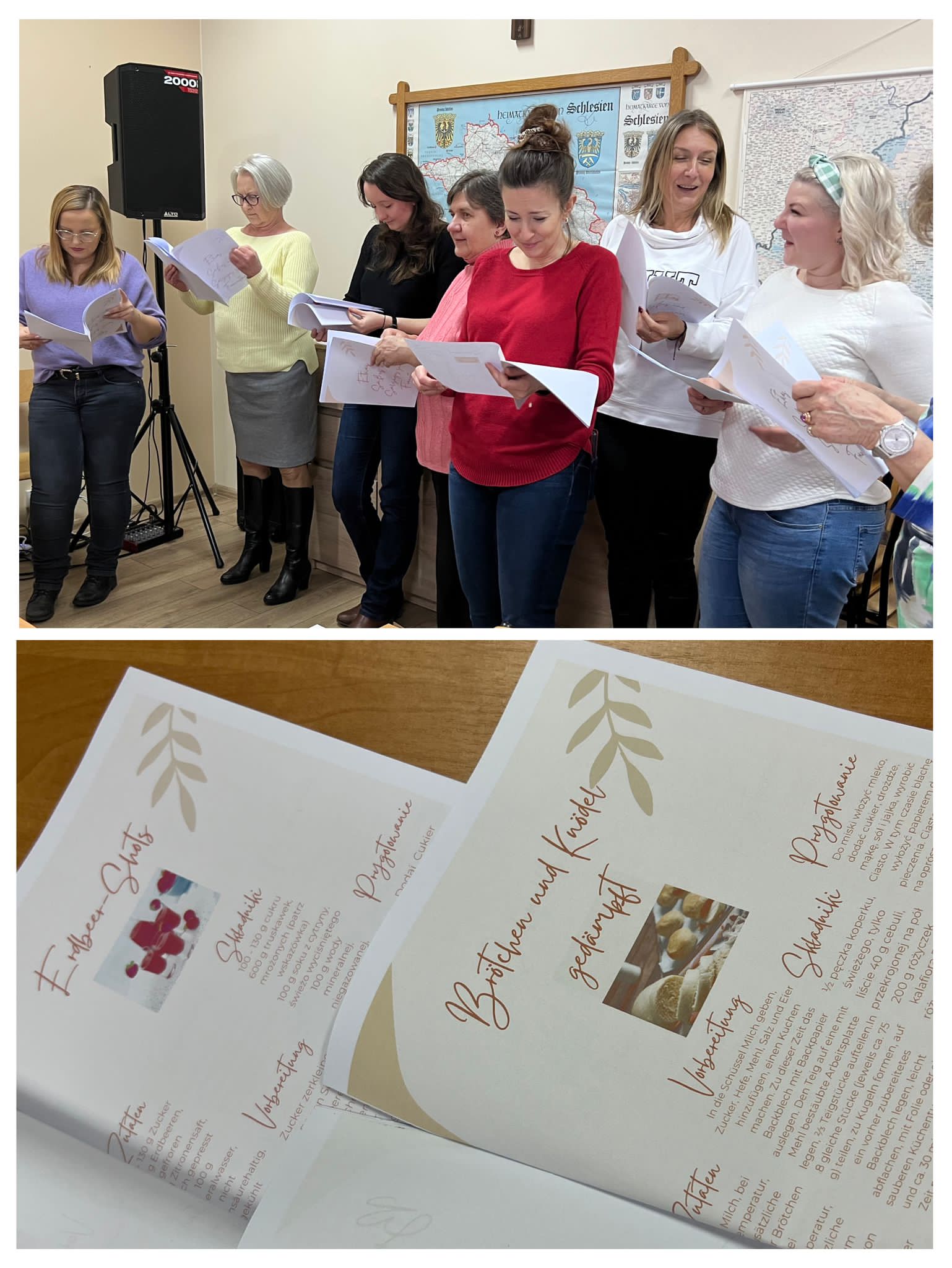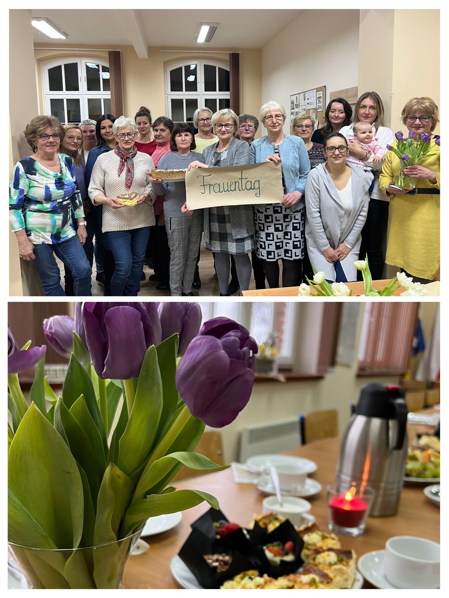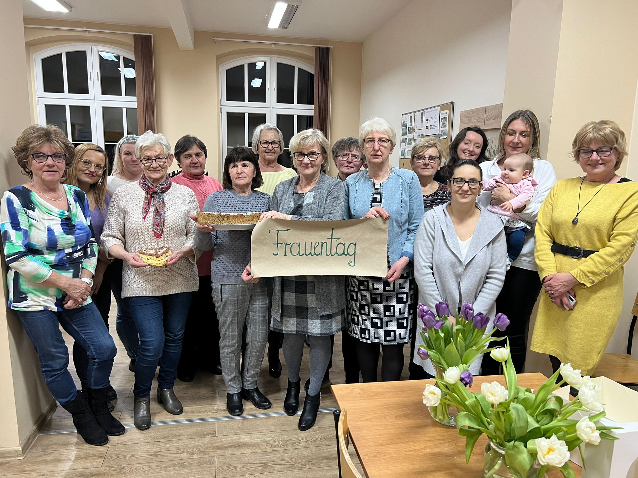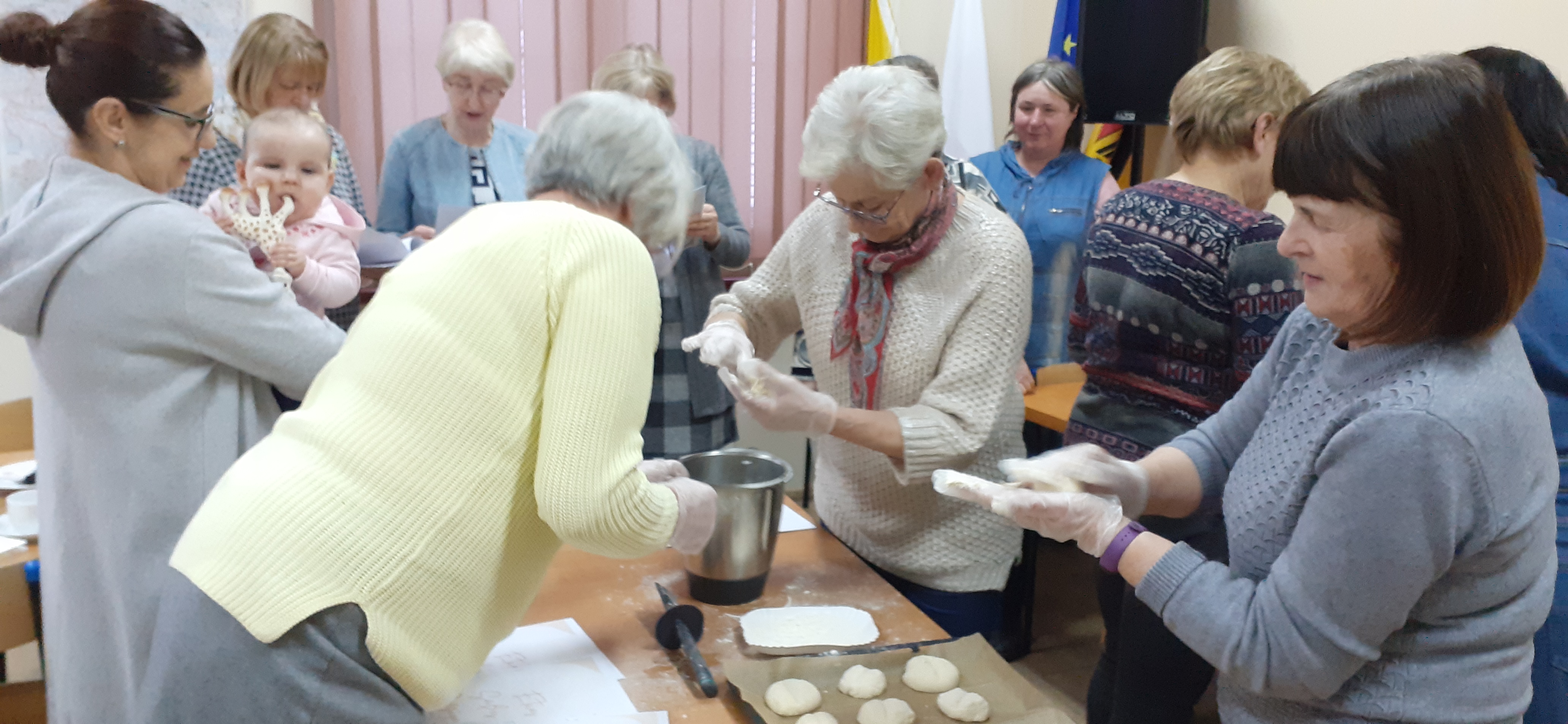 W niedzielne popołudnie 5 marca w świetlicy Starej Szkoły w Krasiejowie odbyły sie warsztaty kulinarne zorganizowane przez LernRaum z okazji Dnia Kobiet. Na wstępie uczestniczki spotkania przywitała Sylwia Widawska- gospodarz wydarzenia oraz Pani Karina Piontek- przedstawicielka LernRaum'u. Panie, które przybyły na zajęcia nie spodziewały się tylu atrakcyjnych niespodzianek. Spotkanie zaczęło się od wspólnych rozmów integracyjnych przy kawie i cieście, przygotowanych przez panie Karinę i Beatę. A potem już tylko się działo- sprawnie, efektownie i smacznie. Planując przygotowanie potraw Pani Beata Kaczmarzyk musiała uwzględnić fakt, że świetlica wiejska nie dysponuje piekarnikiem. Ale udało się! Podzieleni losowo na grupy mieliśmy do wykonania różne zadania. Jedna z pań zajęła się przygotowaniem ciasta na bułki, inna- na zdrowy chleb z ziarnami, kolejna pani przygotowała shaker truskawkowy. Potem przyszła kolej na pastę z kalafiora i brokuła, suszonych pomidorów i słonecznika oraz gulasz mięsny. Do przygotowania tych potraw wykorzystaliśmy wielofunkcyjne urządzenie kuchenne jakim jest termomix. Przepisy zamieszczone były w specjalnie wydajnej na tę okazję karcie dań. Prowadząca objaśniała i wydawała polecenia w języku polskim i niemieckim, którym sprawnie się posługiwała. Na zakończenie wszystkie panie przygotowały sobie mały torcik w kształcie serca oraz tarty owocowe, które mogły zabrać ze sobą, aby poczęstować nimi domowników. Zajęcia kulinarne trwały cztery godziny, a smaczny gulasz z upieczonym poza świetlicą chlebem był daniem finalnym. Jesteśmy pełni podziwu dla Pani Beaty Kaczmarzyk za przygotowanie produktów do tak bogatej karty dań dla prawie dwudziestu osób i znajomość tajników kulinarnych. W międzyczasie Sylwia Widawska krótko przedstawiła uczestniczkom historię Dnia Kobiet, który sięga roku 1909 i ma swoje korzenie w Ameryce Północnej, a w Europie najwcześniej był celebrowany od 1910r. w Niemczech, Danii, Austrii i Szwajcarii. Najmłodszą uczestniczką zajęć była roczna Zosia, która przez cały czas z zainteresowaniem przyglądała się czynnościom kulinarnym mamy i babci. Edukacyjne zajęcia miały na celu kultywowanie tradycji, pielęgnowanie i naukę języka niemieckiego oraz ożywienie domów spotkań członków DFK. Były okazją do wspólnie, mile i nietypowo spędzonego Dnia Kobiet. Podziękowania kierujemy do Pani Kariny Piontek (już w listopadzie spędziłyśmy z Nią czas na zajęciach z plecenia makramy), Jej córki- za okazaną pomoc i Pani Beaty Kaczmarzyk, autorki wspaniałego pokazu kulinarnego. (S. Wid.)