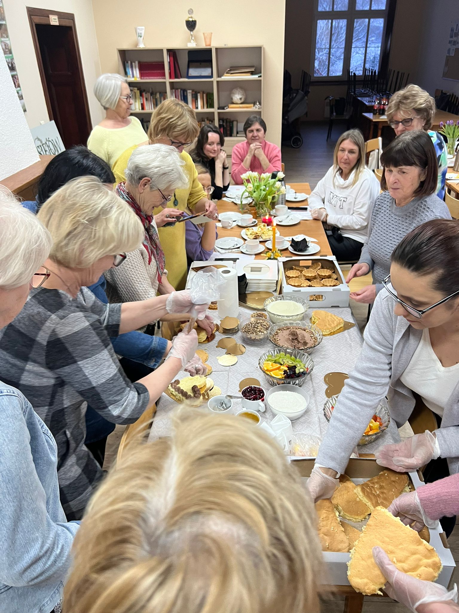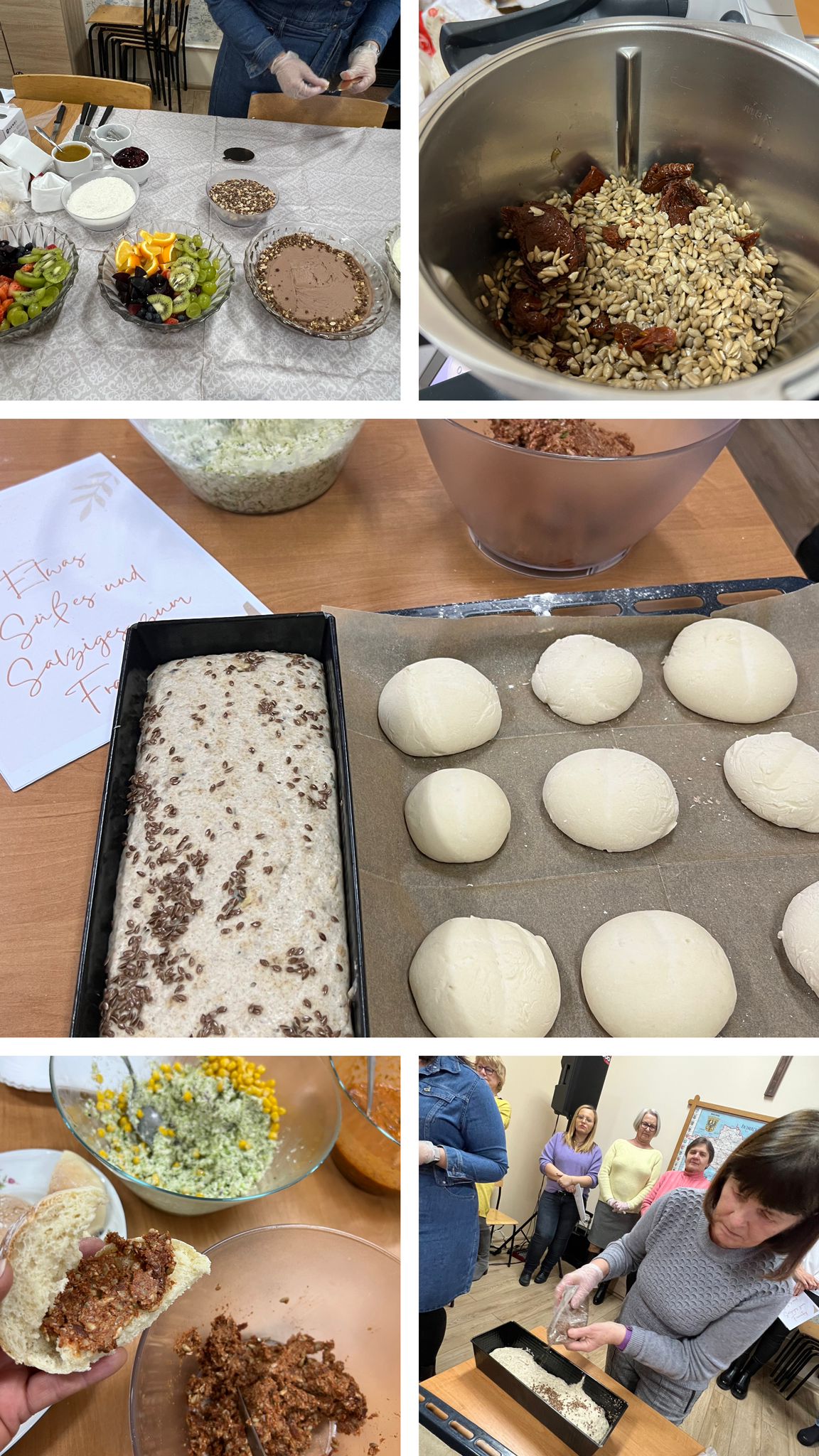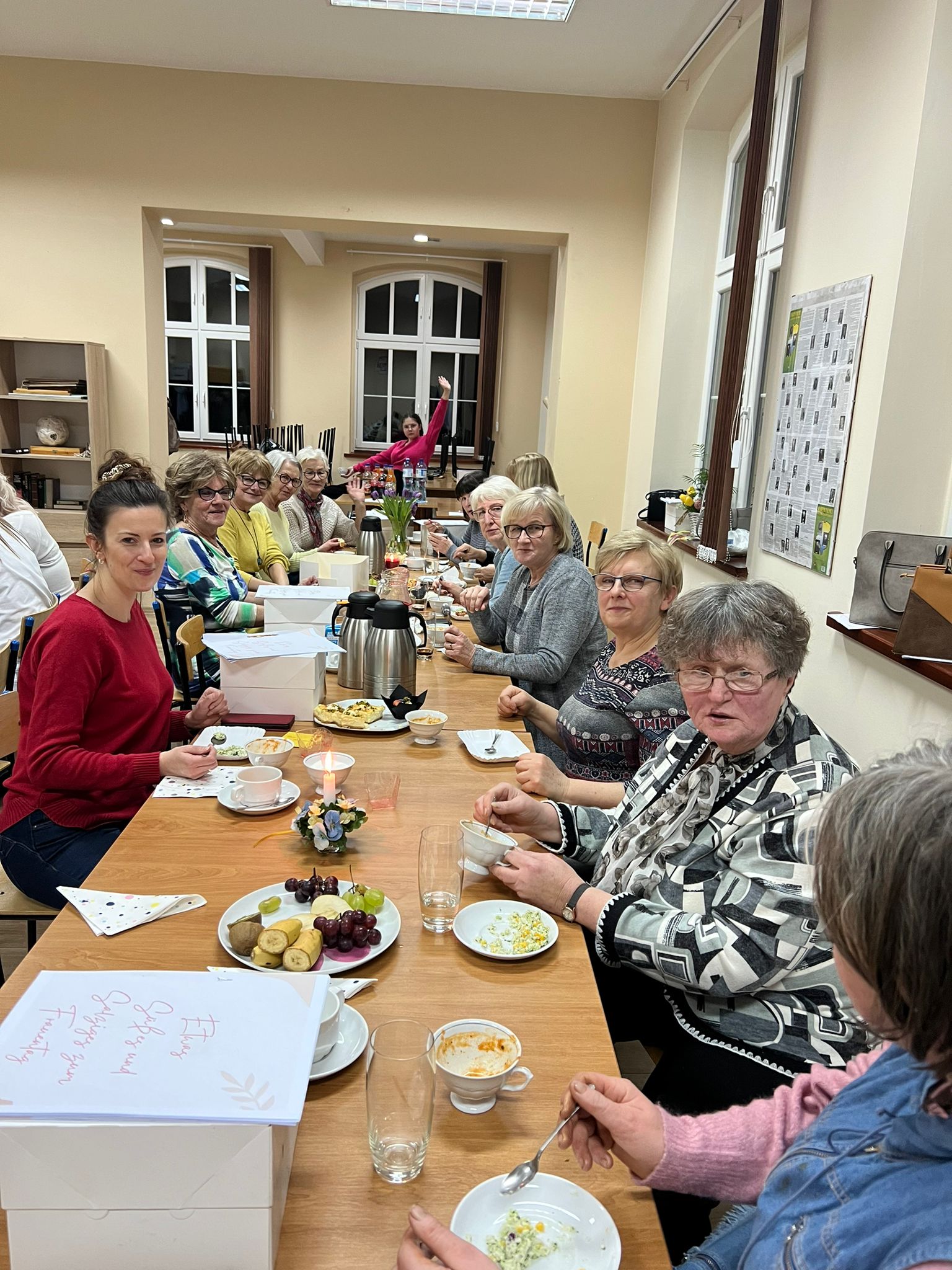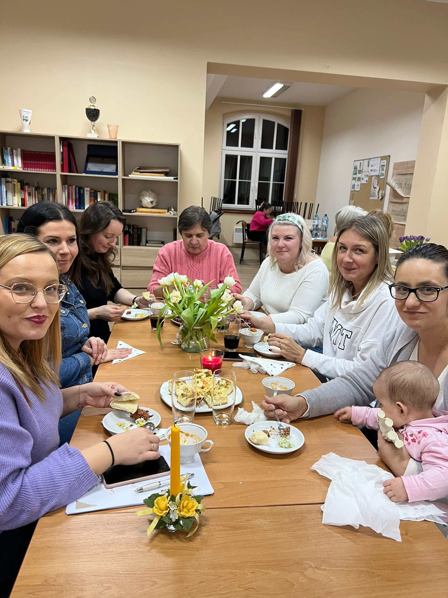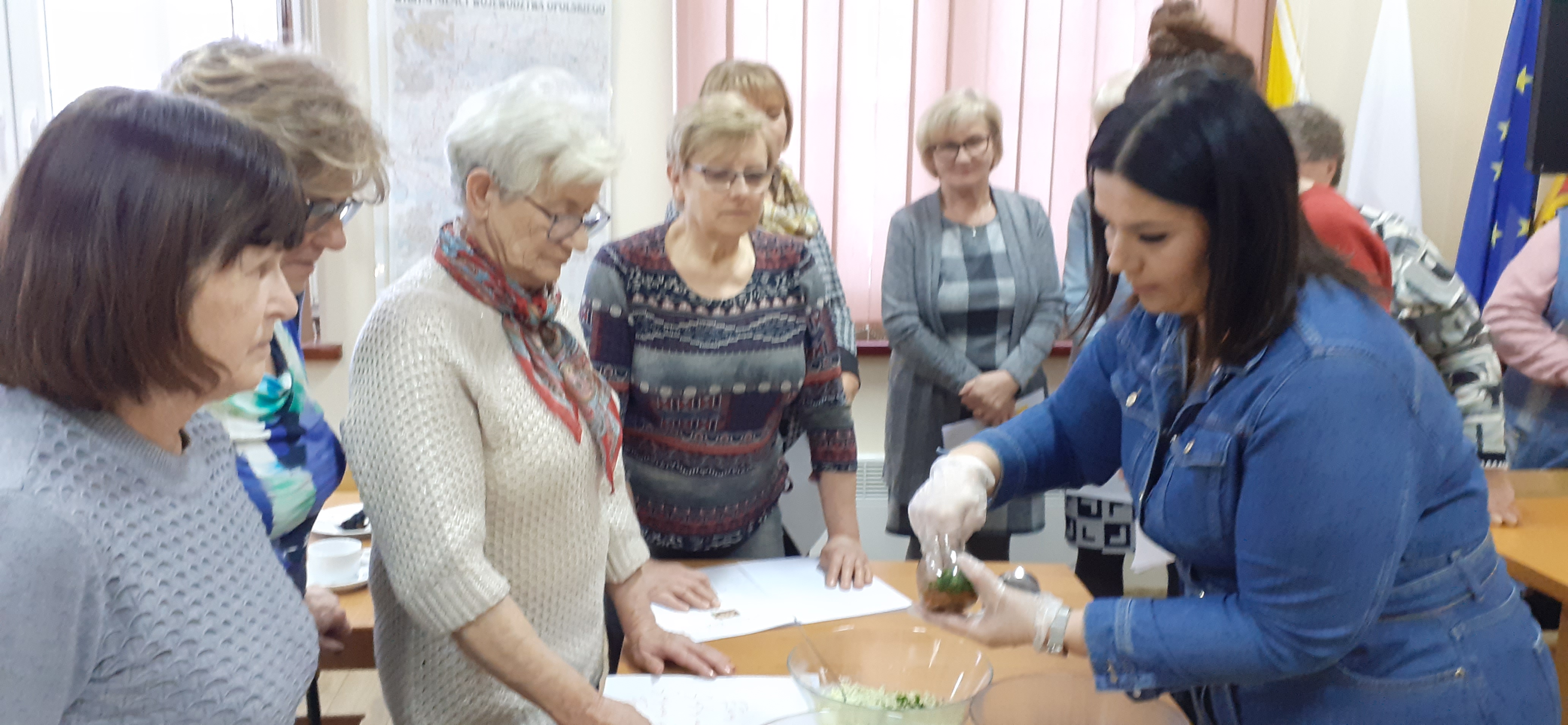 W niedzielne popołudnie 5 marca w świetlicy Starej Szkoły w Krasiejowie odbyły sie warsztaty kulinarne zorganizowane przez LernRaum z okazji Dnia Kobiet. Na wstępie uczestniczki spotkania przywitała Sylwia Widawska- gospodarz wydarzenia oraz Pani Karina Piontek- przedstawicielka LernRaum'u. Panie, które przybyły na zajęcia nie spodziewały się tylu atrakcyjnych niespodzianek. Spotkanie zaczęło się od wspólnych rozmów integracyjnych przy kawie i cieście, przygotowanych przez panie Karinę i Beatę. A potem już tylko się działo- sprawnie, efektownie i smacznie. Planując przygotowanie potraw Pani Beata Kaczmarzyk musiała uwzględnić fakt, że świetlica wiejska nie dysponuje piekarnikiem. Ale udało się! Podzieleni losowo na grupy mieliśmy do wykonania różne zadania. Jedna z pań zajęła się przygotowaniem ciasta na bułki, inna- na zdrowy chleb z ziarnami, kolejna pani przygotowała shaker truskawkowy. Potem przyszła kolej na pastę z kalafiora i brokuła, suszonych pomidorów i słonecznika oraz gulasz mięsny. Do przygotowania tych potraw wykorzystaliśmy wielofunkcyjne urządzenie kuchenne jakim jest termomix. Przepisy zamieszczone były w specjalnie wydajnej na tę okazję karcie dań. Prowadząca objaśniała i wydawała polecenia w języku polskim i niemieckim, którym sprawnie się posługiwała. Na zakończenie wszystkie panie przygotowały sobie mały torcik w kształcie serca oraz tarty owocowe, które mogły zabrać ze sobą, aby poczęstować nimi domowników. Zajęcia kulinarne trwały cztery godziny, a smaczny gulasz z upieczonym poza świetlicą chlebem był daniem finalnym. Jesteśmy pełni podziwu dla Pani Beaty Kaczmarzyk za przygotowanie produktów do tak bogatej karty dań dla prawie dwudziestu osób i znajomość tajników kulinarnych. W międzyczasie Sylwia Widawska krótko przedstawiła uczestniczkom historię Dnia Kobiet, który sięga roku 1909 i ma swoje korzenie w Ameryce Północnej, a w Europie najwcześniej był celebrowany od 1910r. w Niemczech, Danii, Austrii i Szwajcarii. Najmłodszą uczestniczką zajęć była roczna Zosia, która przez cały czas z zainteresowaniem przyglądała się czynnościom kulinarnym mamy i babci. Edukacyjne zajęcia miały na celu kultywowanie tradycji, pielęgnowanie i naukę języka niemieckiego oraz ożywienie domów spotkań członków DFK. Były okazją do wspólnie, mile i nietypowo spędzonego Dnia Kobiet. Podziękowania kierujemy do Pani Kariny Piontek (już w listopadzie spędziłyśmy z Nią czas na zajęciach z plecenia makramy), Jej córki- za okazaną pomoc i Pani Beaty Kaczmarzyk, autorki wspaniałego pokazu kulinarnego. (S. Wid.)