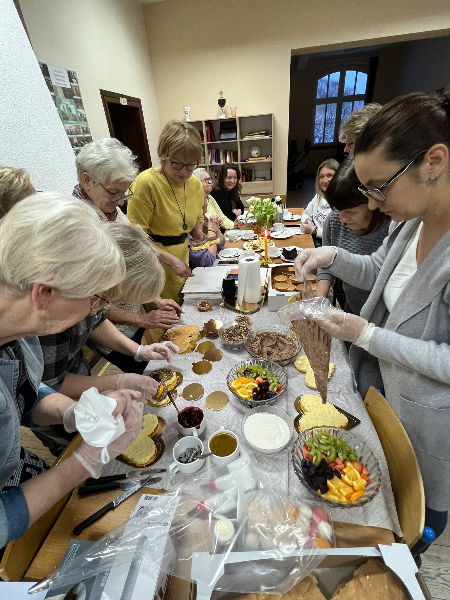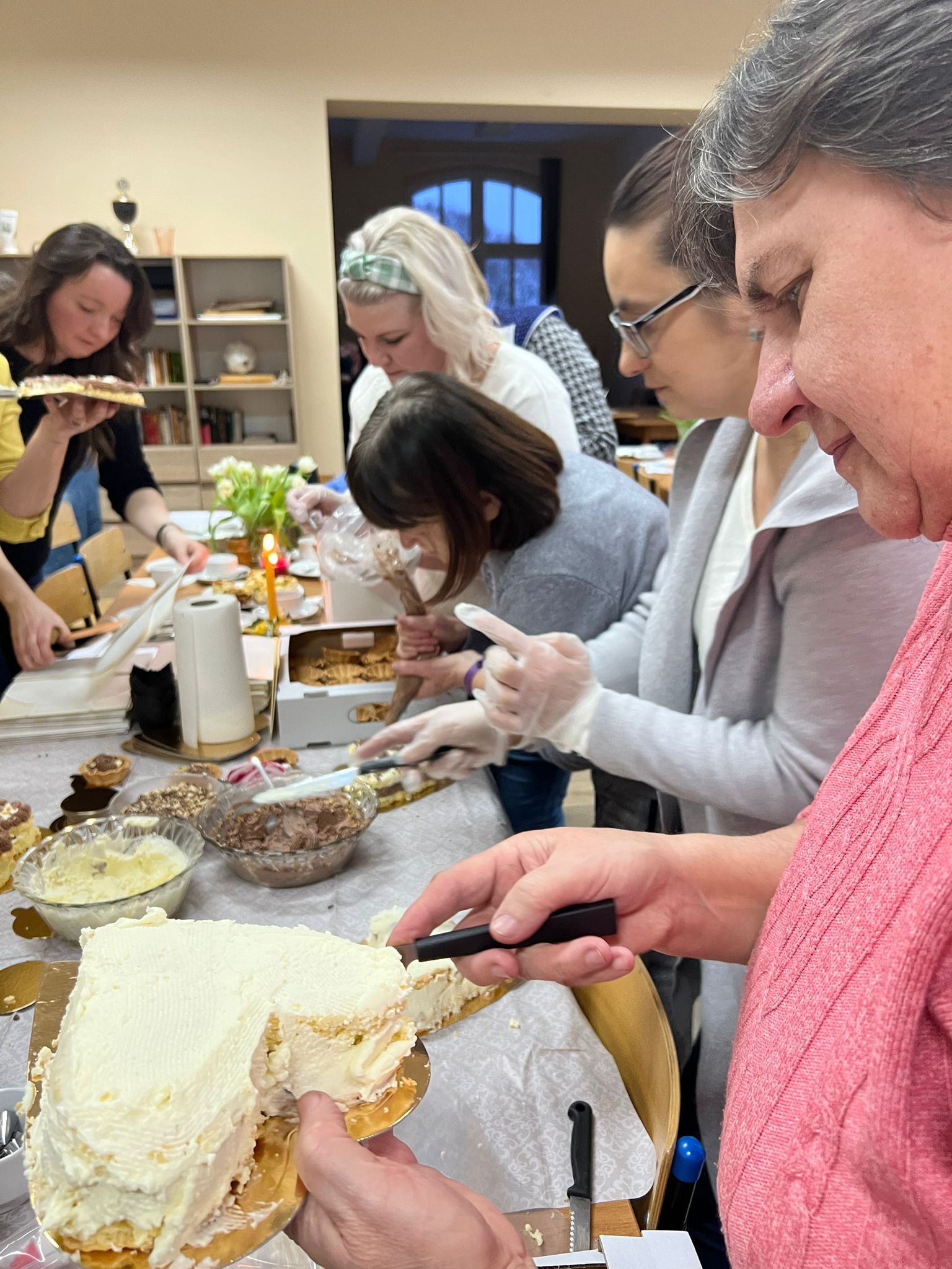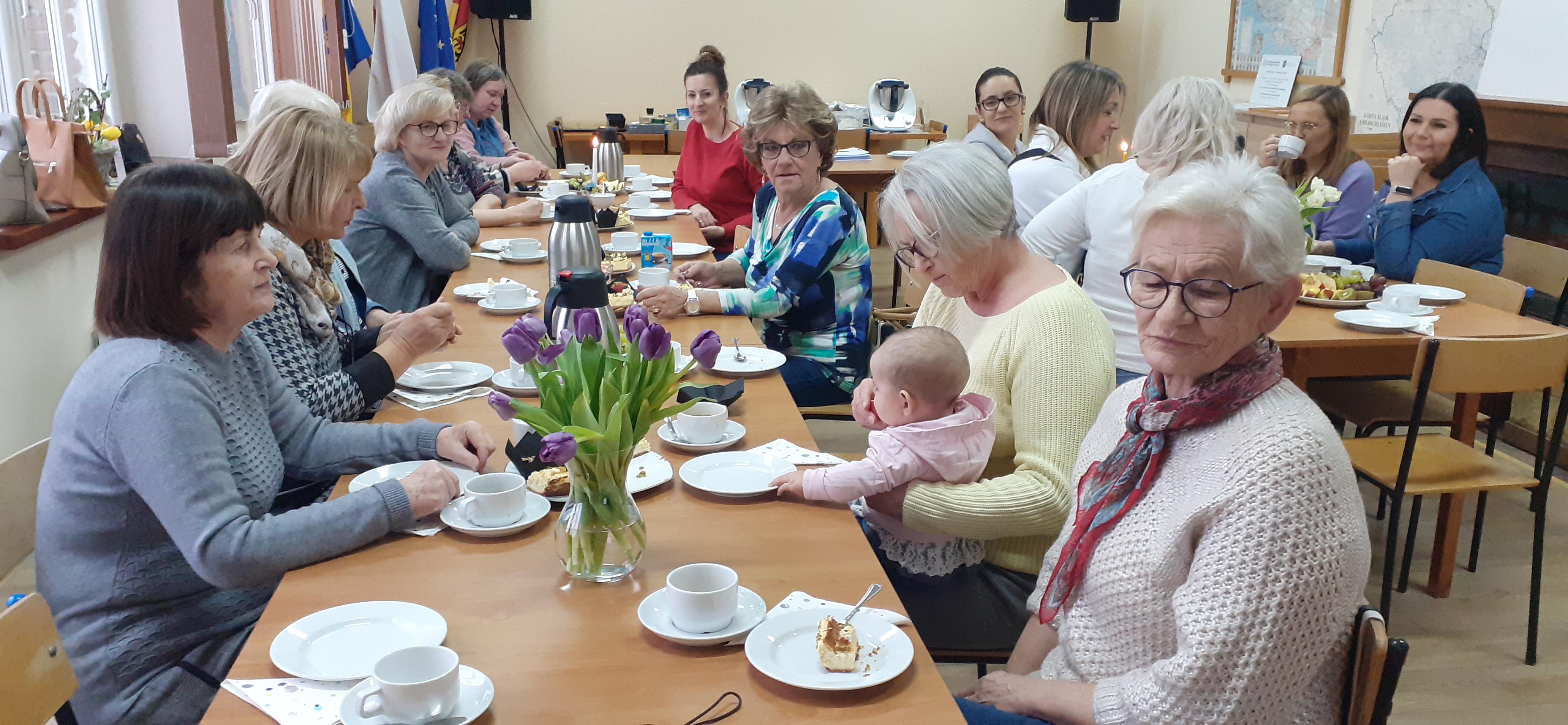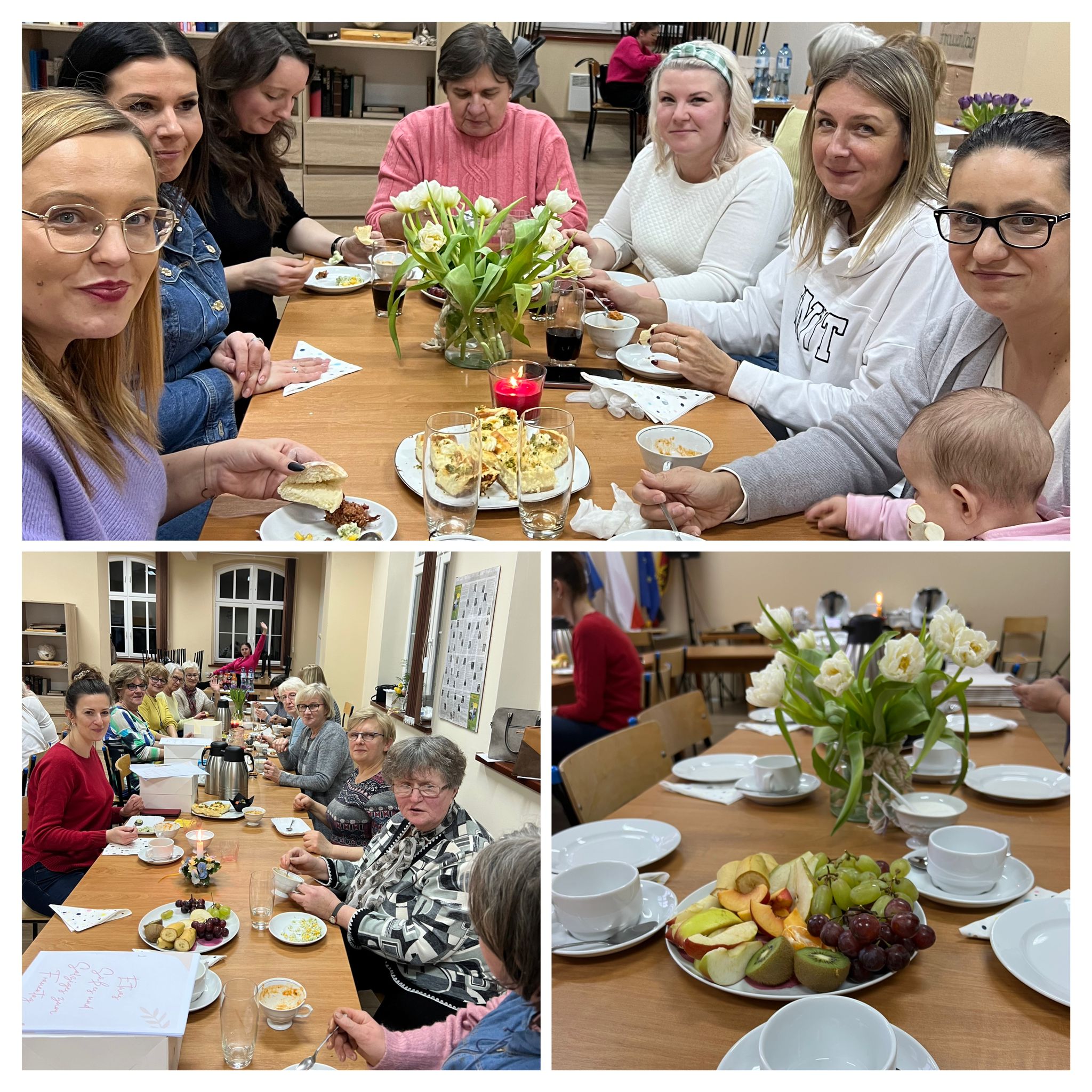 W niedzielne popołudnie 5 marca w świetlicy Starej Szkoły w Krasiejowie odbyły sie warsztaty kulinarne zorganizowane przez LernRaum z okazji Dnia Kobiet. Na wstępie uczestniczki spotkania przywitała Sylwia Widawska- gospodarz wydarzenia oraz Pani Karina Piontek- przedstawicielka LernRaum'u. Panie, które przybyły na zajęcia nie spodziewały się tylu atrakcyjnych niespodzianek. Spotkanie zaczęło się od wspólnych rozmów integracyjnych przy kawie i cieście, przygotowanych przez panie Karinę i Beatę. A potem już tylko się działo- sprawnie, efektownie i smacznie. Planując przygotowanie potraw Pani Beata Kaczmarzyk musiała uwzględnić fakt, że świetlica wiejska nie dysponuje piekarnikiem. Ale udało się! Podzieleni losowo na grupy mieliśmy do wykonania różne zadania. Jedna z pań zajęła się przygotowaniem ciasta na bułki, inna- na zdrowy chleb z ziarnami, kolejna pani przygotowała shaker truskawkowy. Potem przyszła kolej na pastę z kalafiora i brokuła, suszonych pomidorów i słonecznika oraz gulasz mięsny. Do przygotowania tych potraw wykorzystaliśmy wielofunkcyjne urządzenie kuchenne jakim jest termomix. Przepisy zamieszczone były w specjalnie wydajnej na tę okazję karcie dań. Prowadząca objaśniała i wydawała polecenia w języku polskim i niemieckim, którym sprawnie się posługiwała. Na zakończenie wszystkie panie przygotowały sobie mały torcik w kształcie serca oraz tarty owocowe, które mogły zabrać ze sobą, aby poczęstować nimi domowników. Zajęcia kulinarne trwały cztery godziny, a smaczny gulasz z upieczonym poza świetlicą chlebem był daniem finalnym. Jesteśmy pełni podziwu dla Pani Beaty Kaczmarzyk za przygotowanie produktów do tak bogatej karty dań dla prawie dwudziestu osób i znajomość tajników kulinarnych. W międzyczasie Sylwia Widawska krótko przedstawiła uczestniczkom historię Dnia Kobiet, który sięga roku 1909 i ma swoje korzenie w Ameryce Północnej, a w Europie najwcześniej był celebrowany od 1910r. w Niemczech, Danii, Austrii i Szwajcarii. Najmłodszą uczestniczką zajęć była roczna Zosia, która przez cały czas z zainteresowaniem przyglądała się czynnościom kulinarnym mamy i babci. Edukacyjne zajęcia miały na celu kultywowanie tradycji, pielęgnowanie i naukę języka niemieckiego oraz ożywienie domów spotkań członków DFK. Były okazją do wspólnie, mile i nietypowo spędzonego Dnia Kobiet. Podziękowania kierujemy do Pani Kariny Piontek (już w listopadzie spędziłyśmy z Nią czas na zajęciach z plecenia makramy), Jej córki- za okazaną pomoc i Pani Beaty Kaczmarzyk, autorki wspaniałego pokazu kulinarnego. (S. Wid.)