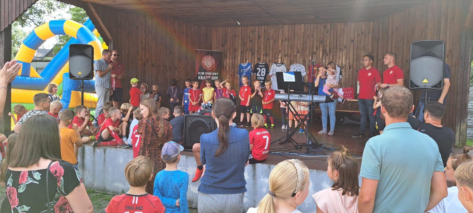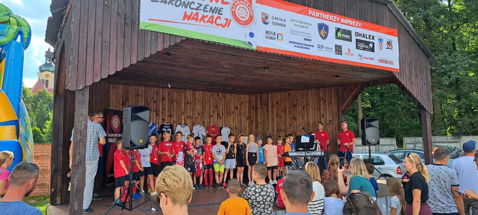 W dniach 02-03 września br. na stadionie wsi Klub Sportowy Reifel zorganizował "Sportowe zakończenie wakacji", w ramach którego odbyły się mecze, turnieje, rzuty karne, biegi, licytacje koszulek, występy artystyczne, dyskoteka z DJ Mats Music i otwarcie przez Burmistrza Mirosława Wieszołka nowego placu zabaw dla najmłodszych. Impreza przyciągnęła wielu dorosłych i dzieci szczególnie w niedzielne popołudnie. Do dyspozycji odwiedzających były przygotowane  stoiska z kawą, ciastem, grillem i napojami. Podczas festynu odbyła się licytacja koszulek, za które nabywcy płacili niemałe sumy. Dla dzieci ustawiono zjeżdżalnie, dmuchane piłki, stanowiska do strzelania z łuku i przeciągania liny oraz "salon" malowania twarzy. Rozegrany w sobotę mecz KS Rajfel Krasiejów z KS Unią Kolonowskie zakończył się efektownym zwycięstwem 8:3 naszej drużyny. Po meczu odbył się konkurs rzutów karnych, w którym najlepsi okazali się: w kategorii U-12 Marcel Mróz, w kategorii OPEN - Dawid Konieczko. Strażacy z OSP Krasiejów zorganizowali dla najmłodszych pokazy strażackie, zaś nasi sportowcy z KS Reifel- zawody biegowe z nagrodami. Uczestnicy spotkania mogli posłuchać w niedzielę pięknego występu duetu  z zespołu "Akces" Leny Bryi i Leny Mannsfeld oraz odkurzonych przebojów w wykonaniu Jerzego Kaufamnna oraz Mai Czupala. Po południu odbył się mecz rezerw naszego klubu z rezerwami Unii Kolonowskie, który zakończył się kolejnym zwycięstwem 4:2  drużyny z Krasiejowa. Gratulujemy Klubowi Sportowemu, głównemu organizatorowi, udanego festynu i dziękujemy sponsorom, partnerom, wszystkim osobom, które brały udział w stawianiu i składaniu namiotu oraz prowadzącym festyn panom Jerzemu Kaufamnnowi i Krzysztofowi Koźlikowi. Szczególne podziękowania dla Grzegorza Brondra- prezesa KS "Reifel", Grzegorza Pasonia i Mateusza Pinkawy za  trzymanie pieczy nad całością festynu oraz dla pana Pasonia dodatkowo za udostępnienie  firmowego busa do przewozu namiotów i zaopatrzenia. Sklepowi Dziecięcemu "Kraina Bobasków" i Projektowi INK dziękujemy za darmowe brokatowe tatuaże i malowanie buziek dzieciom, zaś firmie Rafał Ogórka za ustawienie dmuchańców. Szczególne słowa uznania dla naszych sportowców z KS Reifel za  udział w rozgrywkach piłkarskich z Unią Kolonowskie. Burmistrz pogratulował wsi Krasiejów otwarcia nowego palcu zabaw i podziękował personalnie Tomaszowi Szubertowi - właścicielowi  firmy brukarskiej Halex za bardzo dobre wykonanie prac na boisku. Wszyscy, którzy przybyli na sportowy festyn mogli się dobrze pobawić lub wziąć udział w zmaganiach sportowych.