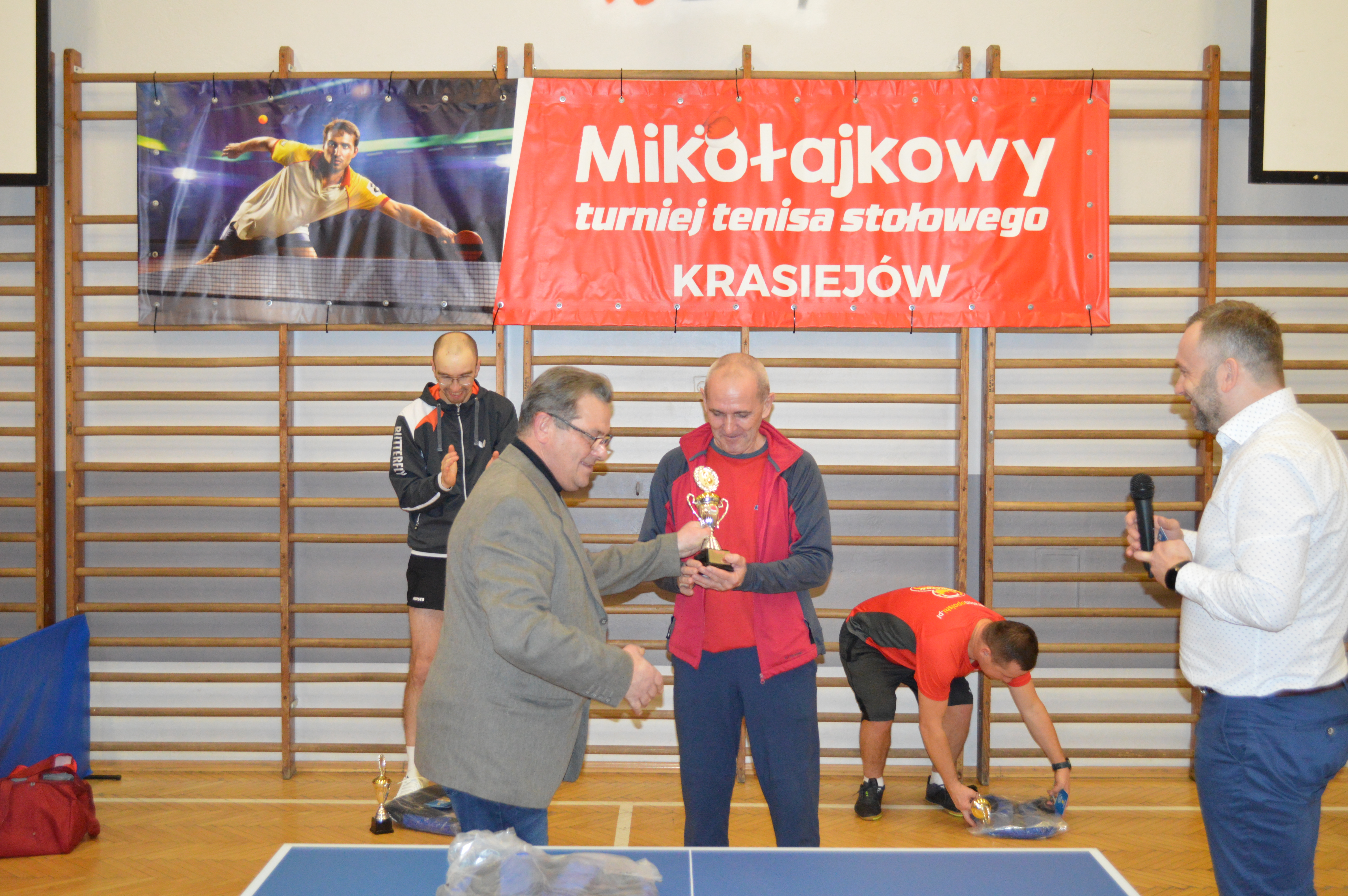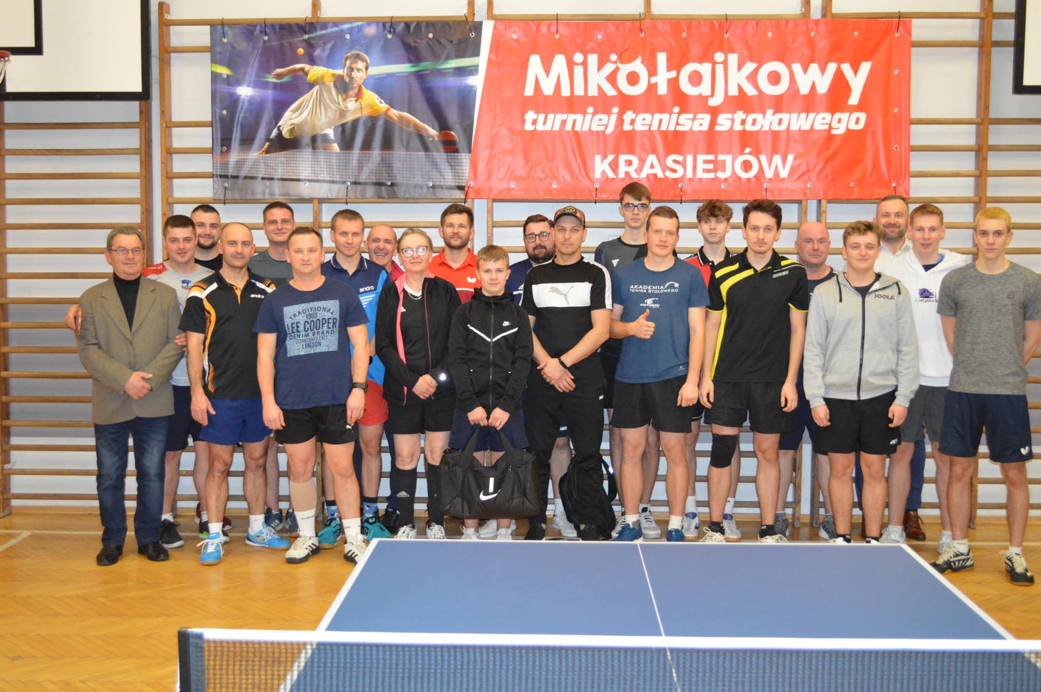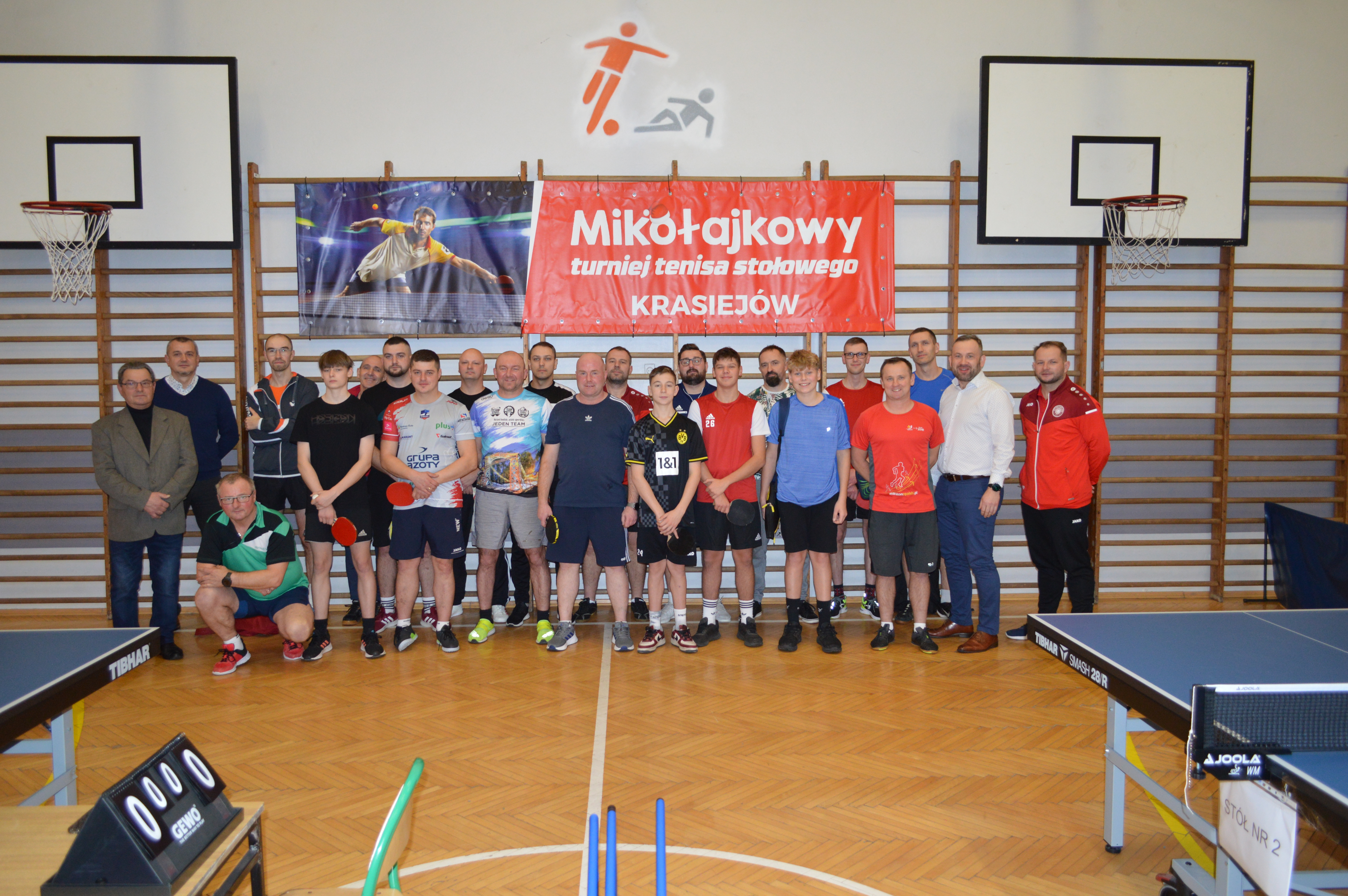 W sobotnie popołudnie dnia 9 grudnia br. w Szkole Podstawowej w Krasiejowie odbył się 9. Mikołajkowy Turniej Tenisa Stołowego, który na stałe wpisał się w kalendarz wydarzeń sportowych wsi. Turniej otworzyli Burmistrz Ozimka Mirosław Wieszołek i Sołtys Tadeusz Markulak. W rywalizacji wzięło udział 42 zawodników, co dowodzi, że wydarzenie cieszyło się jeszcze większym powodzeniem niż w zeszłym roku. Organizatorem zawodów był Sołtys i Rada Sołecka wsi, Przemysław Polaczek oraz przedstawiciele KS Reifel Krasiejów Grzegorz Bronder i Mateusz Pinkawa, który od lat sprawuje pieczę nad przebiegiem turnieju. Pan Pinkawa jest trenerem piłki nożnej Uczniowskiego Klubu Sportowego Athletic Ozimek i KS Krasiejów oraz wiceprezesem Gminnego Młodzieżowego Klubu Sportowego Ozimek. Zawodnicy przyjechali do Krasiejowa z różnych miejscowości województwa opolskiego.