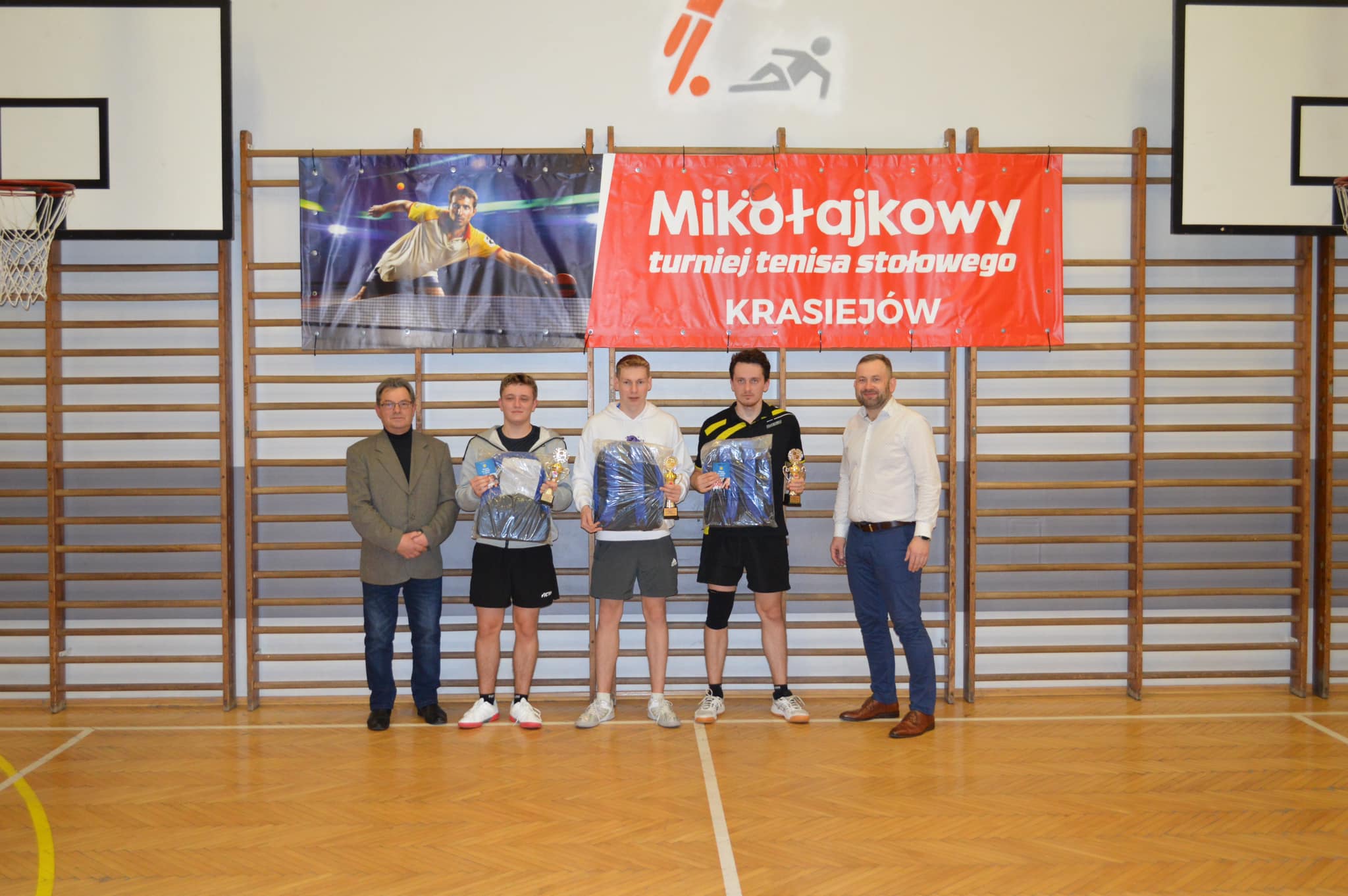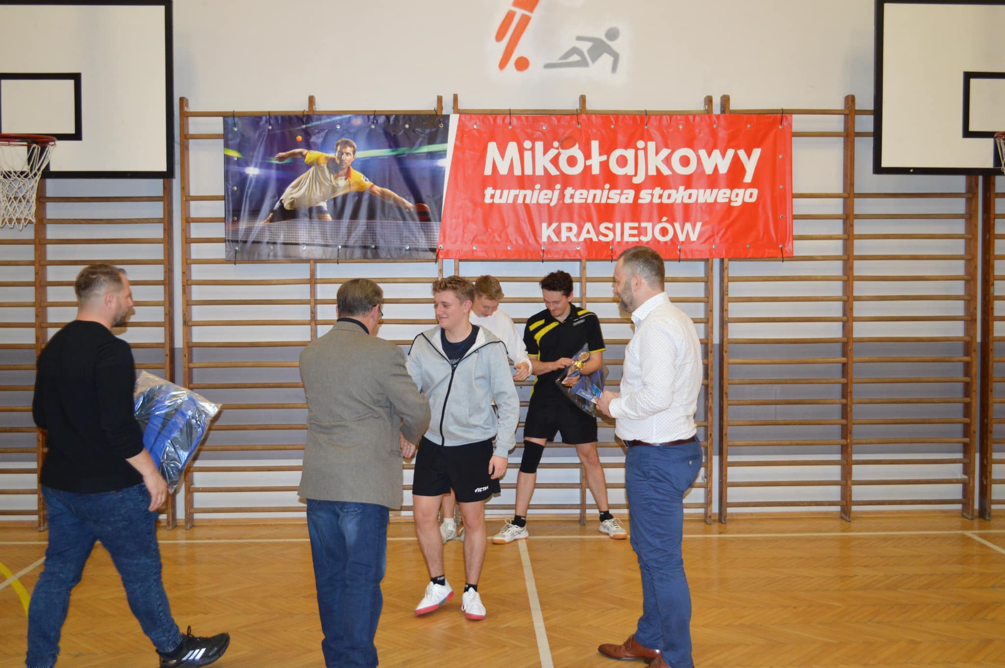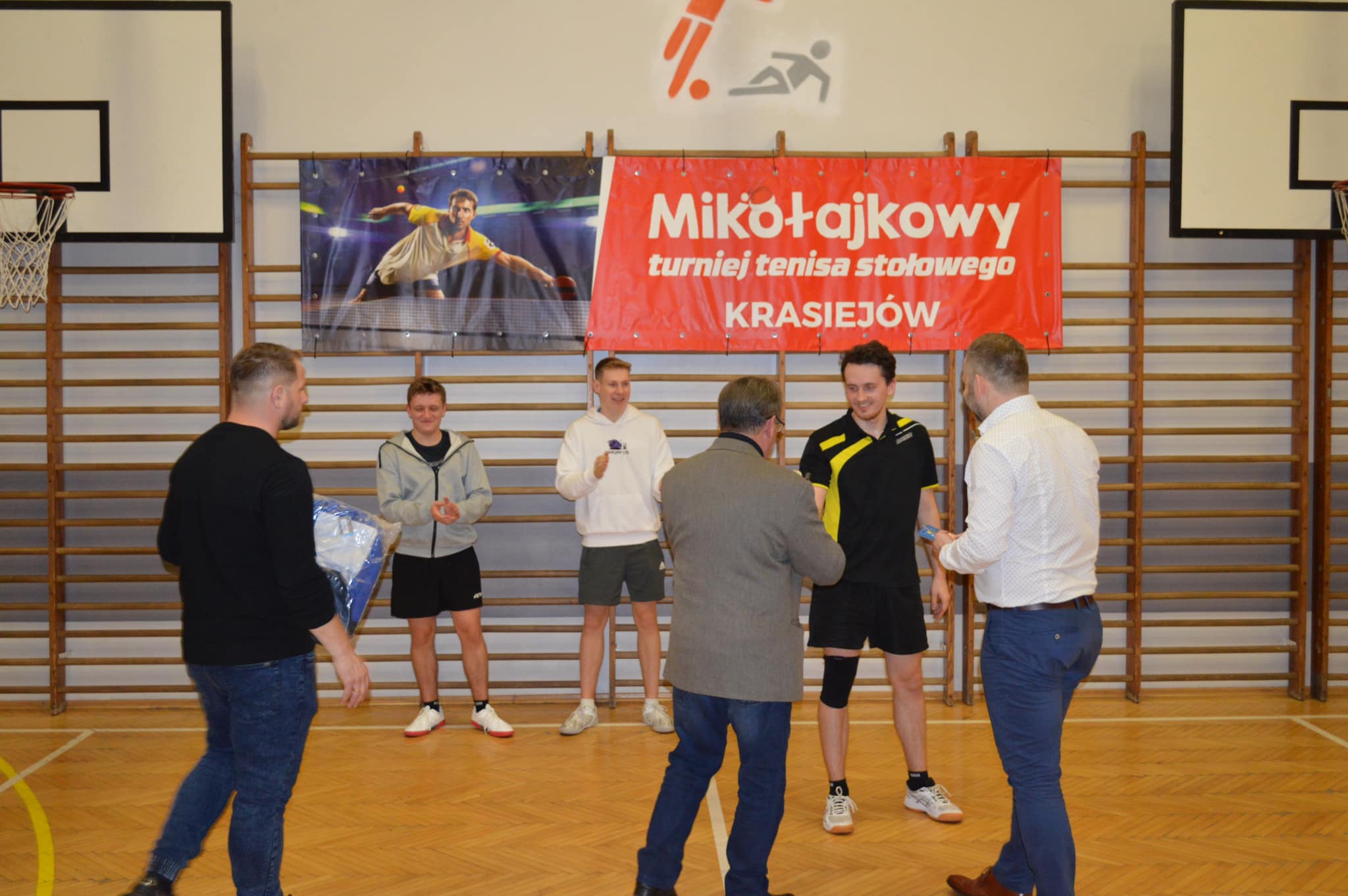 W sobotnie popołudnie dnia 9 grudnia br. w Szkole Podstawowej w Krasiejowie odbył się 9. Mikołajkowy Turniej Tenisa Stołowego, który na stałe wpisał się w kalendarz wydarzeń sportowych wsi. Turniej otworzyli Burmistrz Ozimka Mirosław Wieszołek i Sołtys Tadeusz Markulak. W rywalizacji wzięło udział 42 zawodników, co dowodzi, że wydarzenie cieszyło się jeszcze większym powodzeniem niż w zeszłym roku. Organizatorem zawodów był Sołtys i Rada Sołecka wsi, Przemysław Polaczek oraz przedstawiciele KS Reifel Krasiejów Grzegorz Bronder i Mateusz Pinkawa, który od lat sprawuje pieczę nad przebiegiem turnieju. Pan Pinkawa jest trenerem piłki nożnej Uczniowskiego Klubu Sportowego Athletic Ozimek i KS Krasiejów oraz wiceprezesem Gminnego Młodzieżowego Klubu Sportowego Ozimek. Zawodnicy przyjechali do Krasiejowa z różnych miejscowości województwa opolskiego.