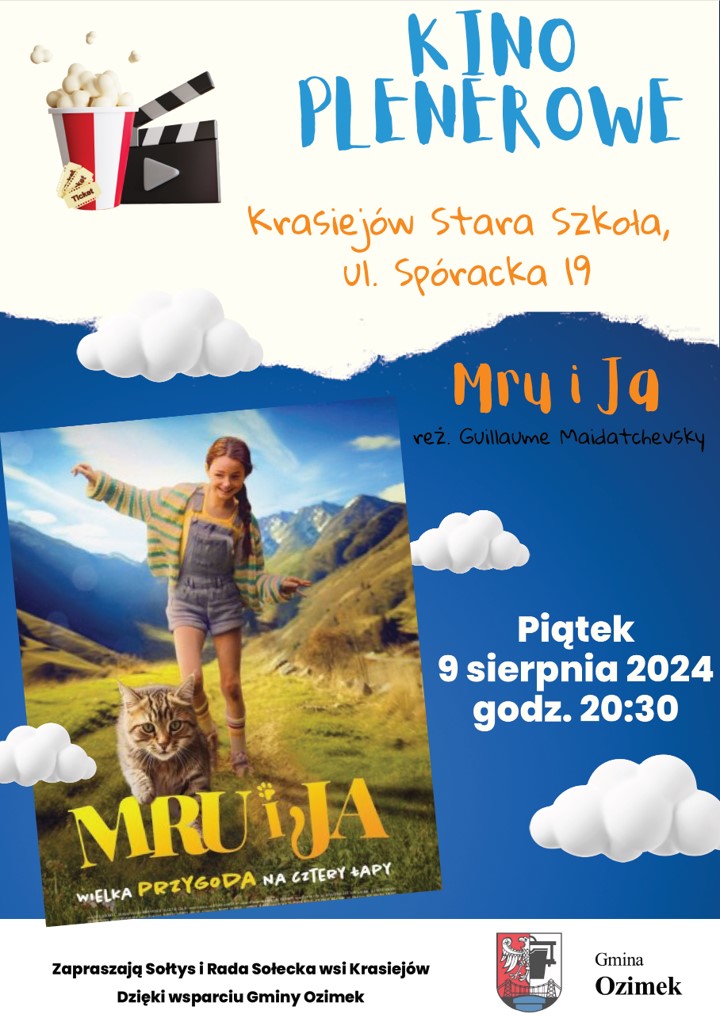 Sołtys i Rada Sołecka zapraszają mieszkańców Krasiejowa do kina plenerowego w dniu 9 sierpnia (w piątek) o godz. 20.30 na plac przed Starą Szkołą. Oprócz obejrzenia filmu będzie można zakupić pizzę przygotowaną przez restaurację ElGusto. Więcej informacji o filmie kliknij. "Mru i Ja", to film familijny.