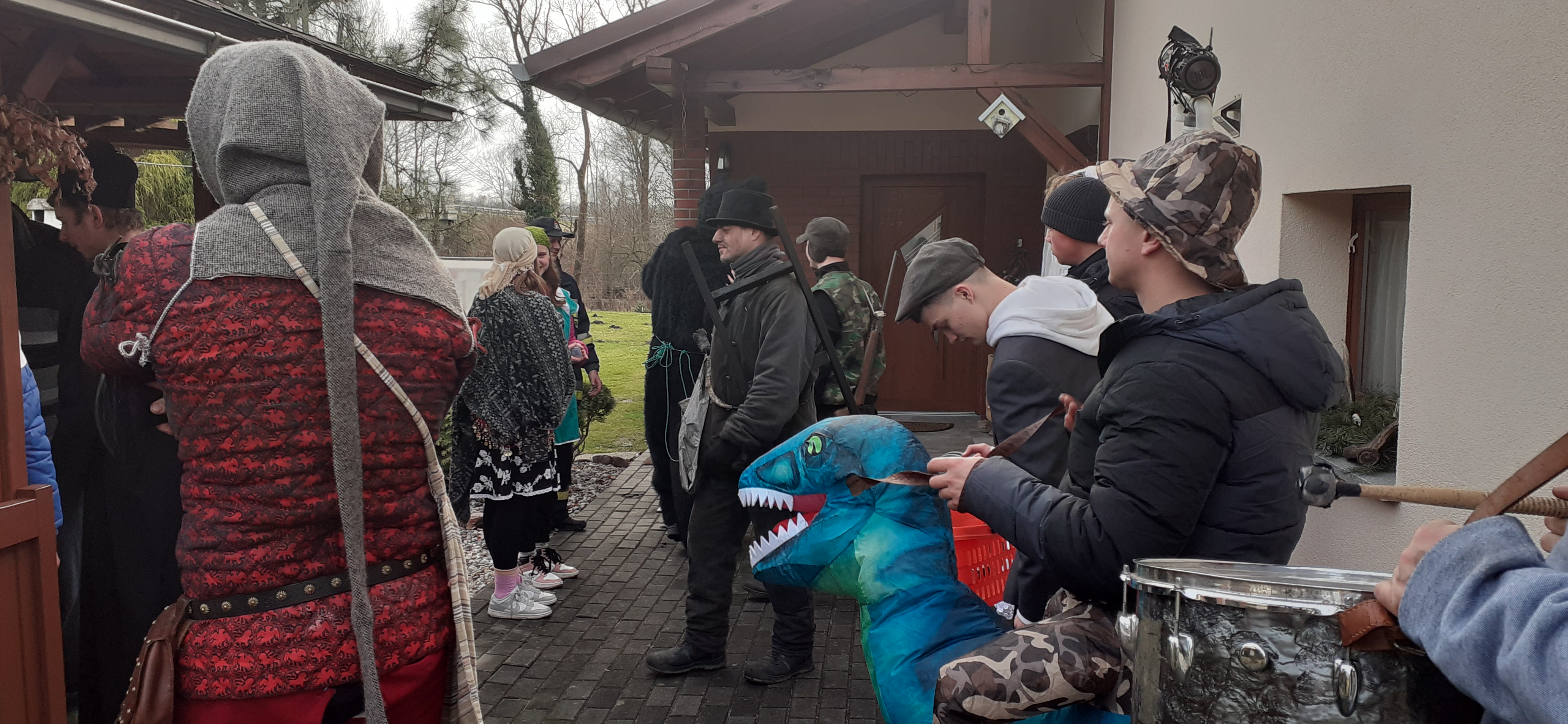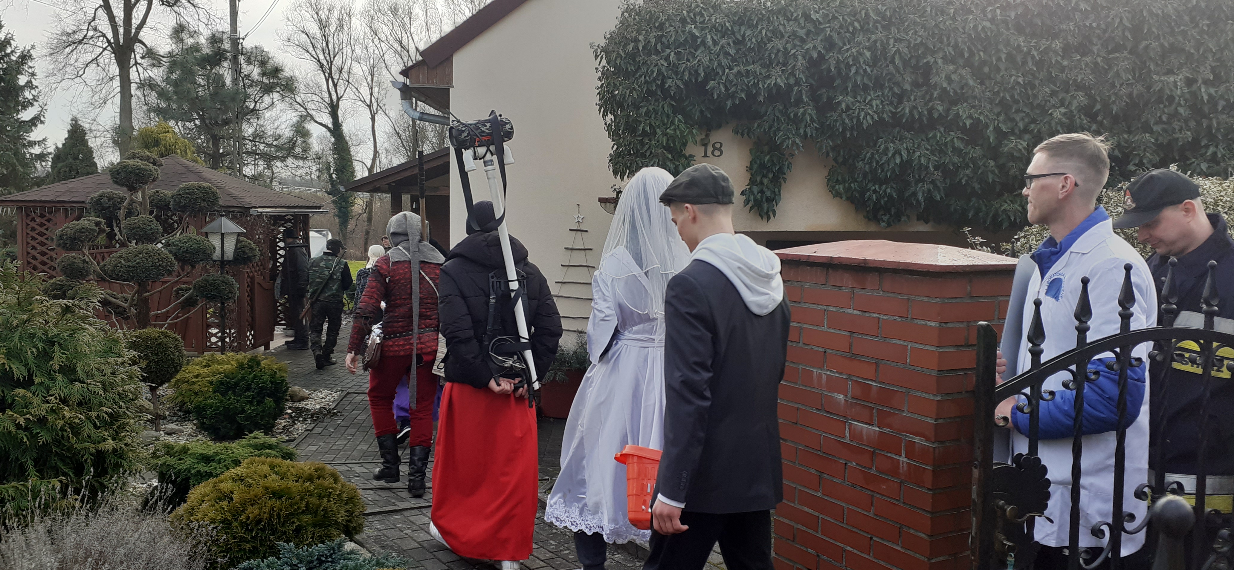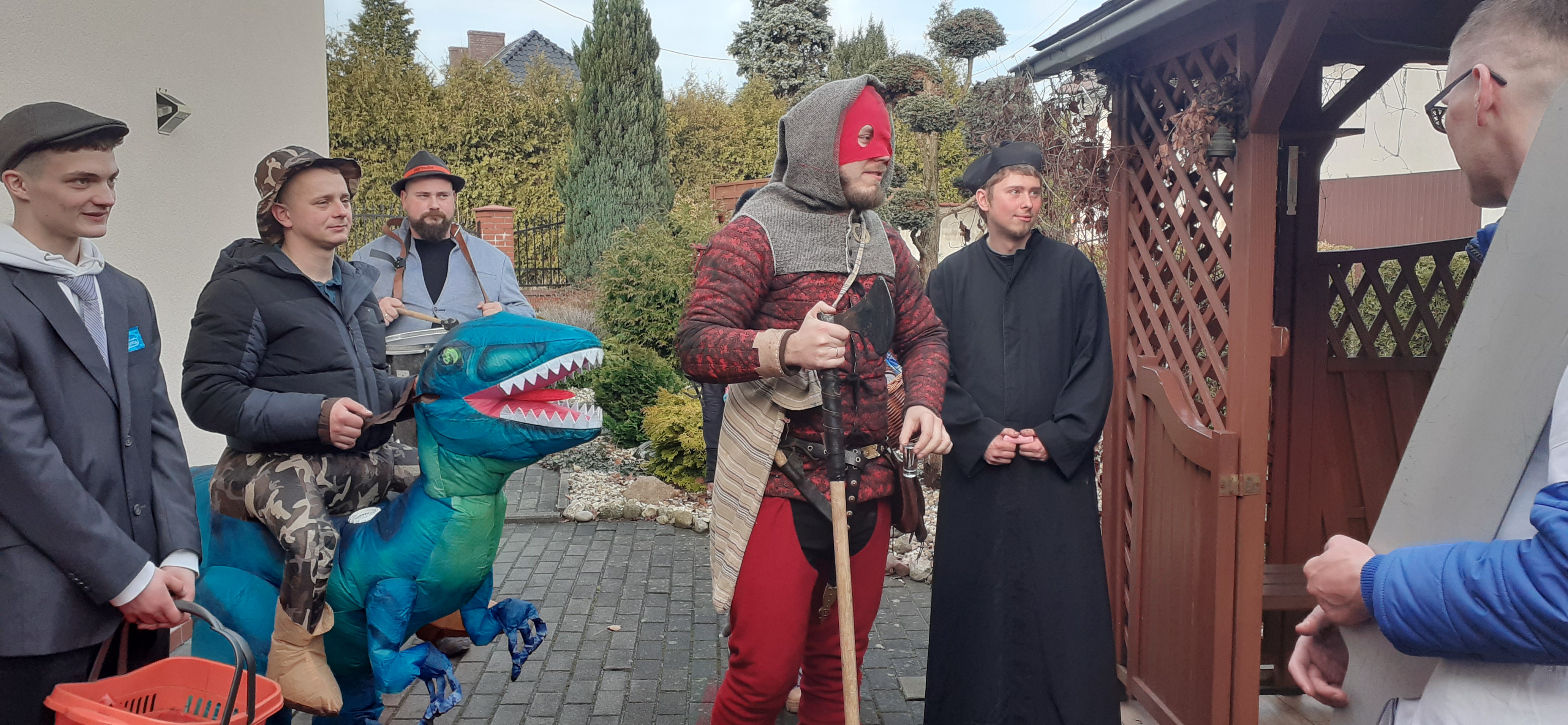Jak co roku wczesnym rankiem przed budynkiem straży panował ruch. To strażacy zbierali się w korowód, aby wyruszyć w odwiedziny domostw położonych po prawej stronie torów kolejowych. Na początku zawitali do salki parafialnej, gdzie oczekiwały ich z poczęstunkiem członkinie PZ Caritas. Natępnie wsiedli na piękną podwodę, która wiozła ich na ulicę Brzeziny. Po drodze zatrzymywali samochody, udzielali upomnień (nawet policji) i wręczali mandaty. Obowiązkowo podczas odwiedzin gospodynie tańczyły z Berem, co zapewnić ma szczęście w przyszłości. Korowód był bardzo liczny i barwny. A w Krasiejowie, w odróżnieniu od innych wsi, do niedźwiedzia dołącza wspaniały dinozaur. I w końcu nie wiadomo, czy u nas chodzą Bery czy Dinozaur z Niedźwiedziem. Grupie towarzyszyła głośna muzyka i hałasy. Dziękujemy uczestnikom tradycyjnego wodzenia niedźwiedzia za odwiedziny, a mieszkańcom za datki, które mają szczytny cel - zakup nowego wozu strażackiego. Po południu w Starej Szkole dzieci mogły uczestniczyć w przygotowanych przez panią Ewę Kotysz animacjach, a wieczorem odbyła się zabawa taneczna dla dorosłych. Brawo strażacy z OSP Krasiejów z prezesem Tomaszem Chudalą na czele za przygotowanie tego wyjątkowego wydarzenia!!!