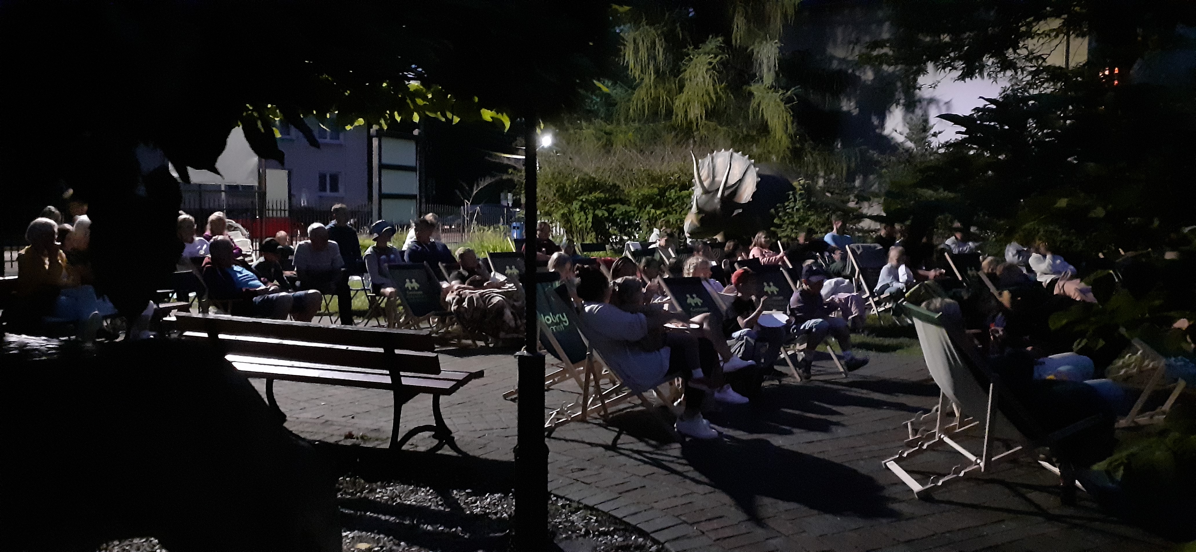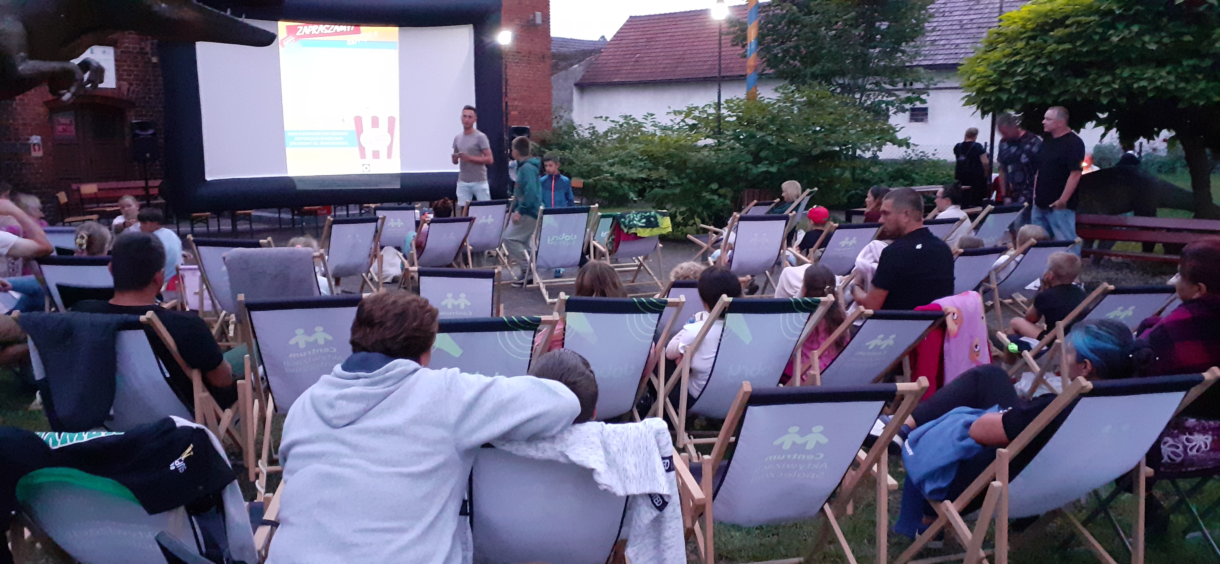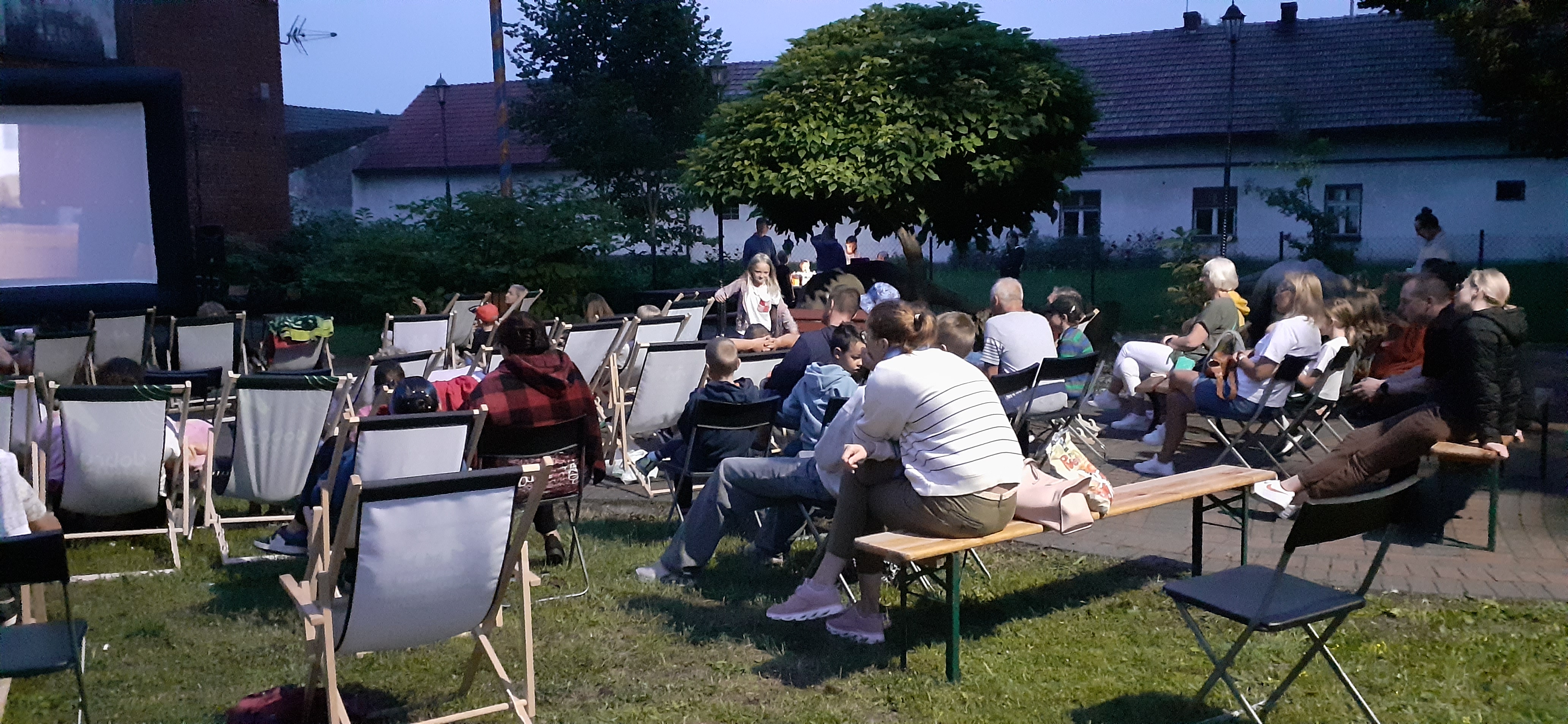 W piątkowy wieczór sporo dorosłych wraz z dziećmi i przyjezdnych gości zasiadło w leżakach na placu przed Starą Szkołą, aby obejrzeć familijny film "Mru i Ja", czyli wielka przygoda na cztery łapy". Film ukazał piękną przyjaźń dziewczynki i znalezionego przez nią kota. Dziesięcioletnia Cleo wraz z kotkiem Mru i rodzicami pojechali do domku w górach spędzić leniwe wakacje. Zawadiacki Mru nie zamierzał się jednak nudzić - wyruszył w podróż, aby odnaleźć swoją dziką naturę. Cleo, wraz z szaloną sąsiadką i psem Rambo, podążyła jego tropem, a beztroskie lato okazało się pełne wrażeń! Cleo była mu wierna, gdy zachorował, ale zrozumiała też, że zwierzę potrzebuje bliskości innego towarzysza życia i zdecydowała się na wypuszczenie Mru na wolność, choć przyszło jej to z trudem. Podziękowania kierujemy pod adresem Marcina Konietzko, odpowiedzialnego za przygotowanie wydarzenia i Stowarzyszenia Opolskie Lamy, które film zaprezentowało.