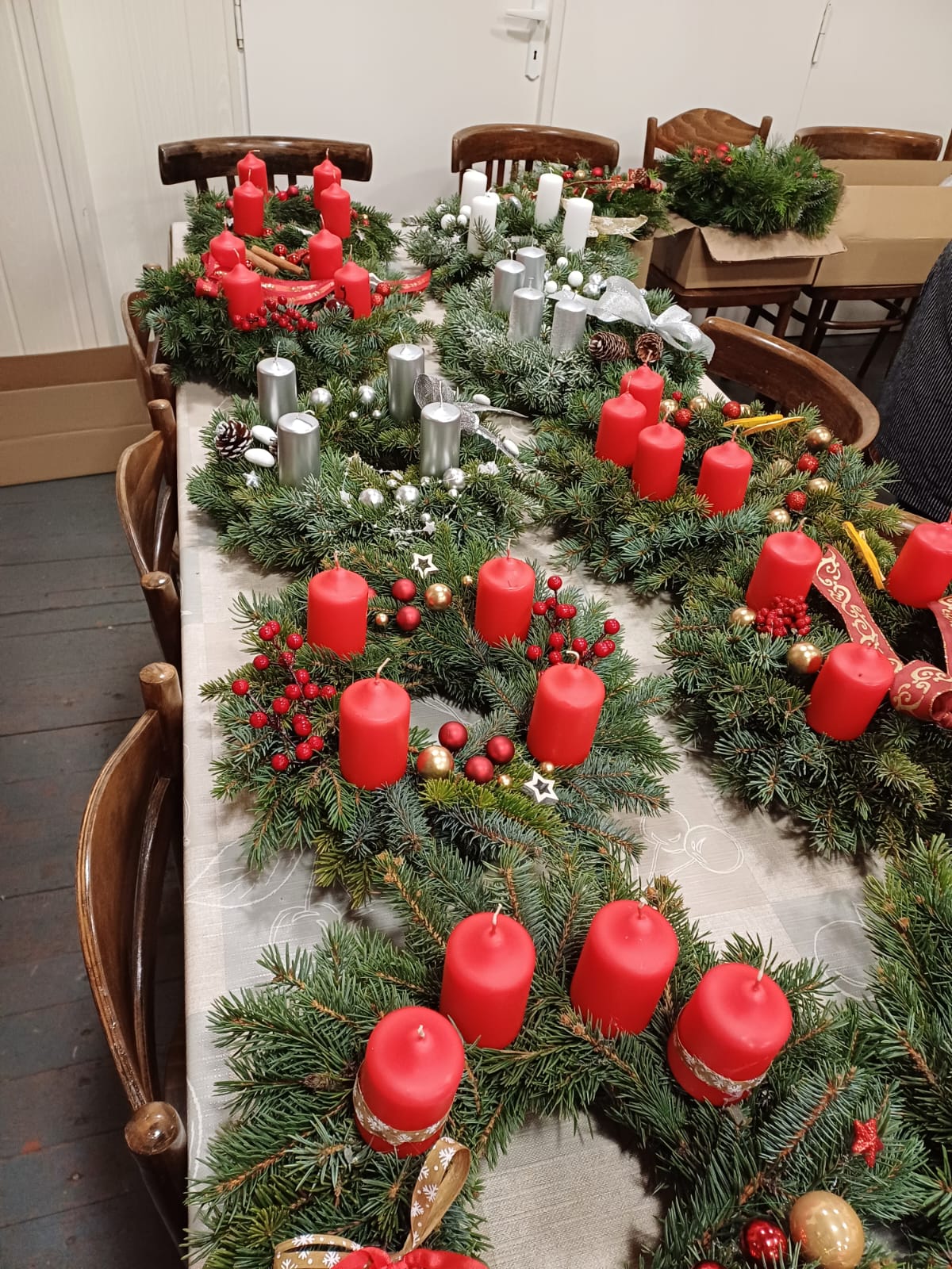 Członkinie Parafialnego Zespołu Caritas już przygotowały piękne wieńce adwentowe. Będzie je można nabyć w kościele już od piątku. W niedzielę Caritas organizuje dodatkowo przed restauracją u pani Lidii Schroll. Datki będą przeznaczane na cele charytatywne, w tym paczki świąteczne dla osób potrzebujących.