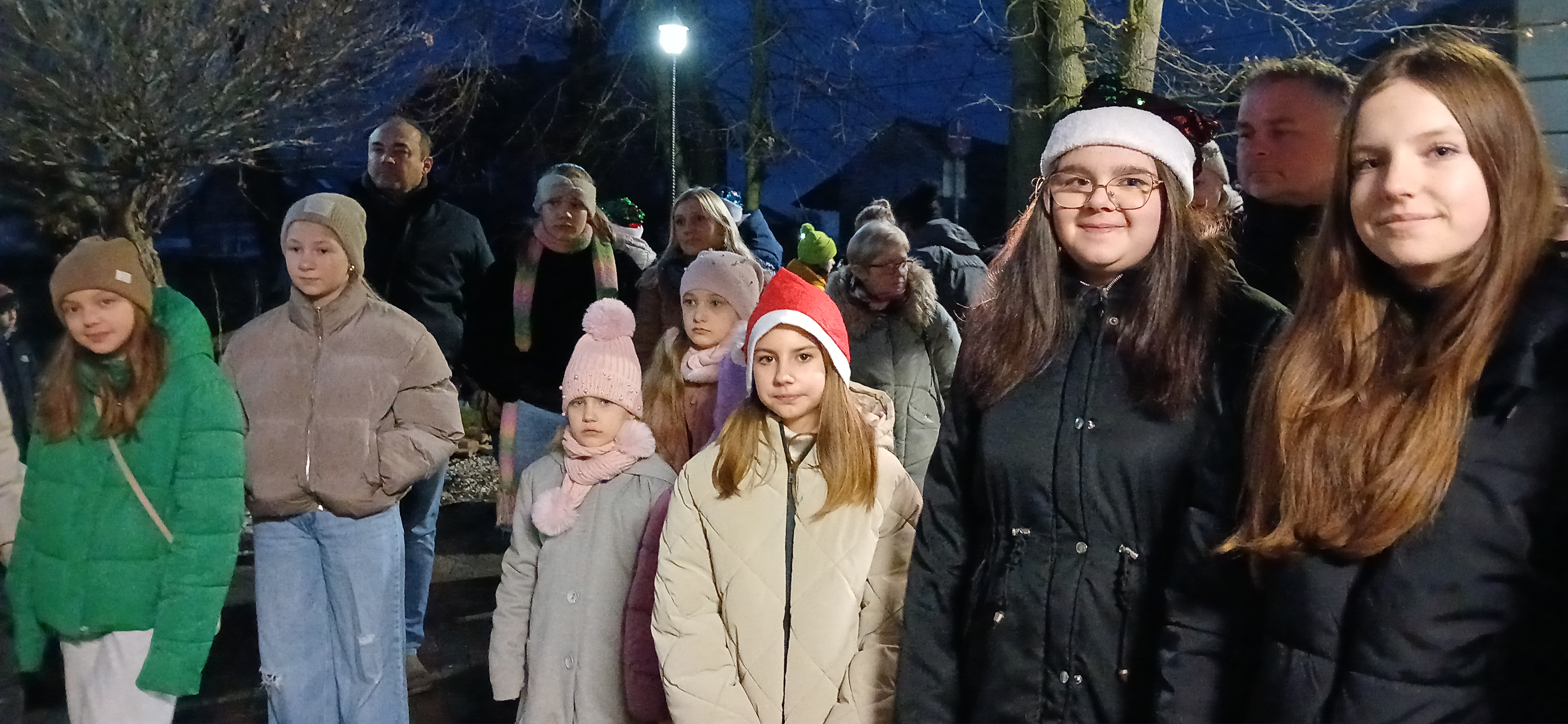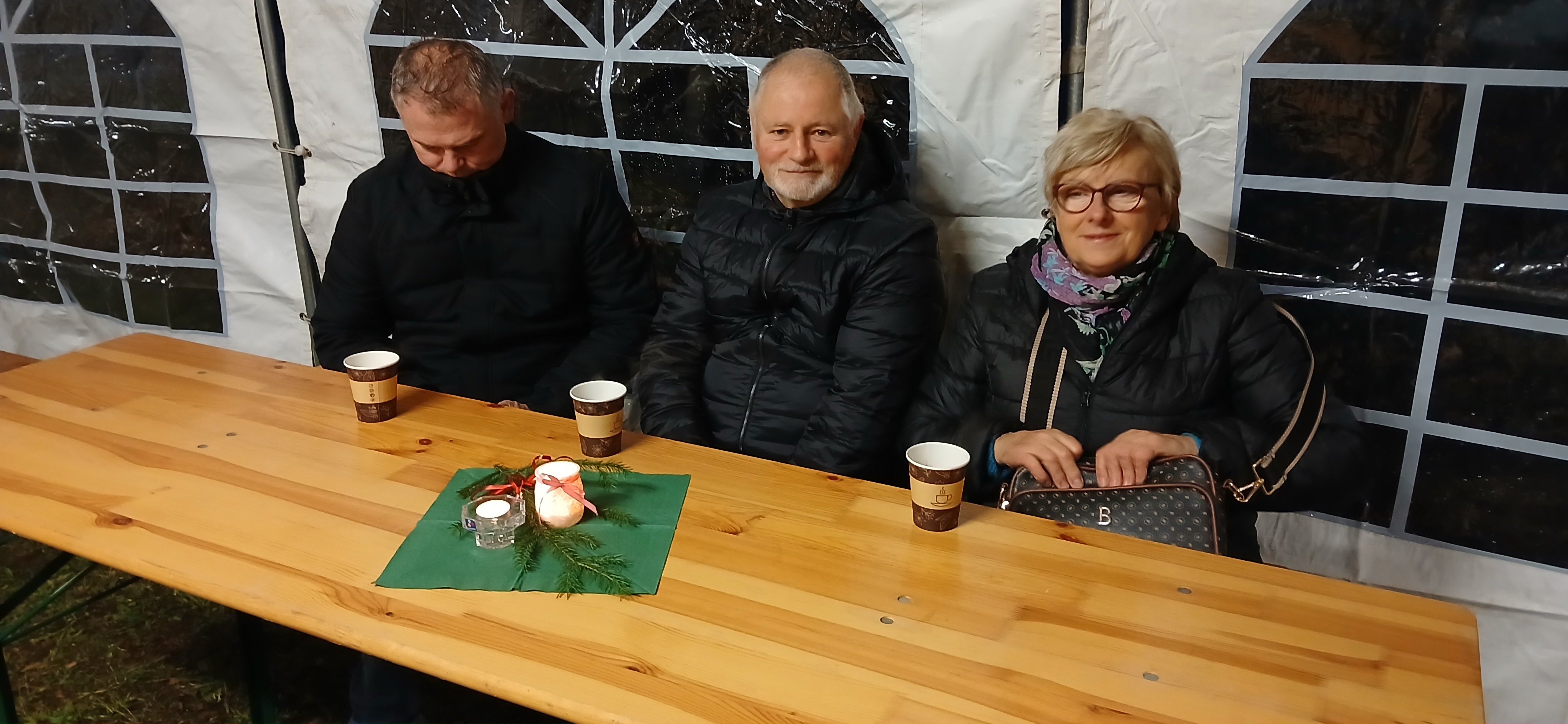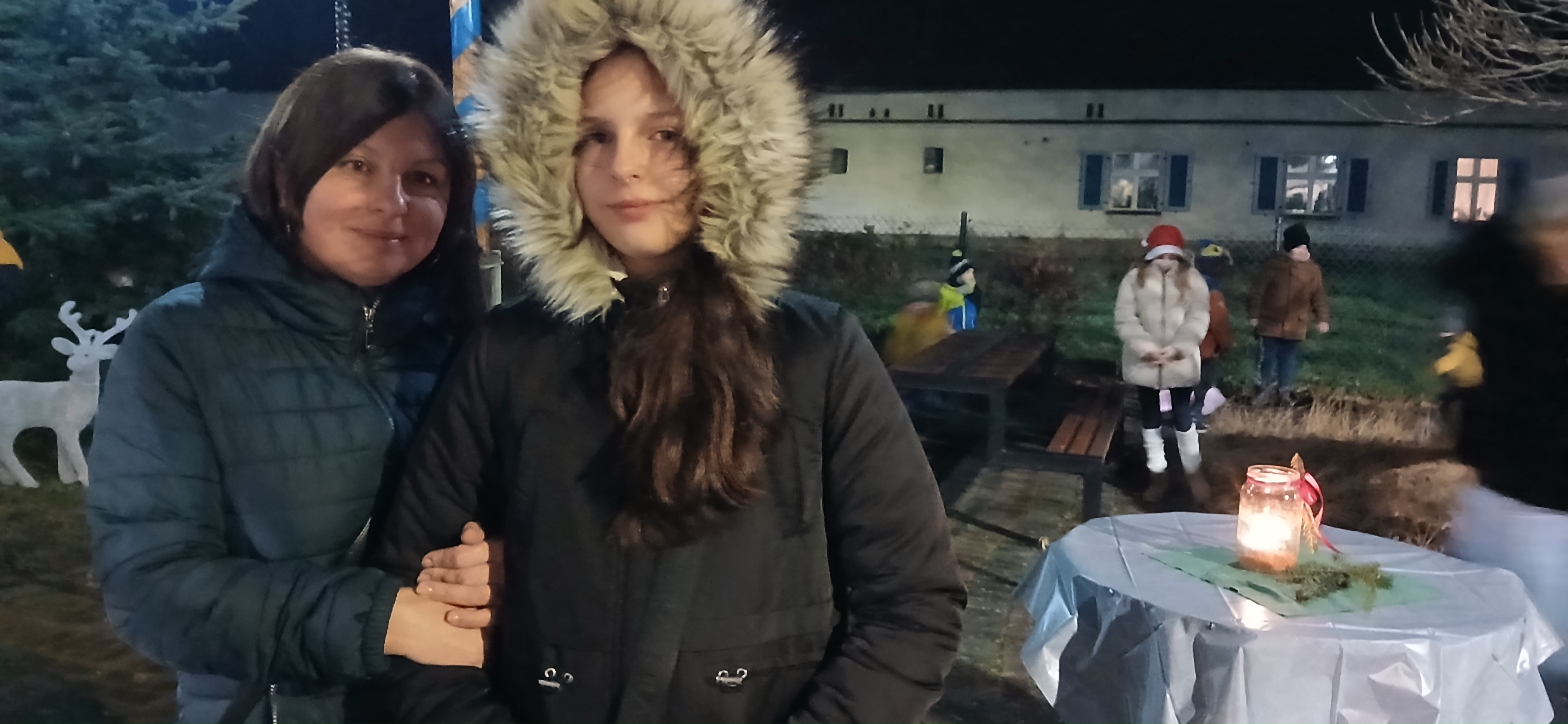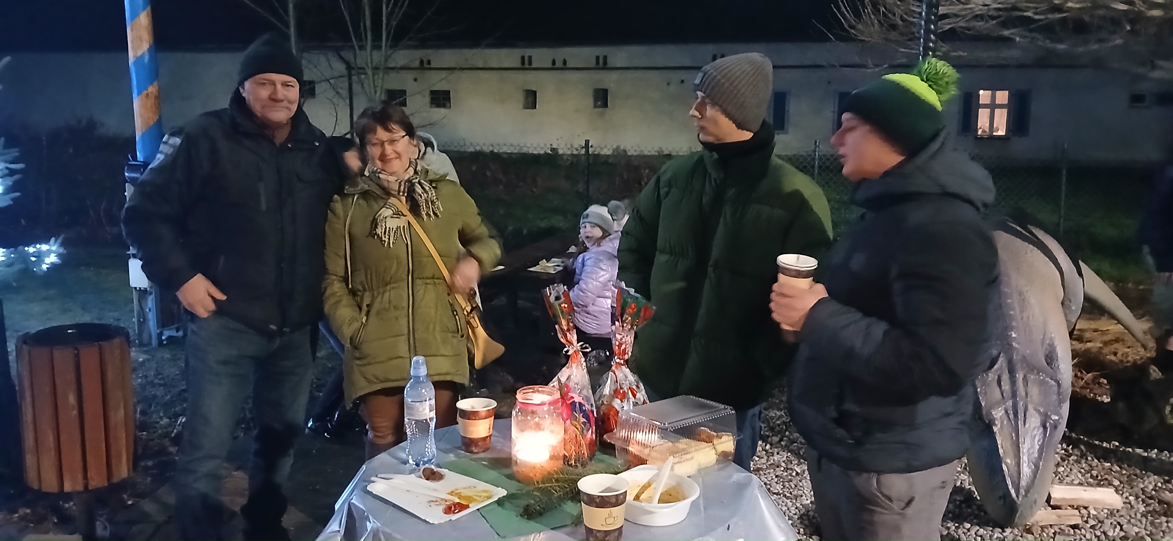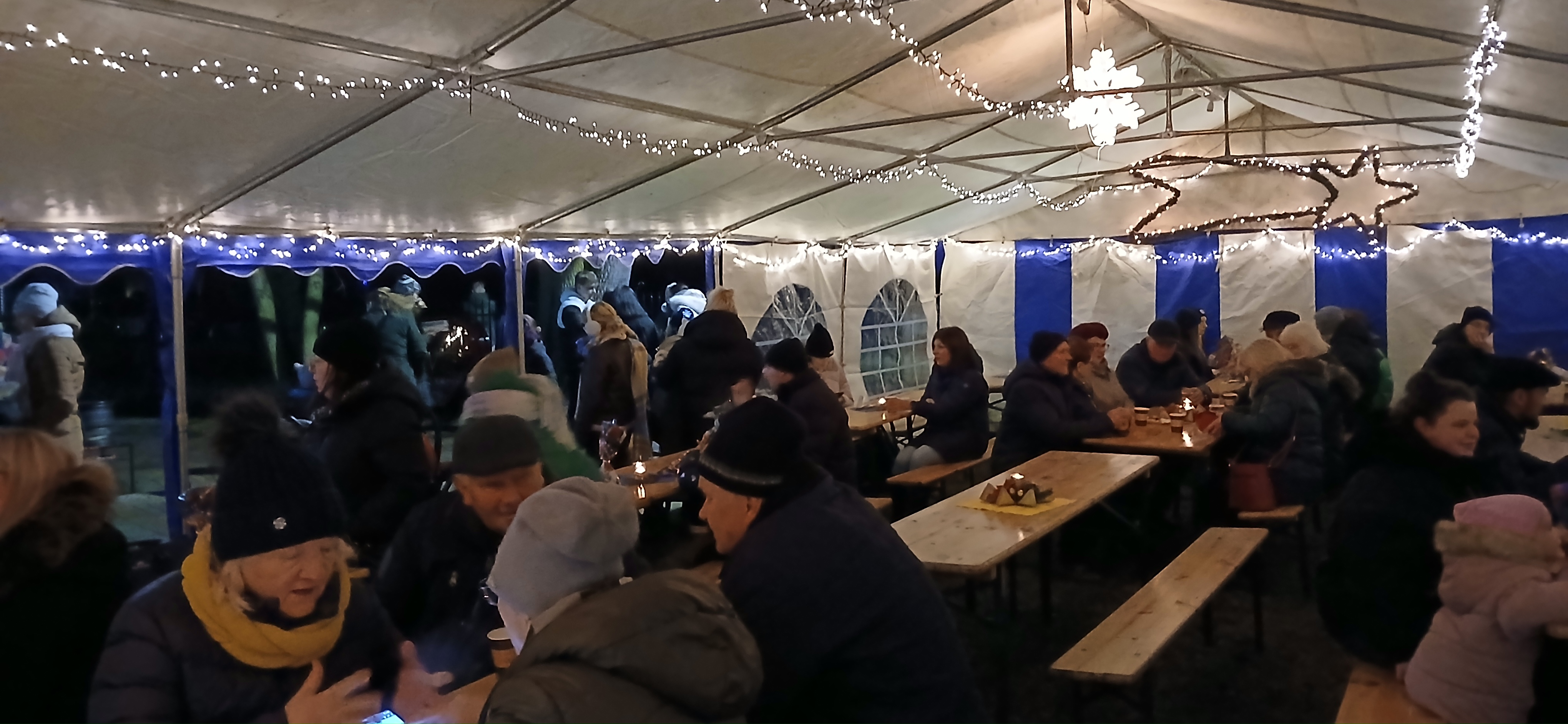 Uroczystym momentem na który wszyscy czekali było rozświetlenie choinki i lampek w namiocie. Nowością było pojawienie się w tym roku podświetlonego jelonka, przy którym rodzice chętnie robili swoim pociechom pamiątkowe zdjęcie. Po kilku godzinach wspólnej  i radosnej biesiady goście rozeszli się do domu, a członkowie Rady Sołeckiej  zabrali się za sprzątanie.  Dziękujemy wszystkim, którzy wnieśli swój wkład w organizację Jarmarku Światecznego, niezawodnemu Janowi Bonkowi, który od lat  ustawia choinkę na placu, zawiesza i podłącza oświetlenie, Tomaszowi Chudali za wysprzątanie liści przed szkołą, Grzegorzowi Pasoniowi za zajęcie się przygotowaniem paczek dla dzieci, Sołtysowi, Radzie Sołeckiej oraz zaangażowanym członkom SMK, którzy pomagali w ustawianiu namiotu, zakupach, przygotowaniu poczęstunku.