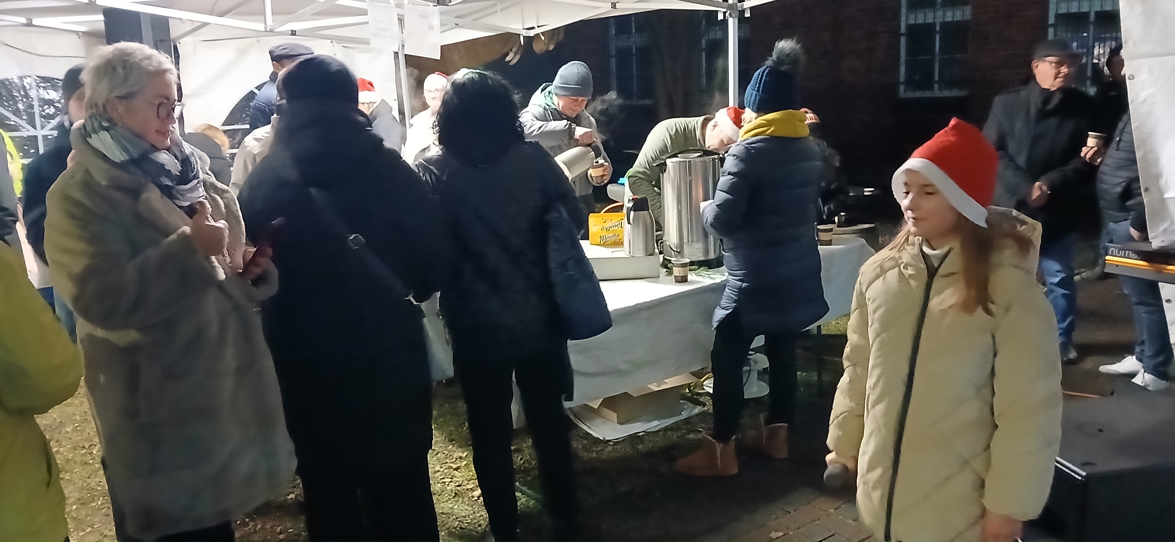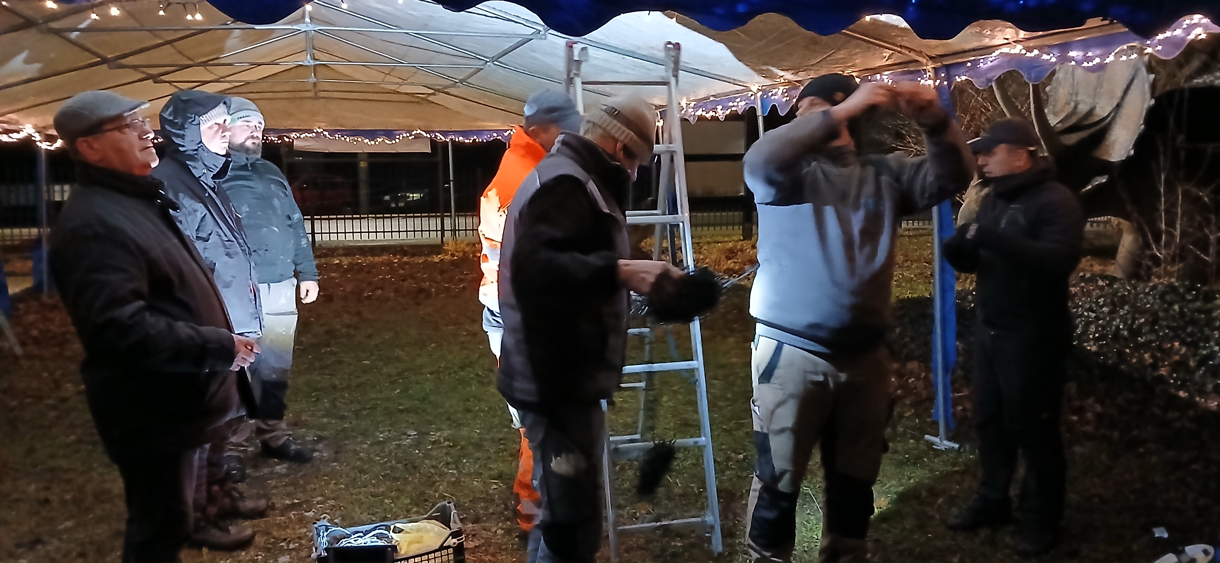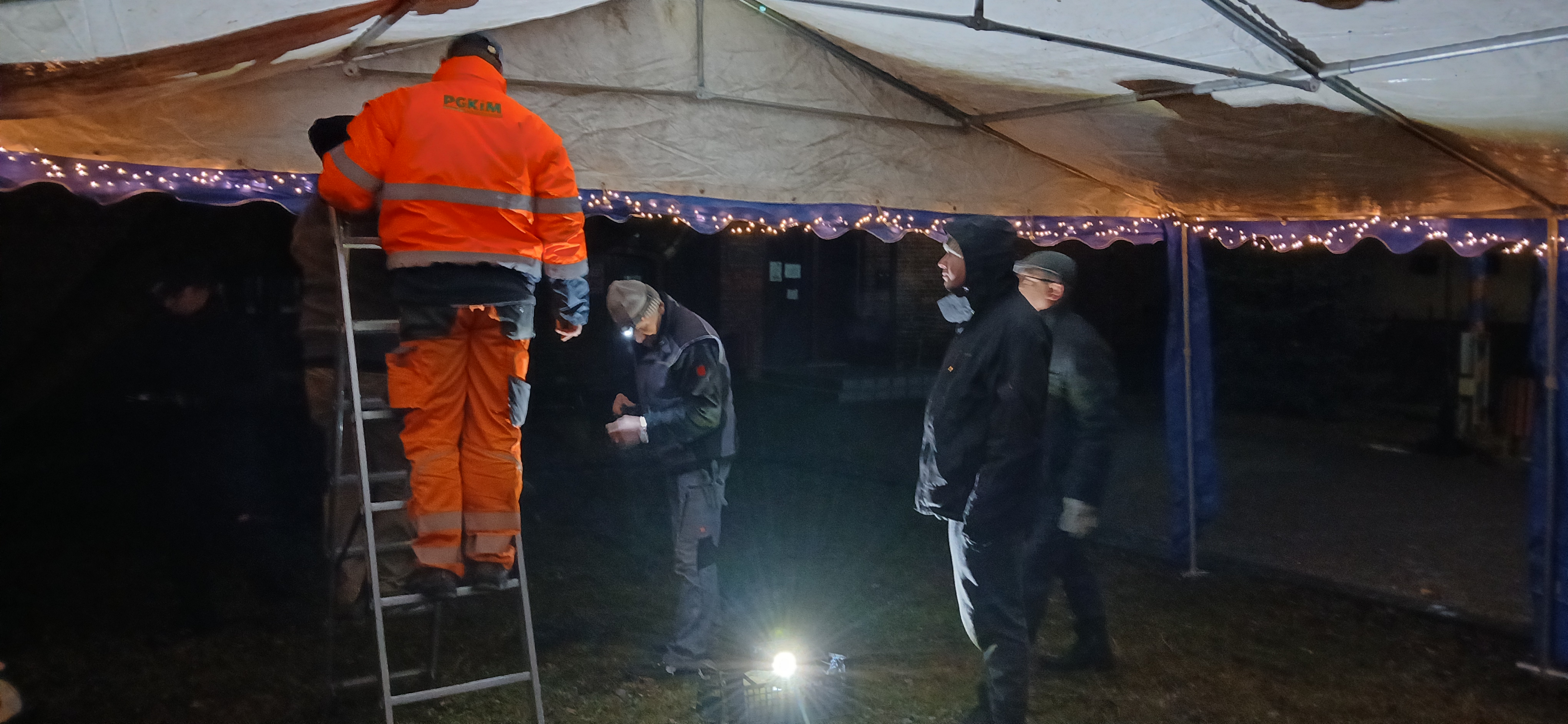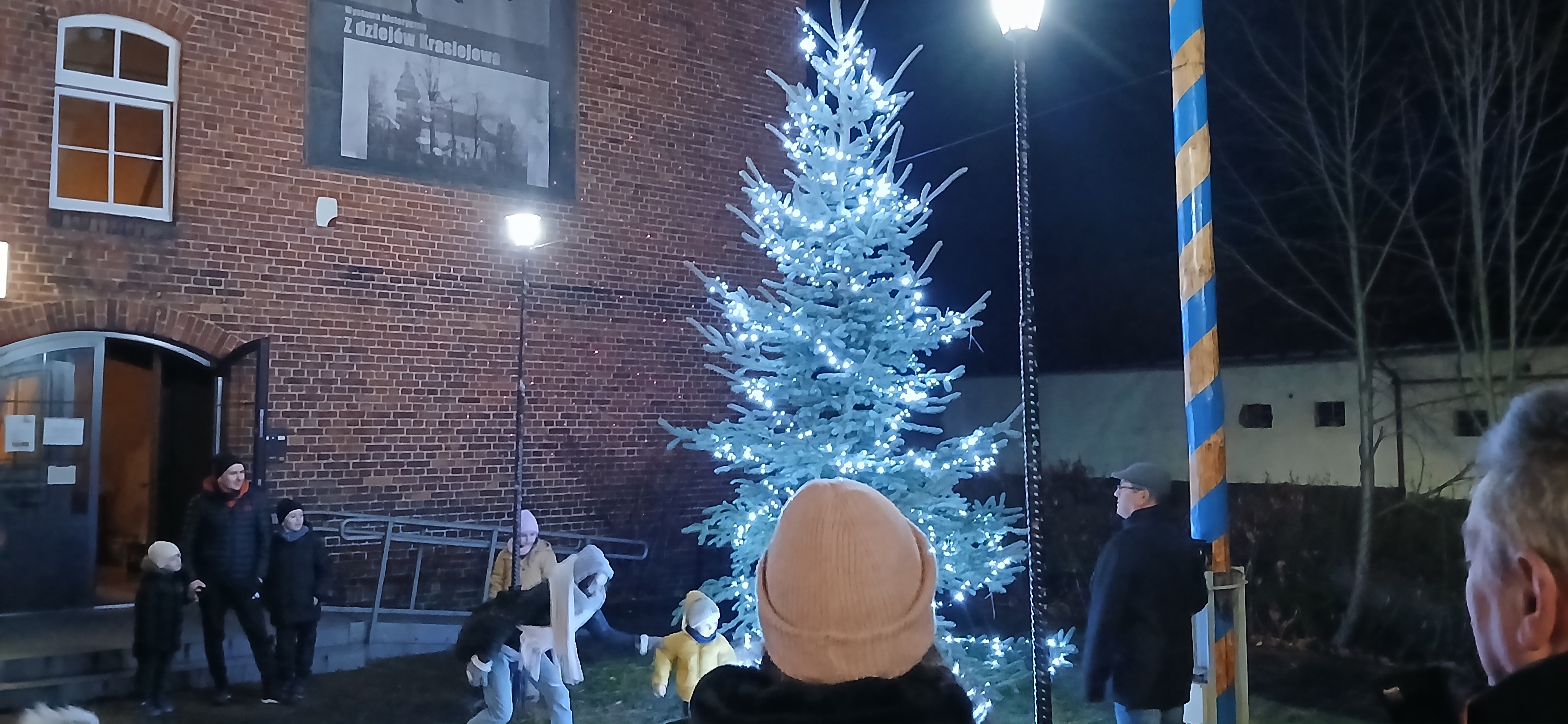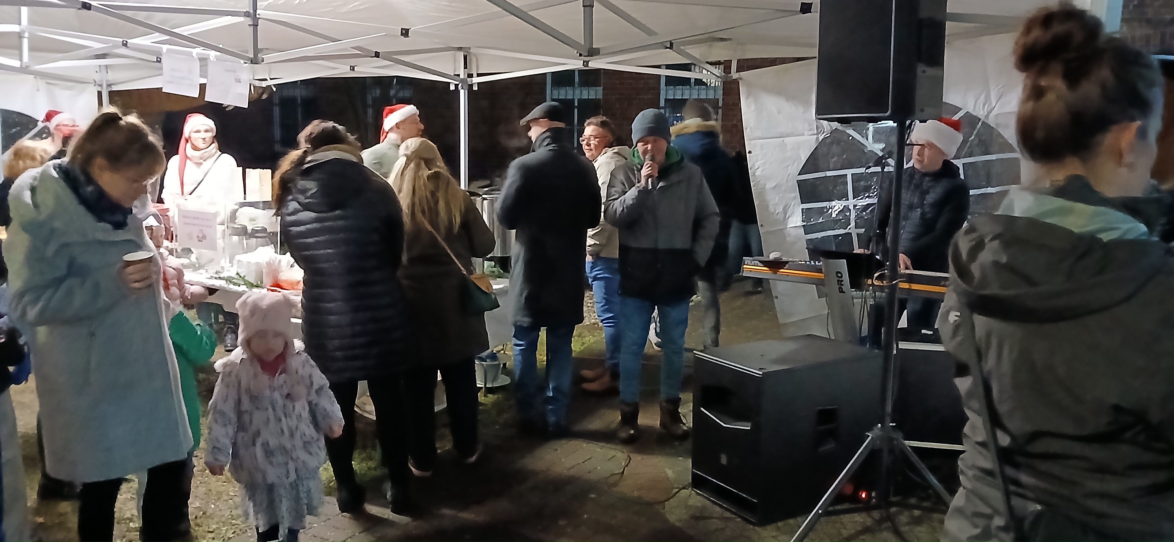 Uroczystym momentem na który wszyscy czekali było rozświetlenie choinki i lampek w namiocie. Nowością było pojawienie się w tym roku podświetlonego jelonka, przy którym rodzice chętnie robili swoim pociechom pamiątkowe zdjęcie. Po kilku godzinach wspólnej  i radosnej biesiady goście rozeszli się do domu, a członkowie Rady Sołeckiej  zabrali się za sprzątanie.  Dziękujemy wszystkim, którzy wnieśli swój wkład w organizację Jarmarku Światecznego, niezawodnemu Janowi Bonkowi, który od lat  ustawia choinkę na placu, zawiesza i podłącza oświetlenie, Tomaszowi Chudali za wysprzątanie liści przed szkołą, Grzegorzowi Pasoniowi za zajęcie się przygotowaniem paczek dla dzieci, Sołtysowi, Radzie Sołeckiej oraz zaangażowanym członkom SMK, którzy pomagali w ustawianiu namiotu, zakupach, przygotowaniu poczęstunku.