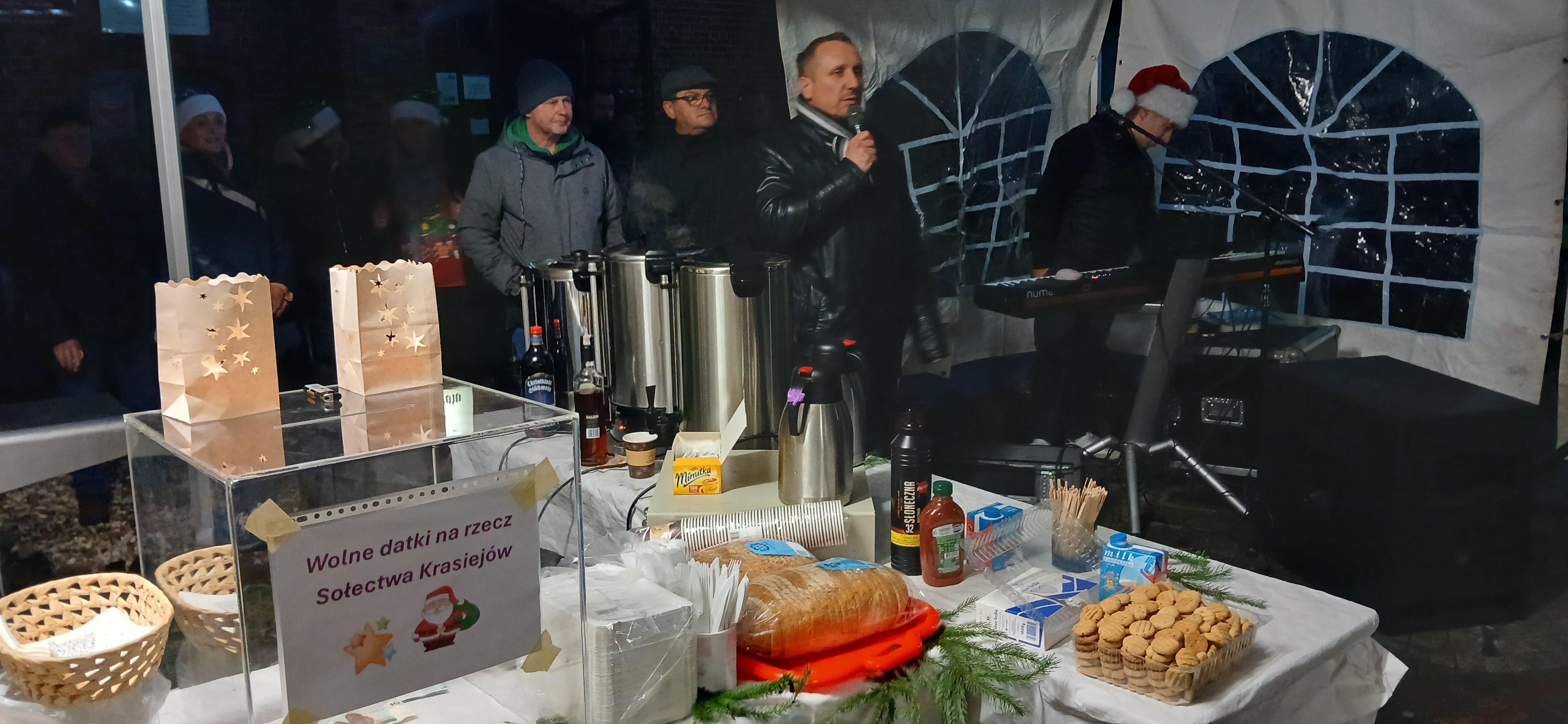 W dniu 7 grudnia na placu przed Starą Szkołą odbył się Jarmark Świąteczny zorganizowany przesz Sołtysa i Radę Sołecką wsi Krasiejów. Po kilkuletniej przerwie jego organizacja pojawiła się w planie pracy naszego lokalnego samorządu i okazało się, że była to bardzo dobra decyzja, tzw. strzał w dziesiątkę. Mieszkańcy, którzy przybyli licznie w sobotnie popołudnie mogli poczuć już przedsmak Świąt Bożego Narodzenia i świetnie się zrelaksować. Pogoda w tym dniu także dopisała organizatorom i gościom. W piątek Sołtys i członkowie Rady Sołeckiej rozstawili namiot i zawiesili oświetlenie, ale prace przygotowawcze do jarmarku zaczęły się znacznie wcześniej. W jego organizację zaangażowali się też rodzice i uczniowie Szkoły Podstawowej. Mamy poszczególnych klas upiekły ciasta, a czwórka artystek pod kierunkiem pani Elżbiety Bienieckiej przygotowała piękny kolędowy program artystyczny. Zgromadzonych na placu gości przywitał przew. RS Krzysztof Koźlik oraz  przedstawiciel UMiG Ozimek wiceburmistrz Andrzej Brzezina, którzy życzyli zebranym miłych wrażeń.