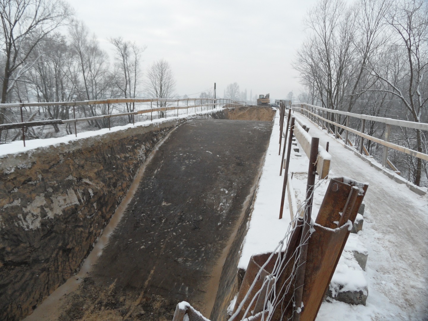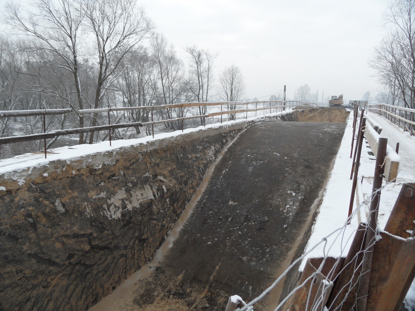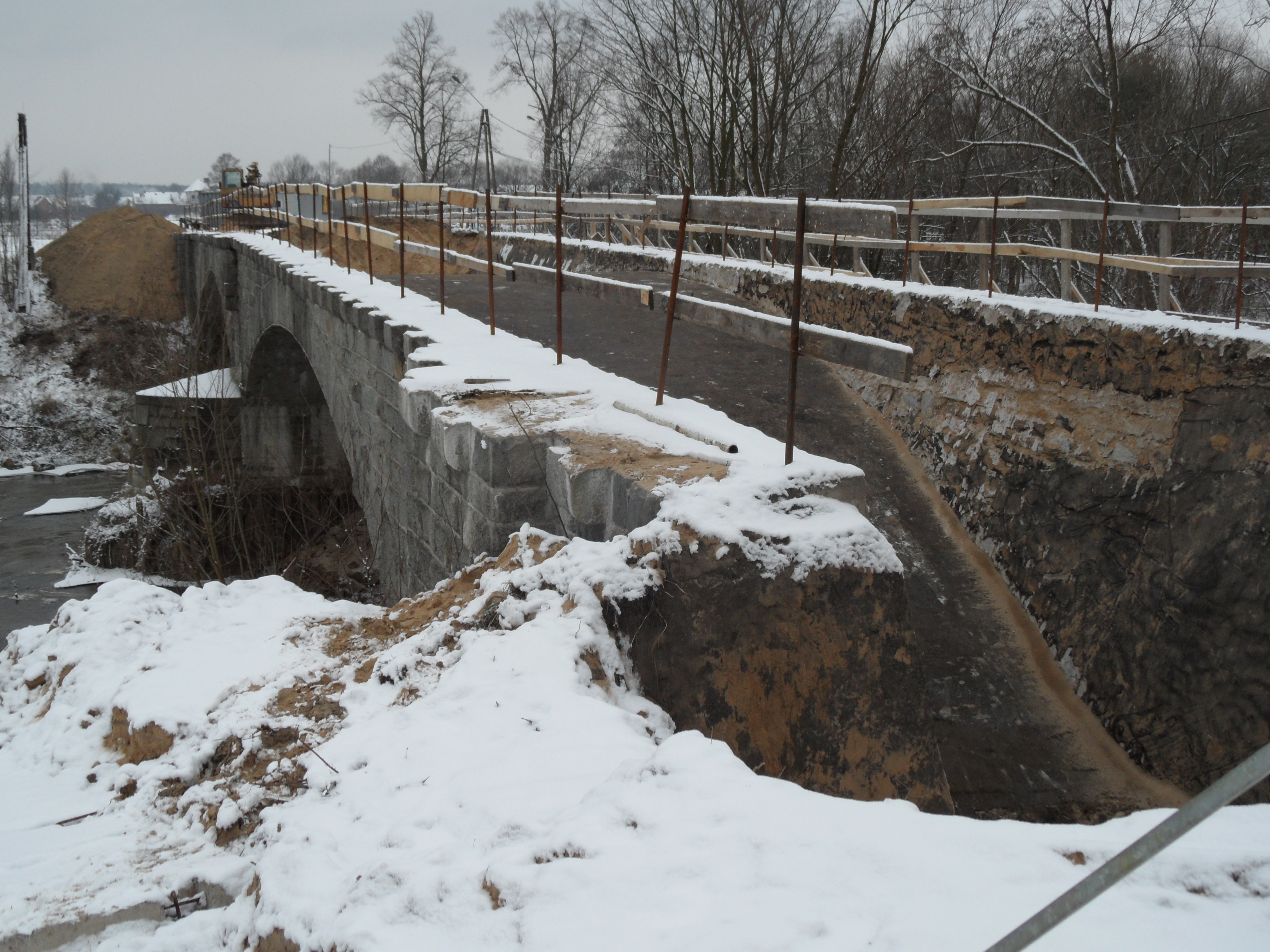 Na moście trwają dalsze prace remontowe pomimo panującej zimy. Pracownicy budowlani za pomocą koparki zdjęli grubą warstwę ziemi i odsłonili pierwszy łuk mostu. Obowiązuje zakaz ruchu pieszych.