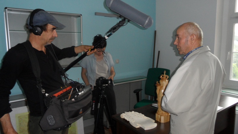 W sobotę 19 sierpnia opiekunka Muzeum zorganizowała spotkanie z zasłużonym dla Opolszczyzny  i zarazem cenionym mieszkańcem Krasiejowa - lokalnym  pasjonatem- Paulem Gottscholl. Artysta ludowy ponad godzinę opowiadał  w języku niemieckim o swej pracy rzeźbiarskiej  i dziełach, które w swoim życiu stworzył  oraz o swoim dzieciństwie i okresie wojennym. Filmowcy wynieśli jak najlepsze wrażenia z pobytu na Opolszczyźnie. Teraz należy tylko poczekać na twórczy efekt ich pracy- film traktujący o naszym regionie, promujący jego walory turystyczne oraz przybliżający lokalną historię.