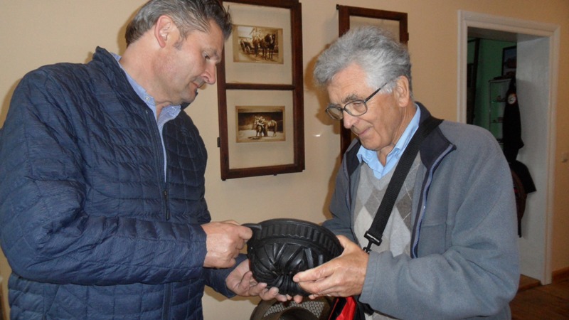 W niedzielę opiekunka Muzeum Paleontologicznego zaprosiła pana Michael'a Darby, potomka Abrahama Darby III - twórcy pierwszego żeliwnego mostu Iron Bridge w Wielkiej Brytanii, do odwiedzenia Krasiejowa. Most ten budowany był w latach 1775-1779 z elementów z lanego żeliwa i otwarty został do eksploatacji 1 stycznia 1781 roku. Panu M. Darby pomysł bardzo się spodobał i chętnie skorzystał z zaproszenia. W wyjeździe towarzyszył mu G. Biadacz- członek Stowarzyszenia Dolina Panwi mieszkający w Niemczech. W muzeum obydwaj panowie wykazali duże zainteresowanie eksponatami i samymi odkryciami paleontologicznymi. Zwiedzając salę historyczną "Z dziejów Krasiejowa" pan Darby wypatrzył również wyroby wykonane z żeliwa.