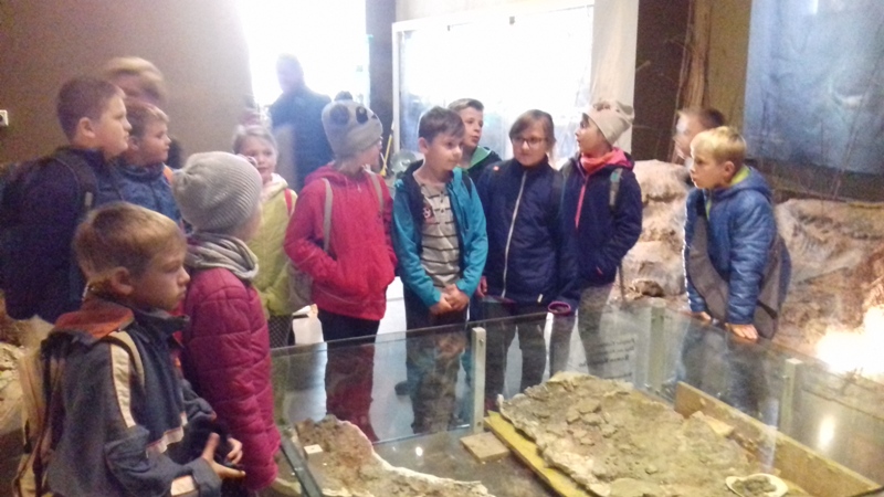 W dniu 14.10.2017r. uczniowie klasy III Szkoły Podstawowej w Grodźcu wraz z opiekunkami zwiedzili Muzeum Paleontologiczne i wystawę historycznę "Z dziejów Krasiejowa". Oprowadzająca zapoznała uczestników wycieczki z historią odkryć paleontologicznych w Krasiejowie, gatunkami zwierząt tutaj odkrytych oraz historią naszej miejscowości i zajęciami jej mieszkańców na przestrzeni dziejów. Uczniowie wykazywali duże zainteresowanie, wiedzę i aktywnie brali udział w zajęciach.