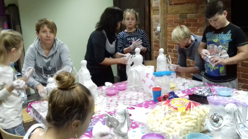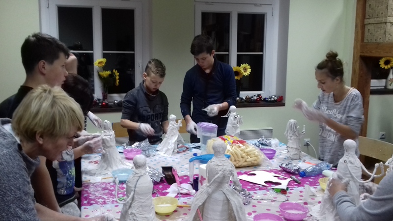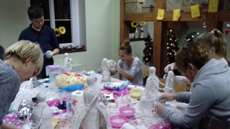 DFK Krasiejów, Rada Rodziców działająca w Szkole Podstawowej w Krasiejowie i Rada Sołecka planują wspólne zorganizowanie dnia 10 grudnia (niedziela) adwentowej imprezy pod nazwą Weihnachtsmarkt. Uczniowie poszczególnych klas wraz z rodzicami organizują we własnym zakresie spotkania i przygotowują się do tego dnia wykonując własnoręcznie różne świąteczne ozdoby. W załączeniu kilka zdjęć z prac poczynionych przez uczniów klasy VI i ich rodziców w dniu 22 listopada w budynku Starej Szkoły. Anioły będą naprawdę piękne.